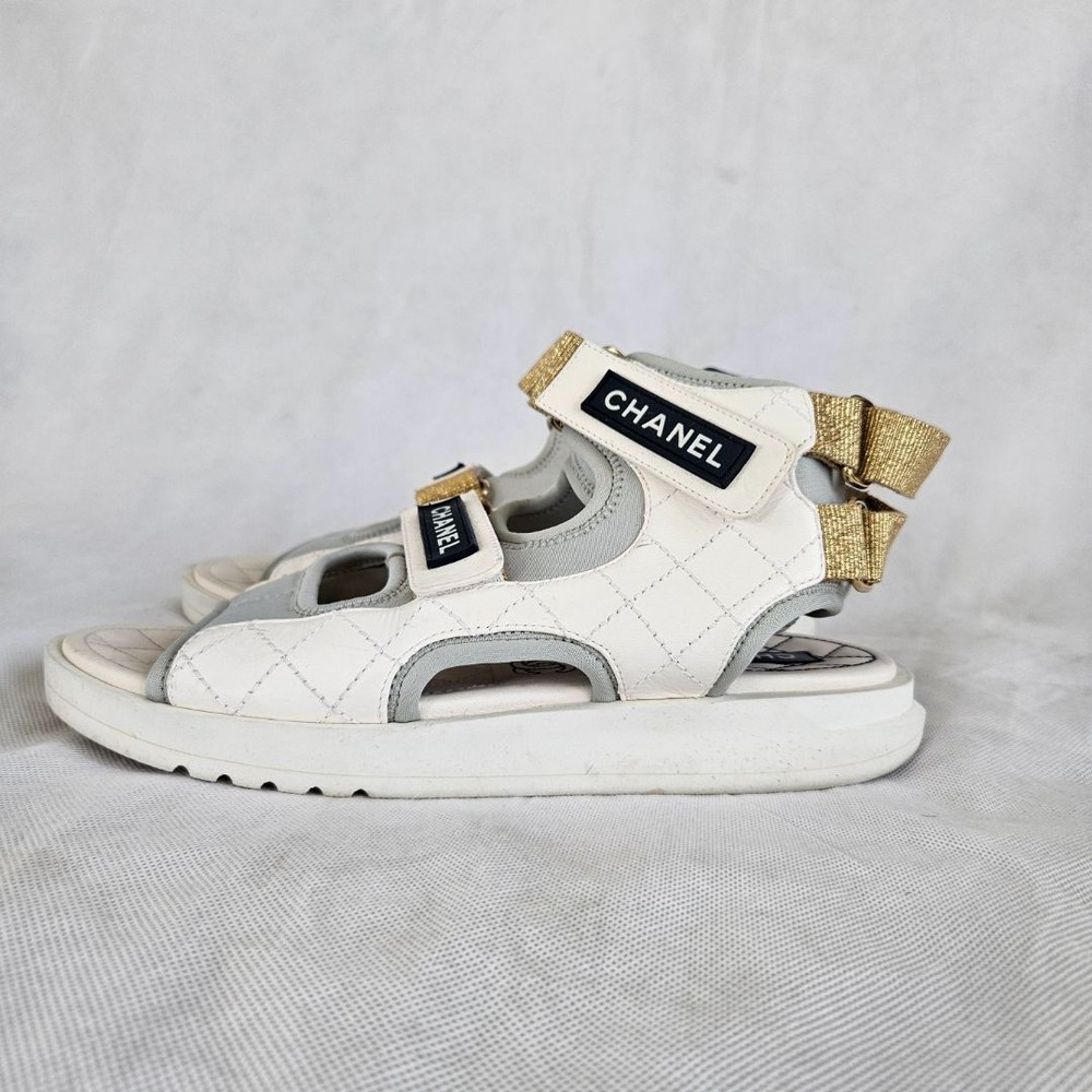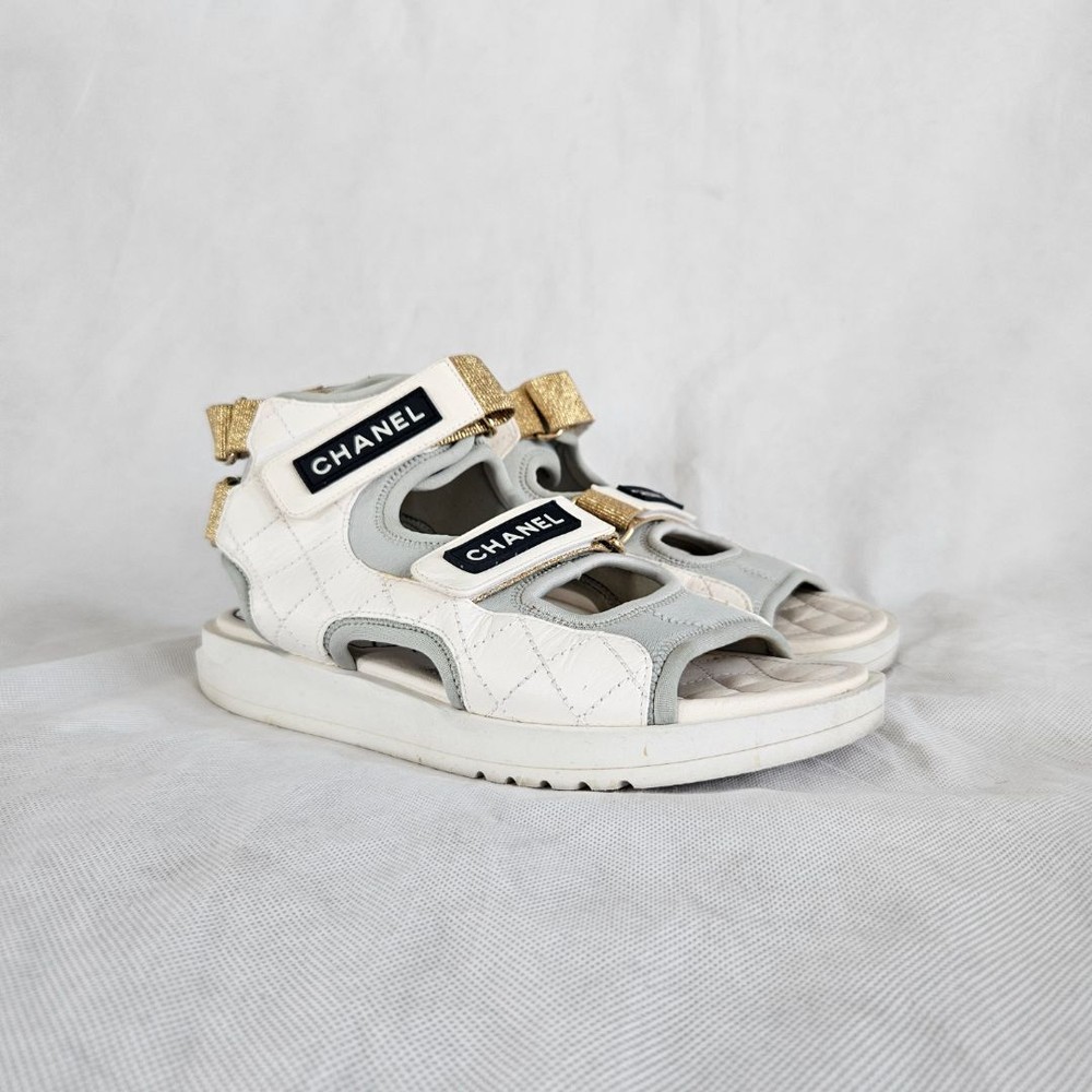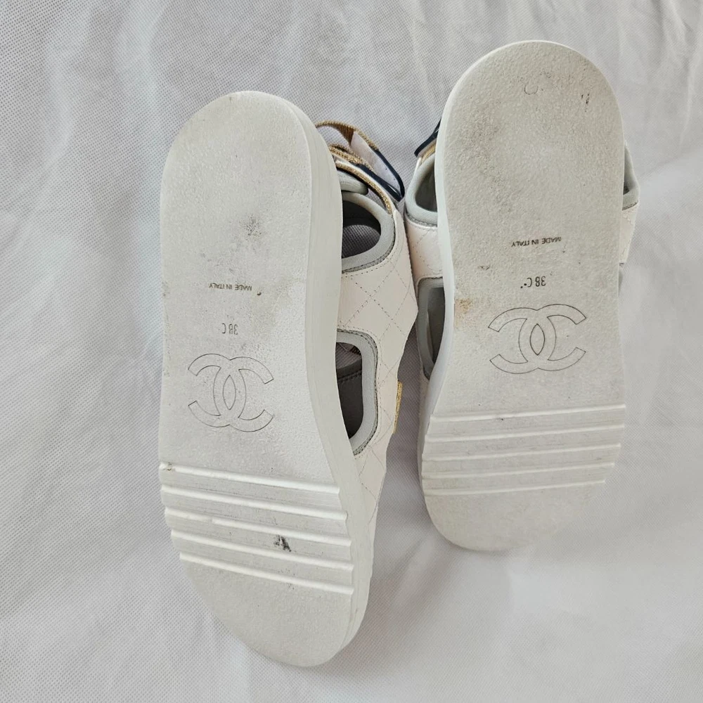 Chanel 21P WhiteGrey Cocomark CC TEva Dad Sport Sandals, size 38C