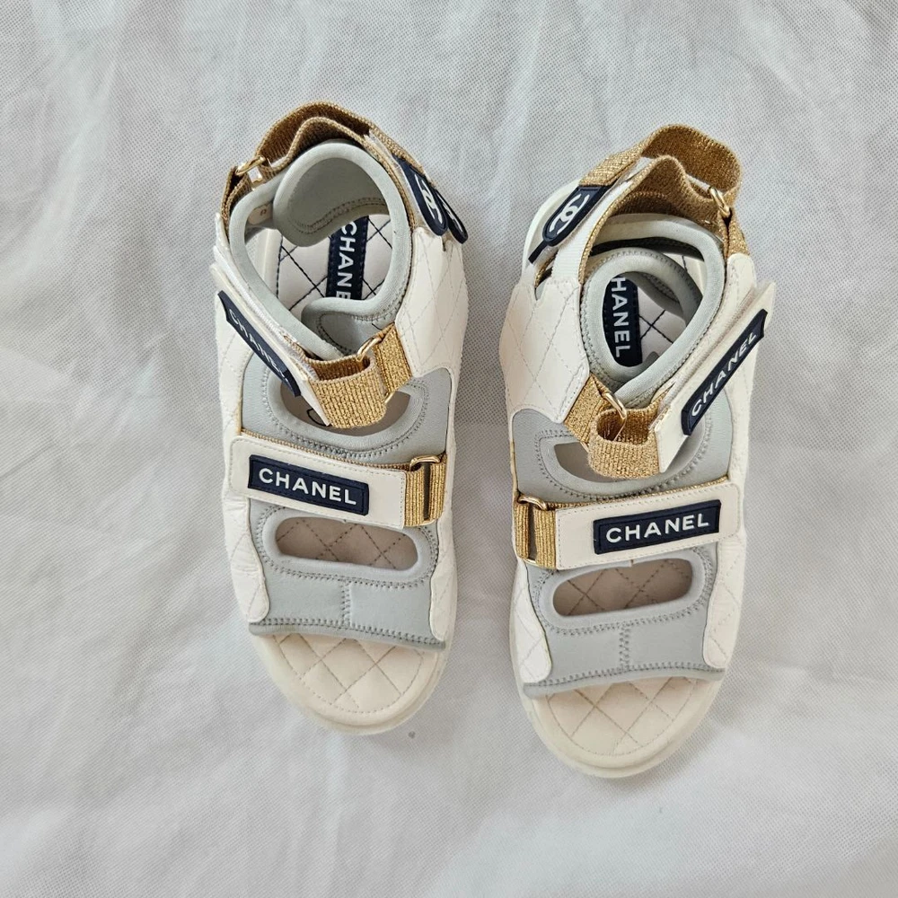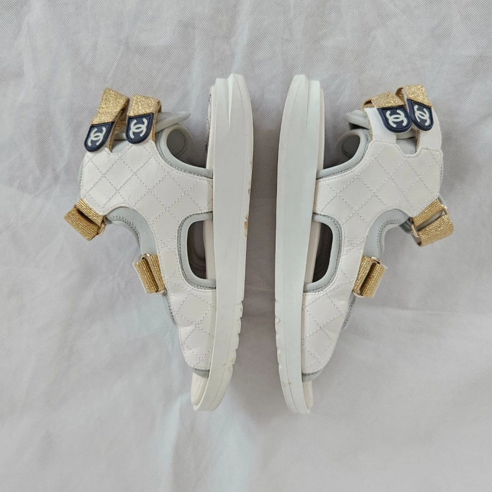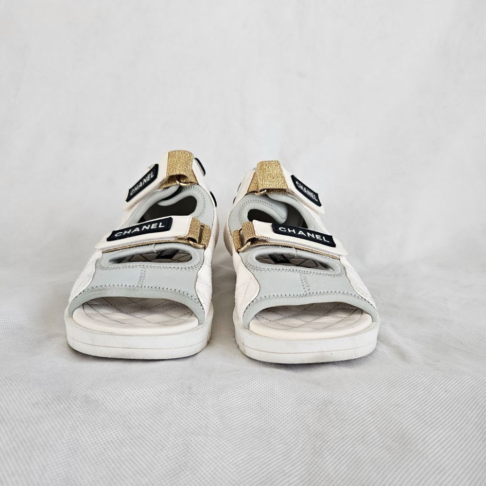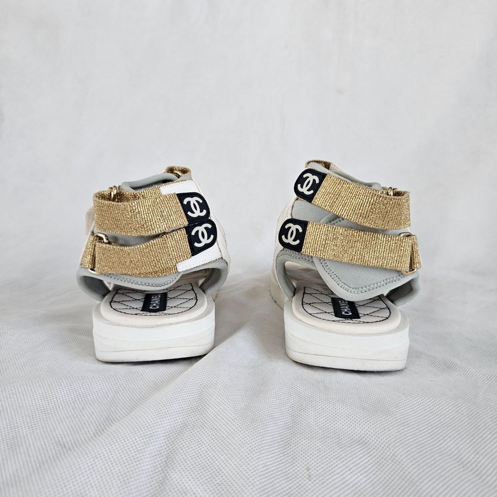 Chanel 21P WhiteGrey Cocomark CC TEva Dad Sport Sandals, size 38C