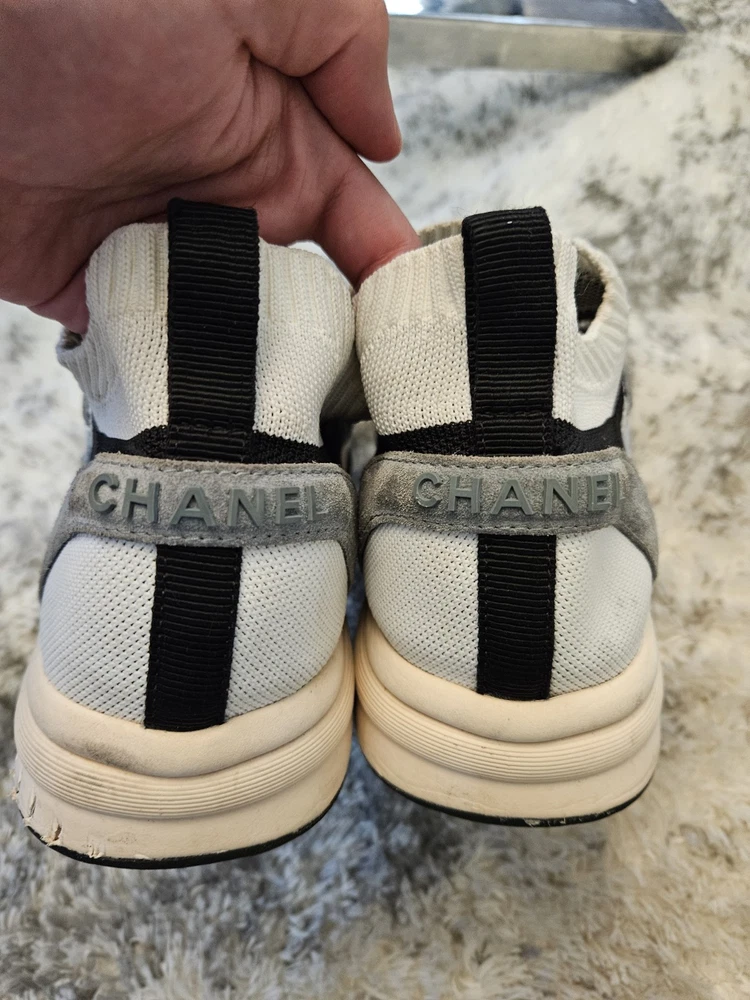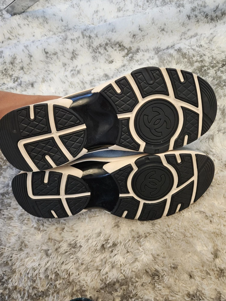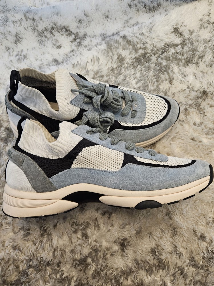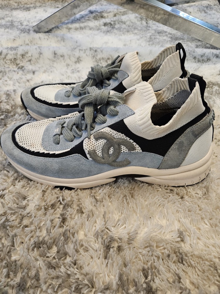These sneakers are a fantastic find—the suede and knit combo looks stylish even with some wear. The blue, white, and grey colorway is versatile, and the CC logo adds a luxe touch. Fits true to size, super comfortable, and still in great shape for being pre-loved. No box, but a steal for the price!