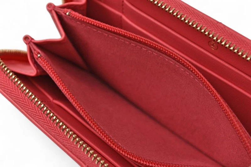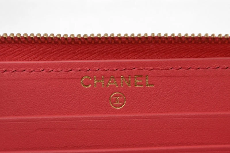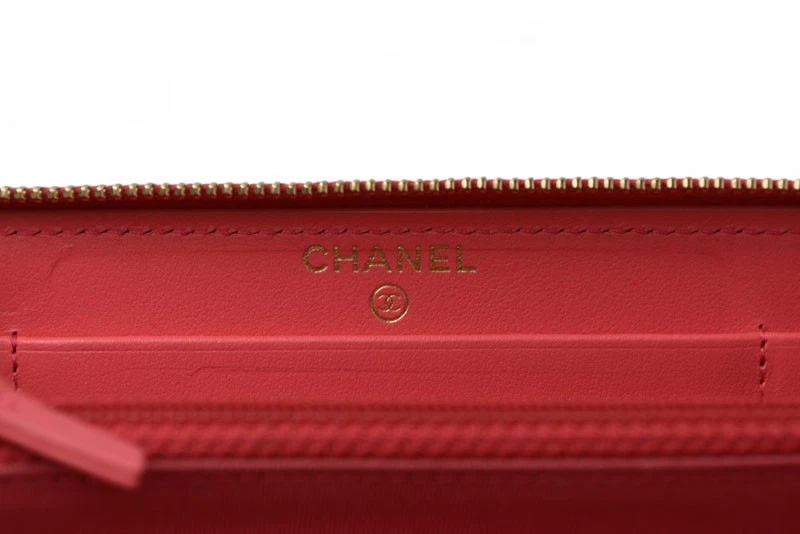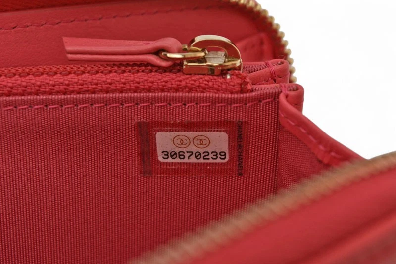 Chanel Authentic Wallet Pink and Gold Metal AP0948 Description Item No 250717m21 Brand CHANEL Item Bifold Wallet Model Number AP0948 Gender Women Notation Color pink Country of Origin Spain Material lambskin Size(CM) W15.5cm x H9cm x D2.5cm Height:9cm Length:15.5cm Depth:2.5cm Size(Inch) W6.1 x H3.5 x D1.0inch Height:3.5inch Length:6.1inch Depth:1.0inch Specification Switching Type:Fastener type [Inside] Card pocket x 4 Compartment/billfold x2 (bills can be folded and stored) Zippered Pocket/Coin Pocketx1 Accessory Guarantee card Production features This is the Zip Around wallet from Chanel. Its compact size makes it easy to store in a small bag. This small zip wallet, introduced in CHANEL 19, features a feminine pale pink color and gold metal accents that add a touch of Chanel elegance, making it a luxurious mini wallet. The high-quality lambskin material, plump quilted stitching, and large COCO Mark create an elegant look. Condition Details Rank SA 【 Outer 】 ・There are no noticeable scratches or stains. It is in good condition. - There is slight rubbing on the corners. 【 Inner 】 ・There are no noticeable scratches or stains. It is in good condition. - There are coin marks inside the coin case