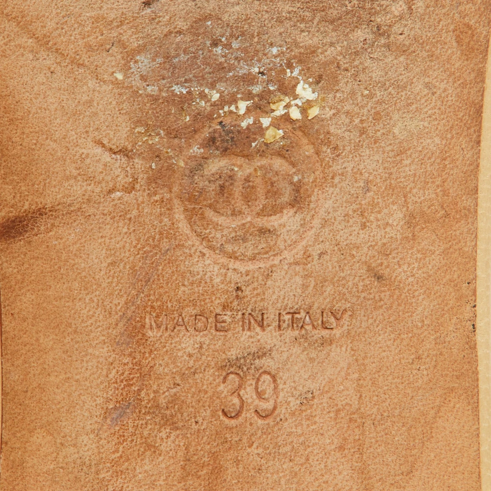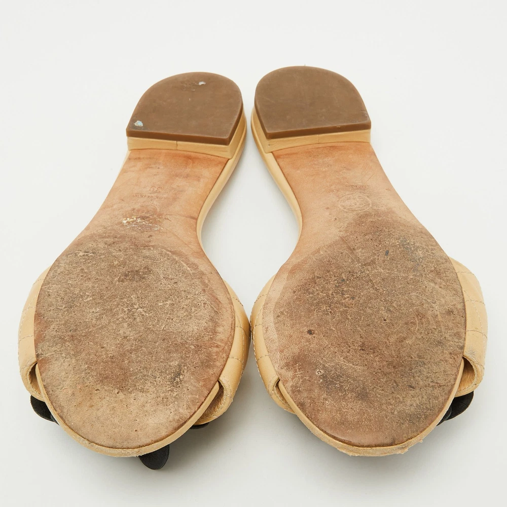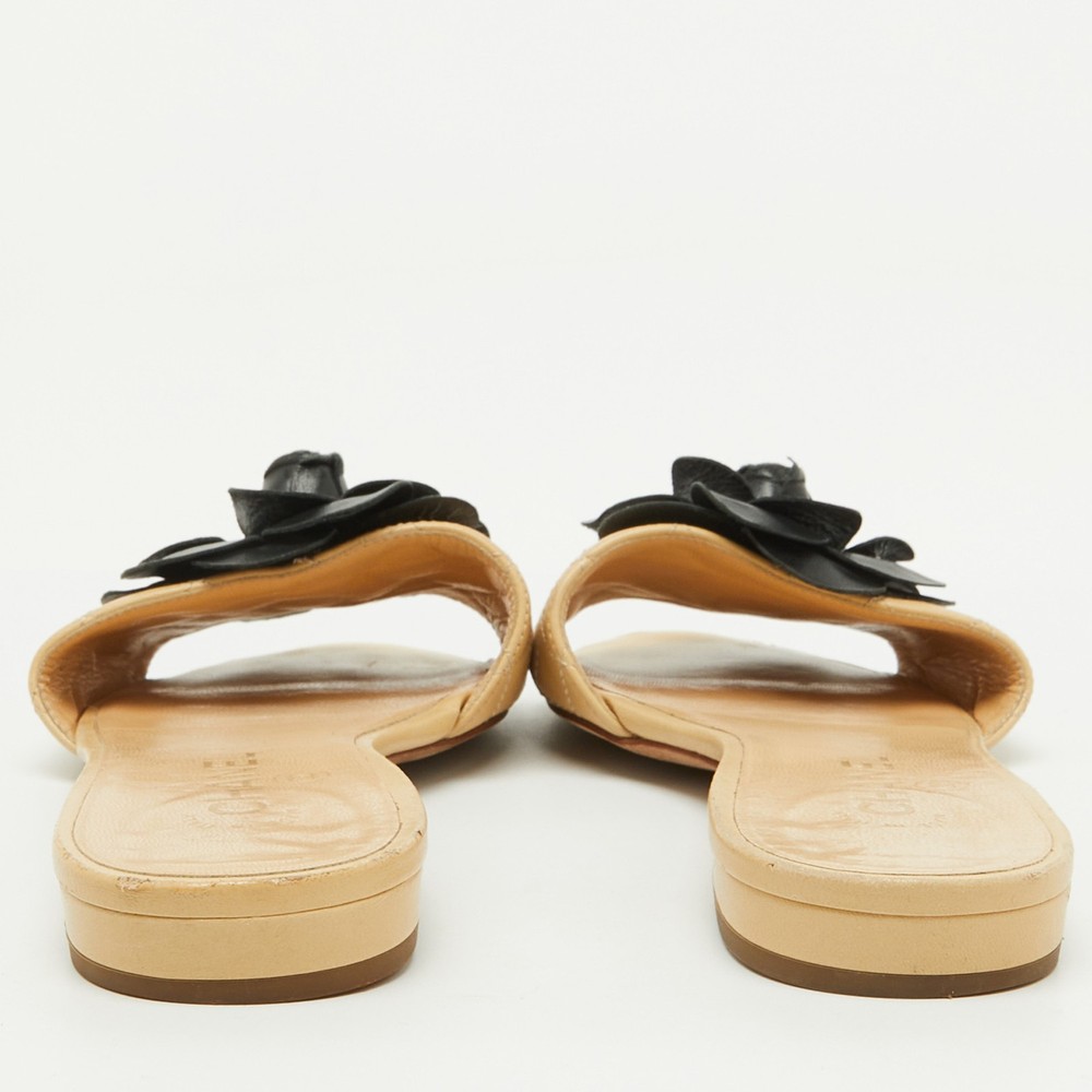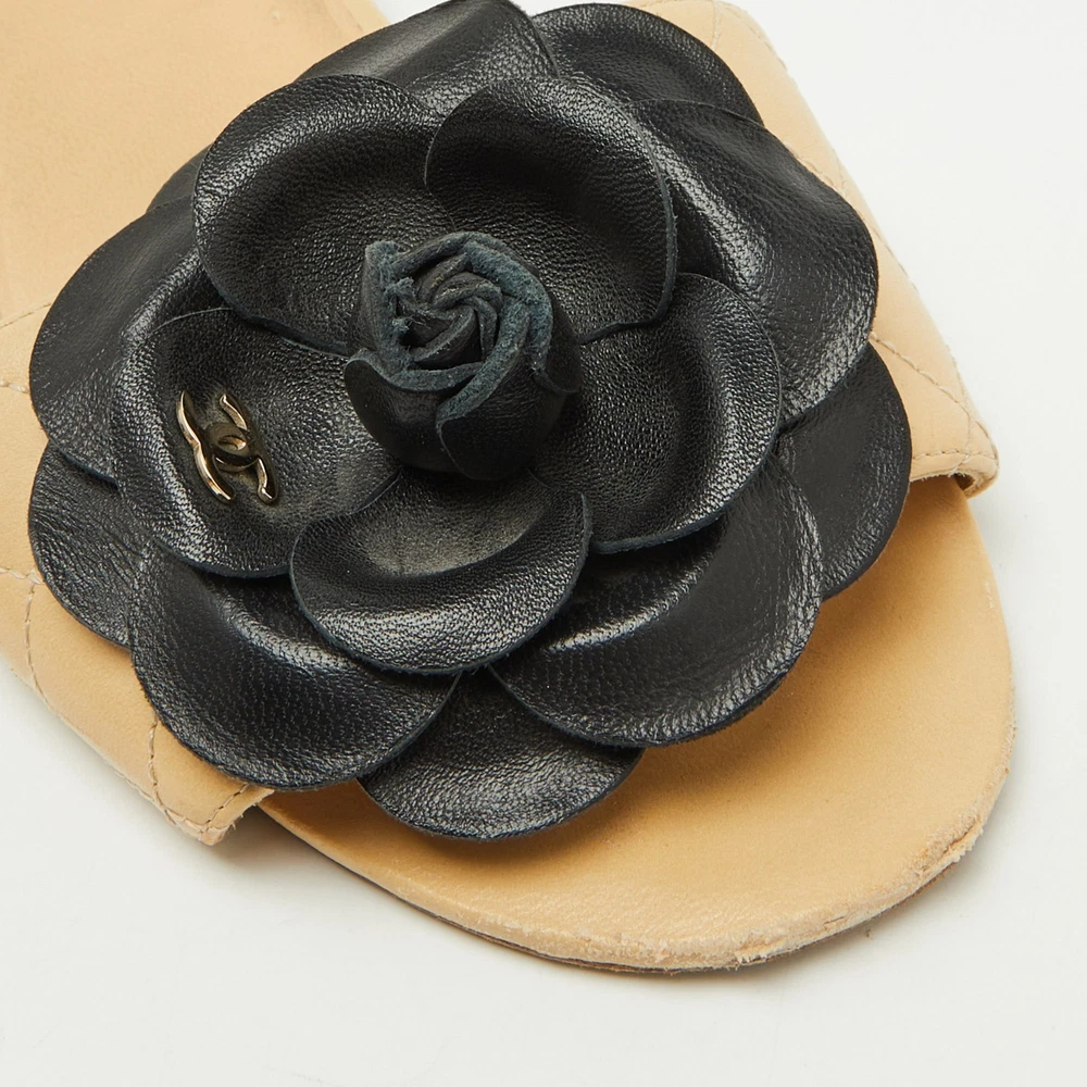 These gorgeous slides from Chanel will be your latest favorite purchase. They are made from beige quilted leather, with a contrasting Camellia motif embellishing the front. They come with comfortable leather lined insoles and gold toned hardware. Their easy slip on style and relaxing silhouette make these slides great for everyday use.Certified by The Luxury Closet - This item has gone through a detailed authentication process overseen by our experts. We offer a lifetime guarantee of authenticity on all our items. Import duties, taxes and charges are not included in the item price. These charges are the buyers responsibility. Please check with your country’s customs office to determine what these additional cost will be prior to buying. Our eBay Store About Us Contact Us Add to Favorite Sellers Chanel Beige Leather CC Camellia Flat Slide Sandals Size 39 $698.5 These gorgeous slides from Chanel will be your latest favorite purchase. They are made from beige quilted leather, with a contrasting Camellia motif embellishing the front. They come with comfortable leather lined insoles and gold toned hardware. Their easy slip on style and relaxing silhouette make these slides great for everyday use. Product Details Brand Color Beige Dimensions Material Leather Size 39 Outsole Width 8.5 cm Outsole Length 25 cm Heel Height Includes The Luxury Closet Packaging Certified by The Luxury Closet This item has gone through a detailed authentication process overseen by our experts. We offer a lifetime guarantee of authenticity on all our items. How We Check The in-house team of experts at The Luxury Closet is highly trained to verify the authenticity and the condition of the luxury products. They ensure that only 100% authentic items are put on sale.The evaluation process is unique with its own mix of assessment criteria and differs according to the category. Each item is evaluated based on the following combination of hallmarks, hardware, stitching, symmetry, material, craftsmanship, stamping, codes, hologram stickers, and packaging. Our authenticators also check if the items have been modified or amended (e.g., aftermarket diamonds, replaced batteries, repaired bags, etc.) International Buyers Import duties, taxes and charges are not included in the item price. These charges are the buyers responsibility. Please check with your country’s customs office to determine what these additional cost will be prior to buying.