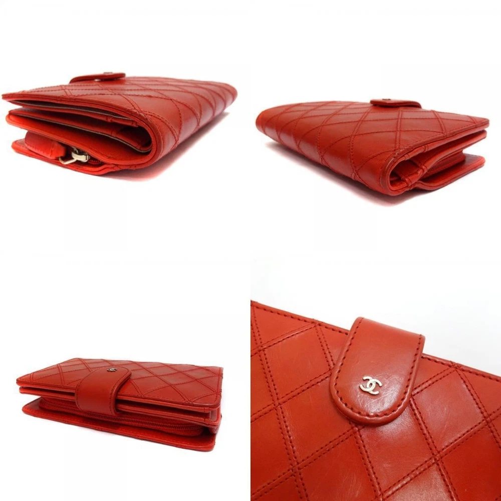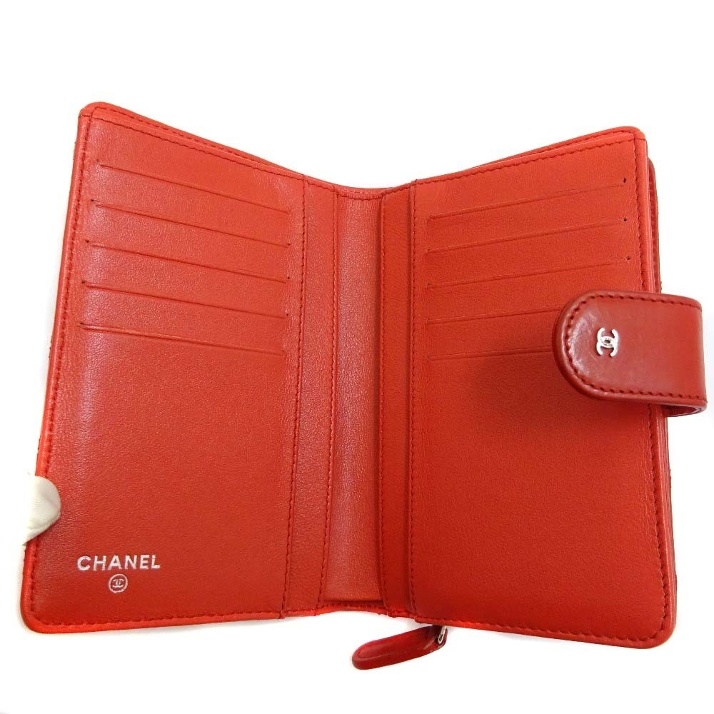 Chanel Bicolor Double Stitched Bi-fold Wallet Leather Red Silver Hardware About This Items ■Please see photos for product details. ■Brand : CHANEL ■Product Name : Bicolore Double Stitch Bifold Wallet ■Color : Red Silver Hardware ■Material : Leather ■Size approx. Width : 5.9in/15cm Height : 3.9/10cm Gap : 1in/2.5cm ■Specifications Opening : Snap Button Zipper Change Pocket x 1 Billfold x 1 Card Pocket x 10 Open pockets x 4 ■Accessories: box, guarantee, serial seal Condition ■Used Slightly scratched and dirty. There are minor scratches and light stains on the surface leather, corners and edges. There are minor scratches on the metal fittings. Inside, there is a scuff in the card pocket. There are minor scratches and coin stains on the coin purse. Overall, there are no noticeable scratches or stains, and you can still use it comfortably. PAYMENTS We accept PayPal and all major Debit / Credit Cards. We can only ship your item after your payment clears. We ship within 10 days of payment. CHECKOUT Please check your address before paying because we can ONLY ship to addresses that are entered before placing the order. We cannot change an address after the order has already been placed. Shipping Packages:Box and BubblerupPackages usually leave our warehouse within 10 days of payment. Weekend orders will ship on Monday or Tuesday. We provide valid Tracking Numbers for all orders. We always send the item with a tracking number. So please place an order without any concern on delivery. You can always track the delivery status. Shipping is only available to the address registered in eBay. If you want us to send another address, please change your address on eBay and then place an order. Shipping is available from Monday to Friday. Weekends are not available because freight (shipping) companies are closed. We do not mark merchandise values below value or mark items as gifts Japan, US and International government regulations prohibit such behavior. If your address is in the remote areas defined by the freight (shipping) company, please pay the additional shipping fees with PayPal. International Packages We ship to all US Territories, Europe and Asia and Middle East and Australia and Canada including Guam and Hawaii.All our international packages ship under the Fedex and Japan Post and UPS and DHL. CUSTOMER SERVICE If you have any questions or issues, we are at your service. You can email us anytime through eBay messages. RETURN INFORMATION We offer a standard FREE 30 days refund or exchange policy. Item must be returned in original condition in order to receive a full refund. CUSTOMS DUTY Import duties, taxes, and charges are not included in the item price or shipping cost.These charges are the buyer's responsibility.Please check with your country's customs office to determine what these additional costs will be prior to bidding or buying.We will reply to your question or invoice within 3 days.We can't not reply gifts or unreasonable requests such as declared amount.