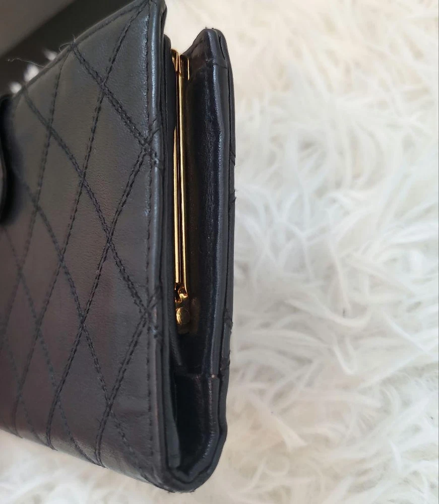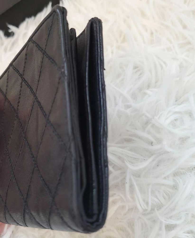 This Chanel wallet is absolutely stunning! The lambskin leather is so soft and luxurious, and the quilted design adds a classic touch. It's surprisingly spacious with plenty of card slots and compartments, making it perfect for everyday use. The minor signs of wear are barely noticeable, and having the original box and pouch is a huge plus. Definitely a great investment piece that feels brand new!