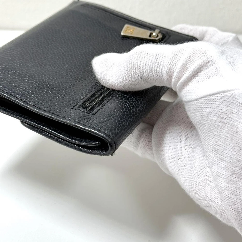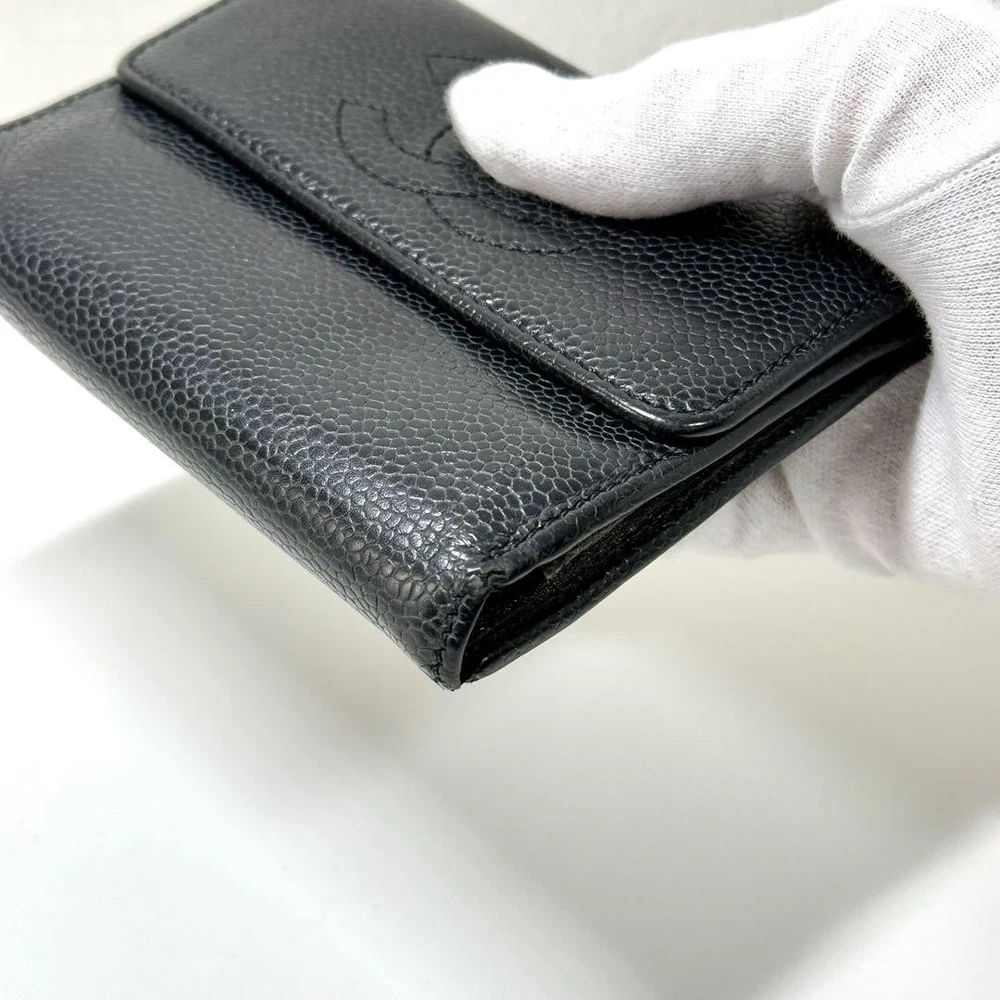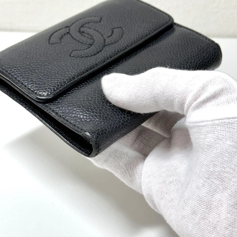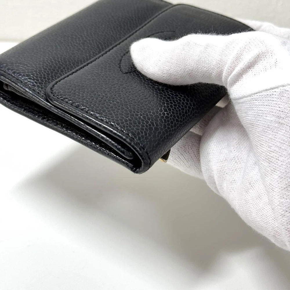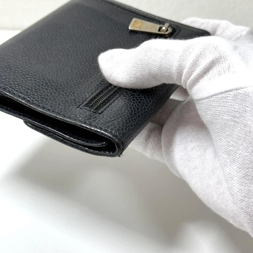 Chanel Big Coco Tri-Fold Wallet Caviar Skin Black Vintage Used Key Features - Brand: CHANEL - Product: Vintage Chanel Deauville Wallet - Model: Tri-fold wallet with serial seal - Material: Caviar leather - Color: Black with gold accents - Condition: Grade B, shows overall signs of use - Size: approximately 4.7 x 3.7 x 0.8 inches (12 x 9.5 x 2 cm) - Features: Authentic, appraised by AACD member vintage market, serial seal included - Note: No accessories are included unless noted in the title or product description. If you have any questions, please ask before purchasing. Specifications Brand Chanel Country Japan Type Wallet Color Black Style Vintage Features Fold Vintage Vintage Product Description Item Title Chanel Big Coco Tri-Fold Wallet Caviar Skin Black Vintage Payment Supports managed payments Please pay within 5 days after auction is finished. About Us We are located in Japan. It's our pleasure to make you happy by proposing our recommend item. If you have any questions or request about items, please feel free to ask us. International Buyers - Please Note: -Import duties, taxes, and charges are not included in the item price or shipping charges. These charges are the buyer's responsibility. -Please check with your country's customs office to determine what these additional costs will be prior to bidding/buying. -These charges are normally collected by the delivering freight (shipping) company or when you pick the item up - do not confuse them for additional shipping charges. -We do not mark merchandise values below value or mark items as - gifts - The US and International government regulations prohibit such behavior. Thank you for your understanding.