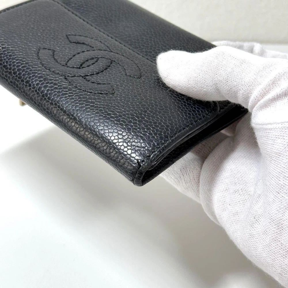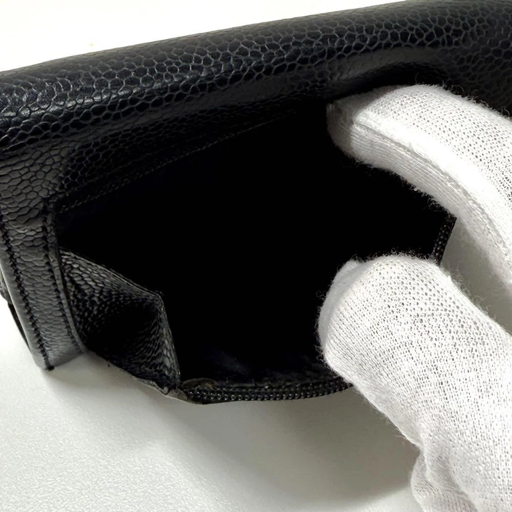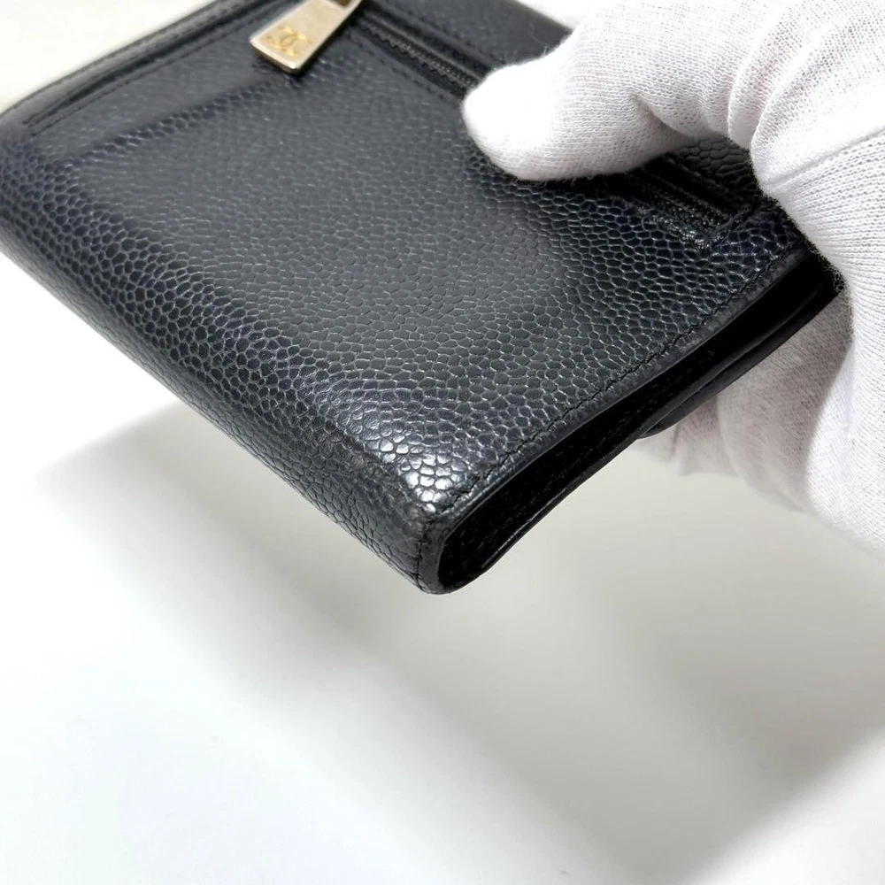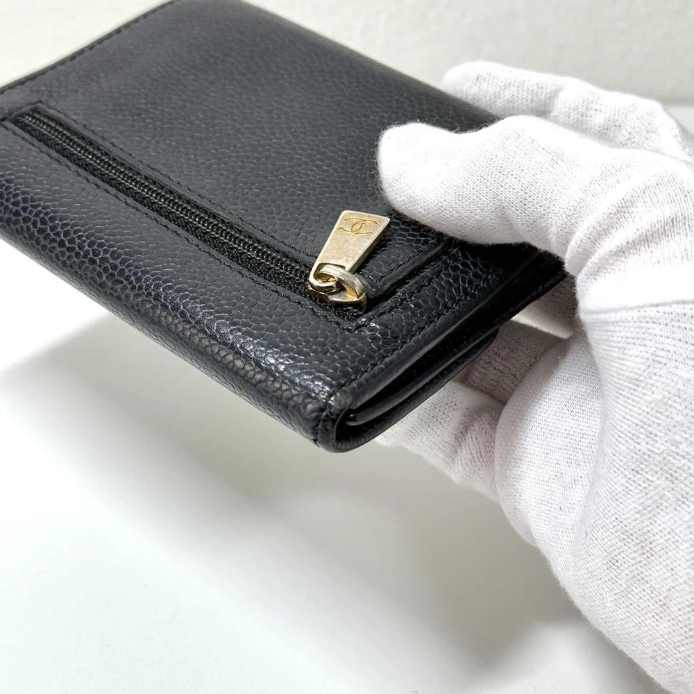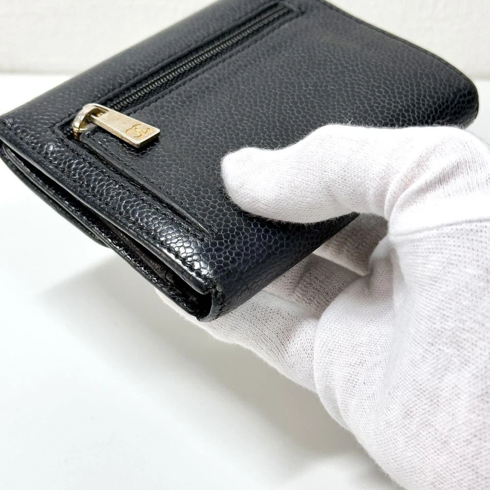 Chanel Big Coco Tri-Fold Wallet Caviar Skin Black Vintage Used Key Features - Brand: CHANEL - Product: Vintage Chanel Deauville Wallet - Model: Tri-fold wallet with serial seal - Material: Caviar leather - Color: Black with gold accents - Condition: Grade B, shows overall signs of use - Size: approximately 4.7 x 3.7 x 0.8 inches (12 x 9.5 x 2 cm) - Features: Authentic, appraised by AACD member vintage market, serial seal included - Note: No accessories are included unless noted in the title or product description. If you have any questions, please ask before purchasing. Specifications Brand Chanel Country Japan Type Wallet Color Black Style Vintage Features Fold Vintage Vintage Product Description Item Title Chanel Big Coco Tri-Fold Wallet Caviar Skin Black Vintage Payment Supports managed payments Please pay within 5 days after auction is finished. About Us We are located in Japan. It's our pleasure to make you happy by proposing our recommend item. If you have any questions or request about items, please feel free to ask us. International Buyers - Please Note: -Import duties, taxes, and charges are not included in the item price or shipping charges. These charges are the buyer's responsibility. -Please check with your country's customs office to determine what these additional costs will be prior to bidding/buying. -These charges are normally collected by the delivering freight (shipping) company or when you pick the item up - do not confuse them for additional shipping charges. -We do not mark merchandise values below value or mark items as - gifts - The US and International government regulations prohibit such behavior. Thank you for your understanding.