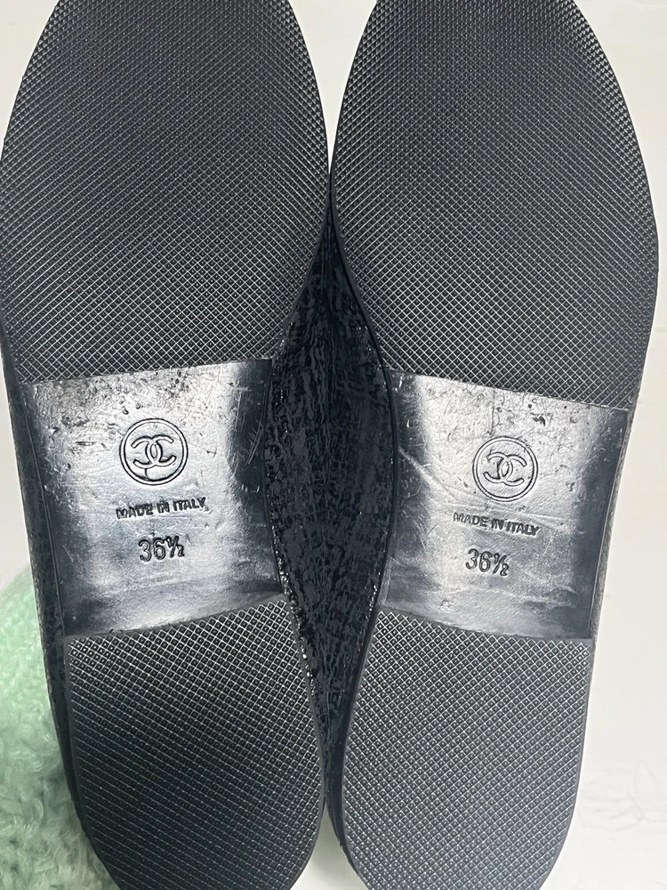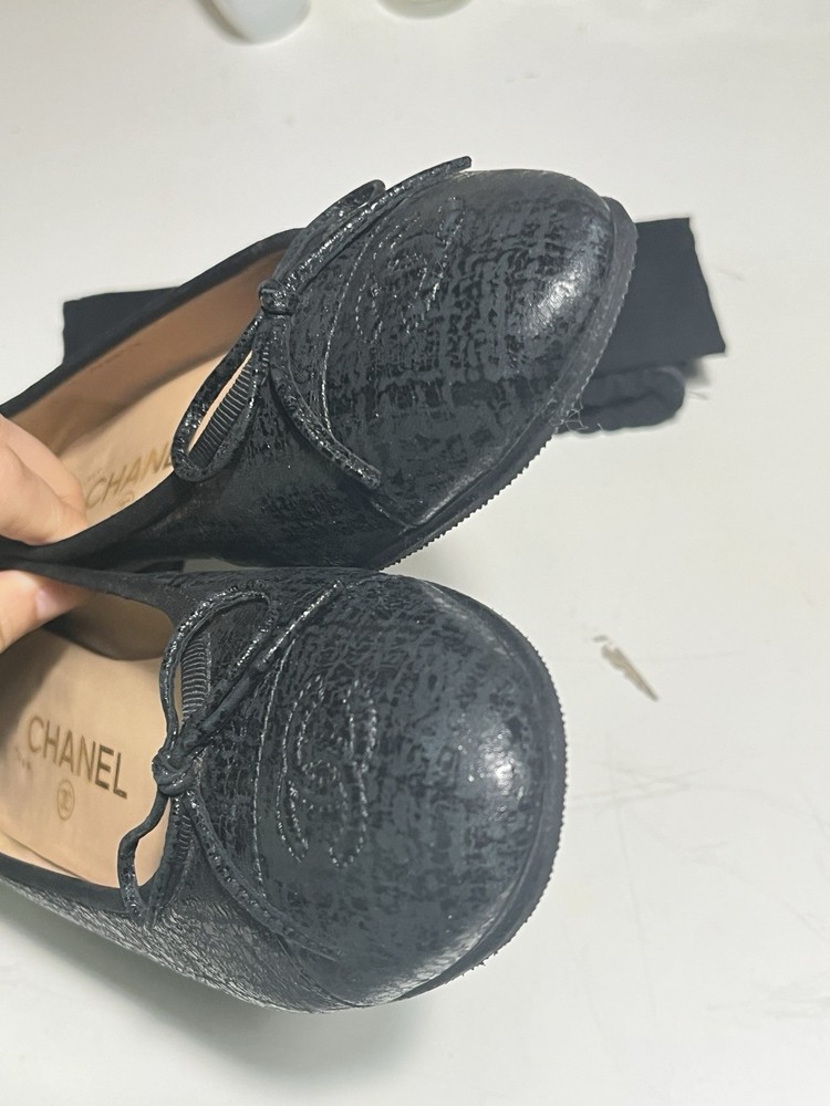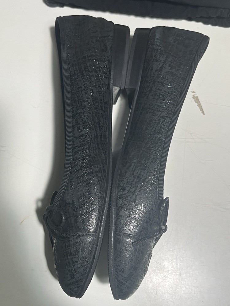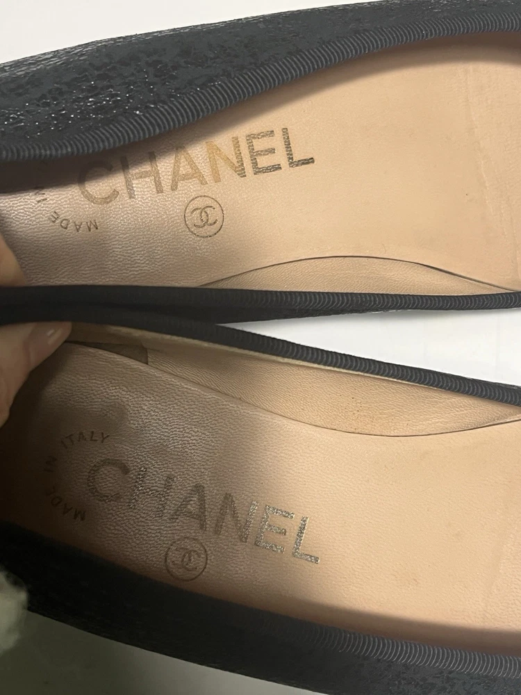 Textured Chanel black ballet flats in size 36.5. With a dust bag. Authentic. Ship same or next day.