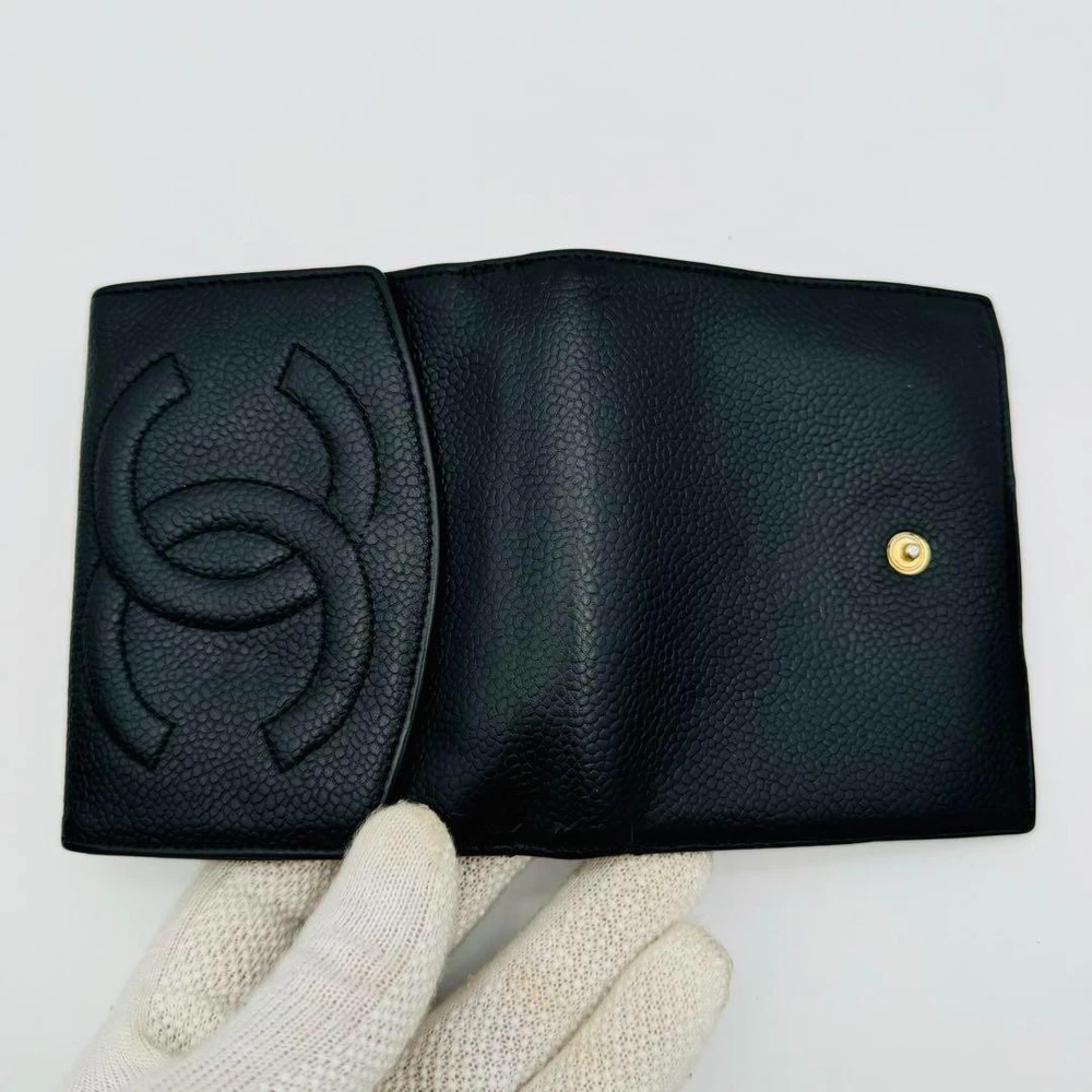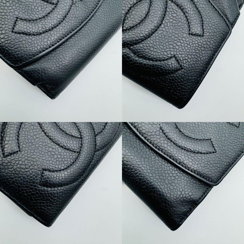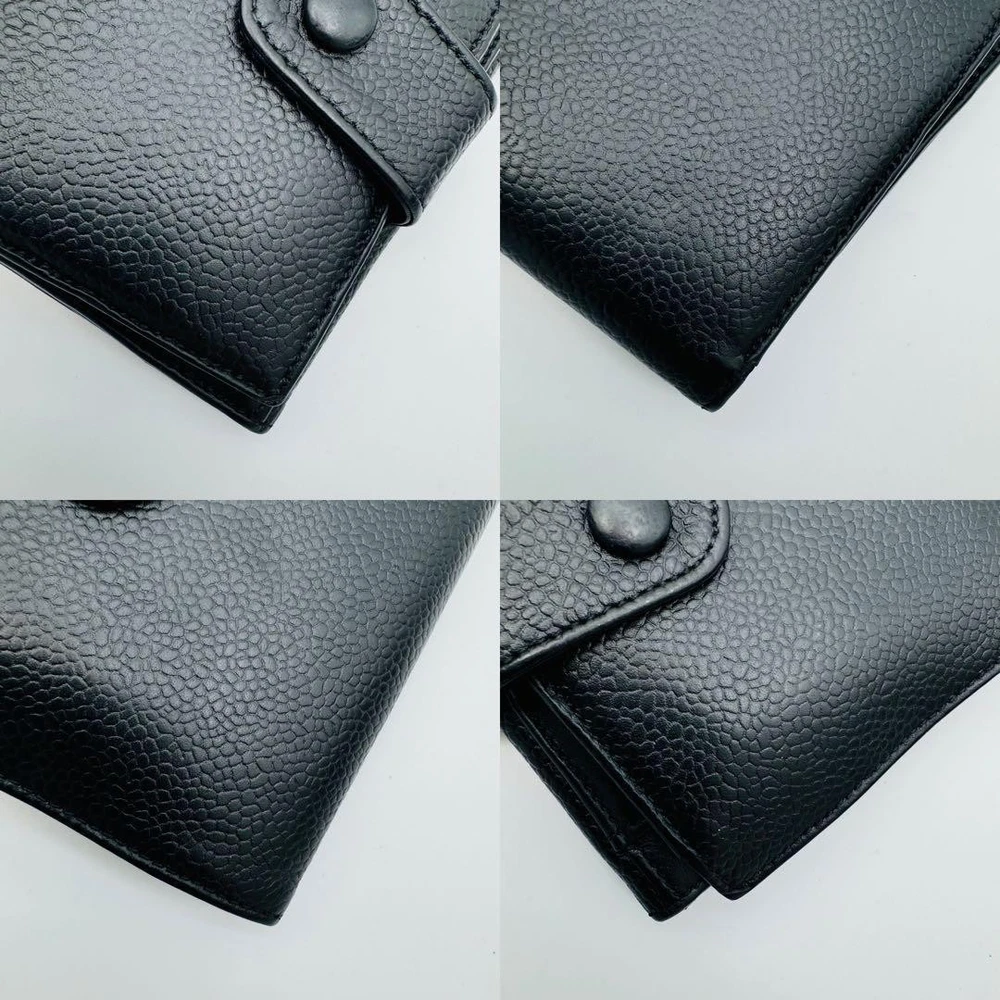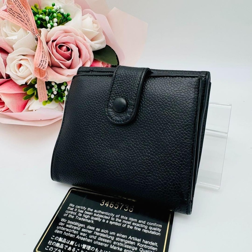 Chanel Bifold Wallet Black Leather Caviar Skin 466 Key Features Chanel Zippy Wallet in Black Leather. Features a serial number 3465736, with some sticker peeling. Includes 1 bill compartment, 6 card slots, 1 coin pocket, and 2 open pockets. Comes with a guarantee card. Condition: minor repairs on coin pocket, sticker residue, leather creasing, and color touch-ups. Waterproof coating applied. Dimensions: 11.5cm x 10cm x 2cm. Made from high-quality leather with gold and silver hardware. Perfect for everyday use. Item Specifics: - Brand: Chanel - Model: Zippy Wallet - Material: Leather - Color: Black - Size: 11.5cm x 10cm x 2cm - Features: Multiple card slots, coin pocket, full zip - Condition: Used, minor repairs, sticker residue, leather creasing Specifications Brand Chanel Country Japan Product Description Description Thank you for your interest. This item is not new, but a used item that was given away. Please check the photos for the condition of the item. Please understand that the condition of the item is subjective and the standard of evaluation and feeling may vary from person to person, so please be aware that this is a used item before bidding. Please check the photos for the condition of the item, such as scratches and stains. To prevent problems, please feel free to contact us if you have any questions about the size or other details of the item. We will be happy to adjust the price. We will do our best to ship your order as soon as possible. We will do our best to ship as soon as possible, but there may be delays during the busy harvest season. Remarks All the products we sell are obtained and sold by pawn shops that are authorized brands, so all the products we handle have been authenticated to meet our strict standards for authenticity, so please buy with confidence. Payment Supports managed payments Please pay within 5 days after auction is finished. About Us We are located in Japan. It's our pleasure to make you happy by proposing our recommend item. If you have any questions or request about items, please feel free to ask us. International Buyers - Please Note: -Importduties, taxes, and charges are not included in the item price or shipping charges. These charges are the buyer's responsibility. -Please check with your country's customs office to determine what these additional costs will be prior to bidding/buying. -These charges are normally collected by the delivering freight (shipping) company or when you pick the item up - do not confuse them for additional shipping charges. -We do not mark merchandise values below value or mark items as - gifts - The US and International government regulations prohibit such behavior. Thank you for your understanding
