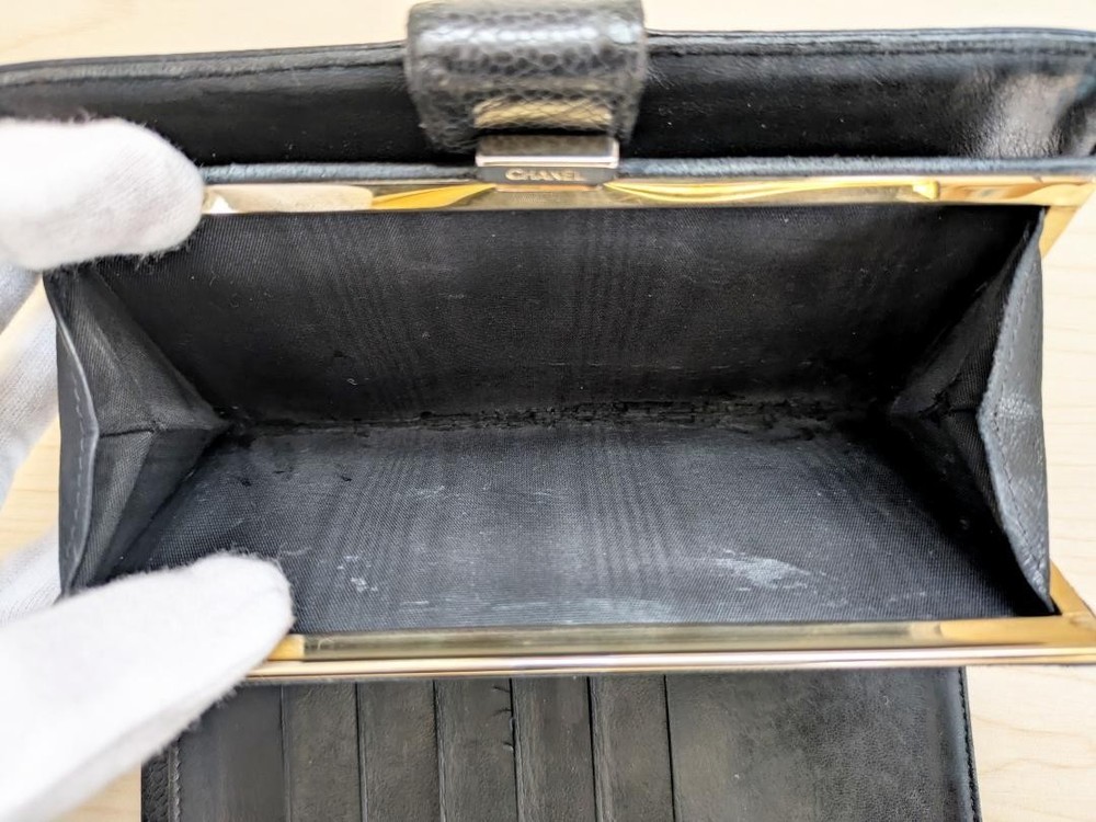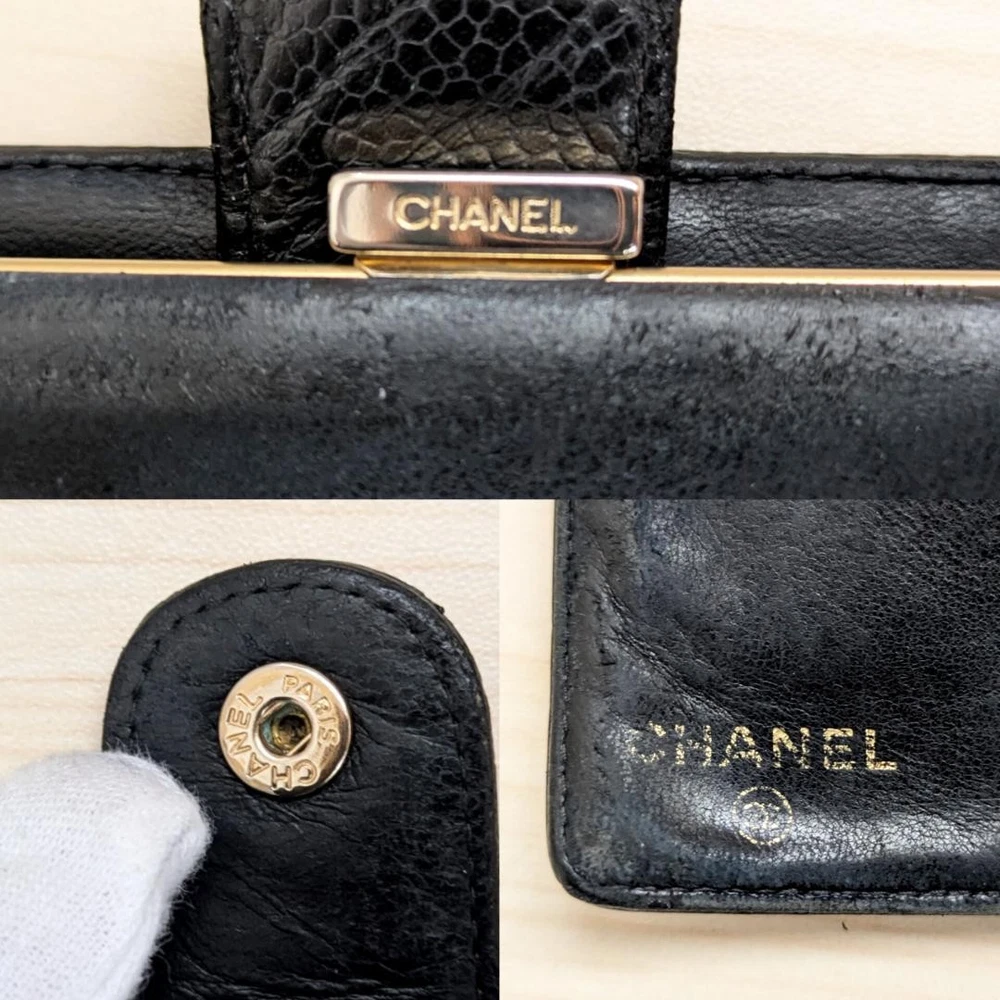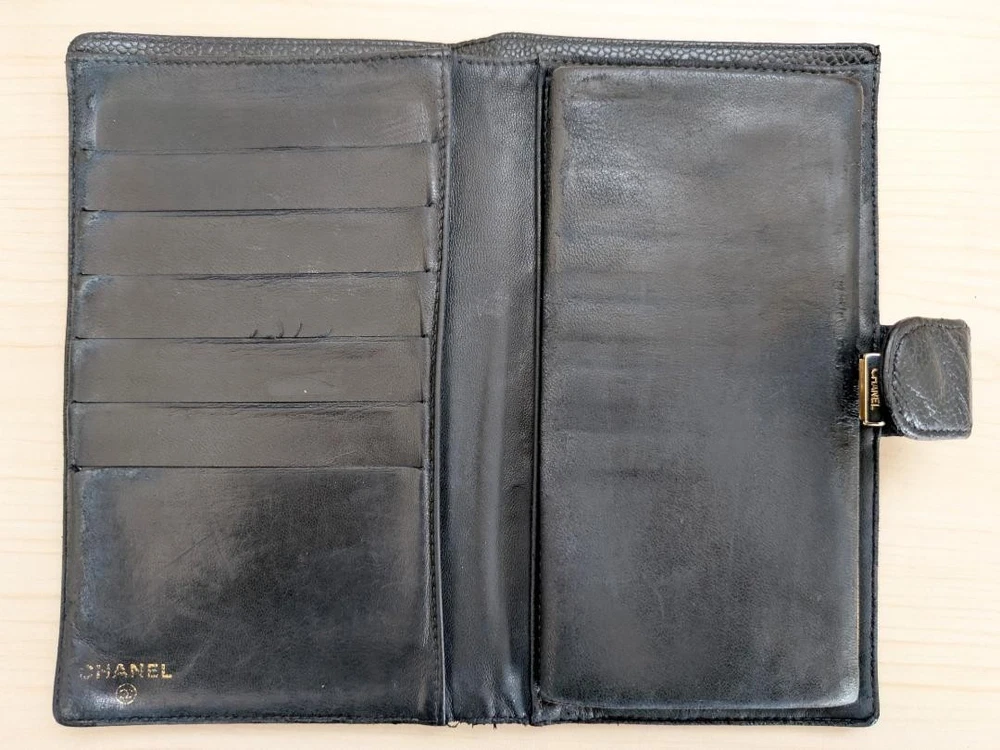 Chanel Caviar Leather Long Wallet Black Coin Purse Evening Pouch Used Key Features - Brand: CHANEL - Product: Caviar Skin Kiss Lock Long Wallet - Model: Serial number 9515012 - Color: Black - Material: Caviar leather - Size: approximately 4.13 inches (10.5cm) high x 6.89 inches (17.5cm) wide x 0.59 inches (1.5cm) depth - Features: - Elegant and practical design with a prominent large CC logo - Unisex style suitable for anyone - One bill compartment, one coin pocket with kiss lock, six card slots, two open pockets - Condition: - Exterior: No major scratches or stains, slight shape distortion from use, button slightly loose but functional - Interior: Used but still in good condition, coin pocket repaired, smooth kiss lock closure - Notes: - Professionally cleaned and authentic - No accessories included unless noted in the title or description Specifications Brand Chanel Country Japan Type Wallet Color Black Style Long Material Leather Product Description Item Title Chanel Caviar Skin Long Wallet With Luxurious, Sophisticated Design Payment Supports managed payments Please pay within 5 days after auction is finished. About Us We are located in Japan. It's our pleasure to make you happy by proposing our recommend item. If you have any questions or request about items, please feel free to ask us. International Buyers - Please Note: -Import duties, taxes, and charges are not included in the item price or shipping charges. These charges are the buyer's responsibility. -Please check with your country's customs office to determine what these additional costs will be prior to bidding/buying. -These charges are normally collected by the delivering freight (shipping) company or when you pick the item up - do not confuse them for additional shipping charges. -We do not mark merchandise values below value or mark items as - gifts - The US and International government regulations prohibit such behavior. Thank you for your understanding.