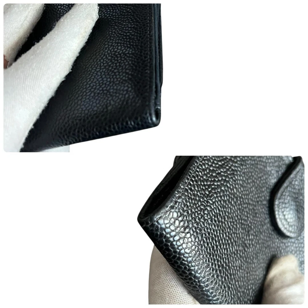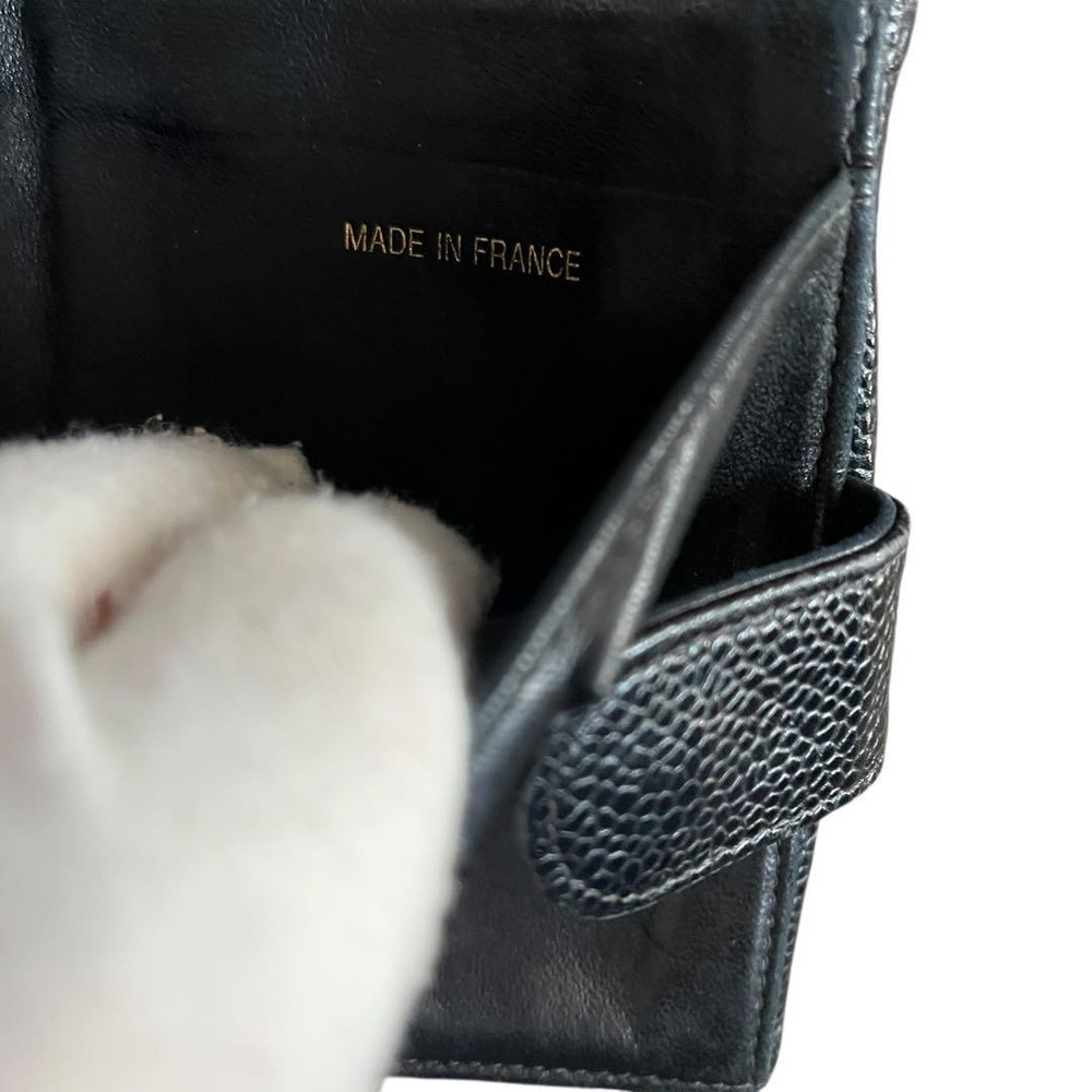 Chanel Caviar Leather Tri-Fold Wallet Black Compact Used Key Features - Brand: CHANEL - Product: Caviar Skin Compact Wallet - Material: Caviar grain leather - Color: Black - Size: approximately 3.9 inches (10cm) high x 4.5 inches (11.5cm) wide - Features: Card pockets, coin pocket, bill compartment - Condition: Very clean with minor corner scuffs and slight scratches; overall excellent condition. No serial number sticker, but verified authentic. - Notes: No accessories are included unless noted in the title or product description. If you have any questions, please ask before purchasing. Carefully packaged with tracking, waterproofing, and cushioning. Used item; not perfect. No exchanges for authenticity concerns. Specifications Brand Chanel Country Japan Type Wallet Color Black Style Compact Features Fold Material Leather Product Description Item Title Chanel Caviar Skin Tri-Fold Wallet Compact Payment Supports managed payments Please pay within 5 days after auction is finished. About Us We are located in Japan. It's our pleasure to make you happy by proposing our recommend item. If you have any questions or request about items, please feel free to ask us. International Buyers - Please Note: -Import duties, taxes, and charges are not included in the item price or shipping charges. These charges are the buyer's responsibility. -Please check with your country's customs office to determine what these additional costs will be prior to bidding/buying. -These charges are normally collected by the delivering freight (shipping) company or when you pick the item up - do not confuse them for additional shipping charges. -We do not mark merchandise values below value or mark items as - gifts - The US and International government regulations prohibit such behavior. Thank you for your understanding.