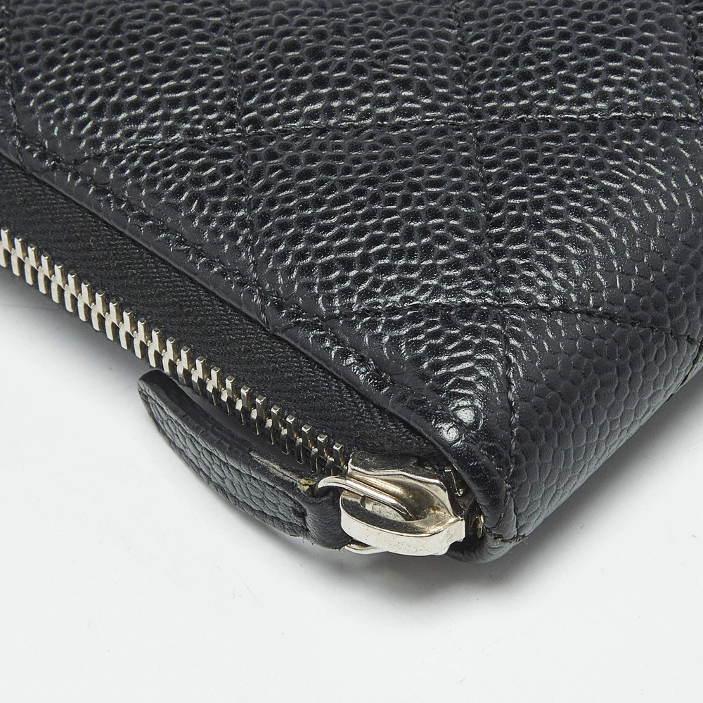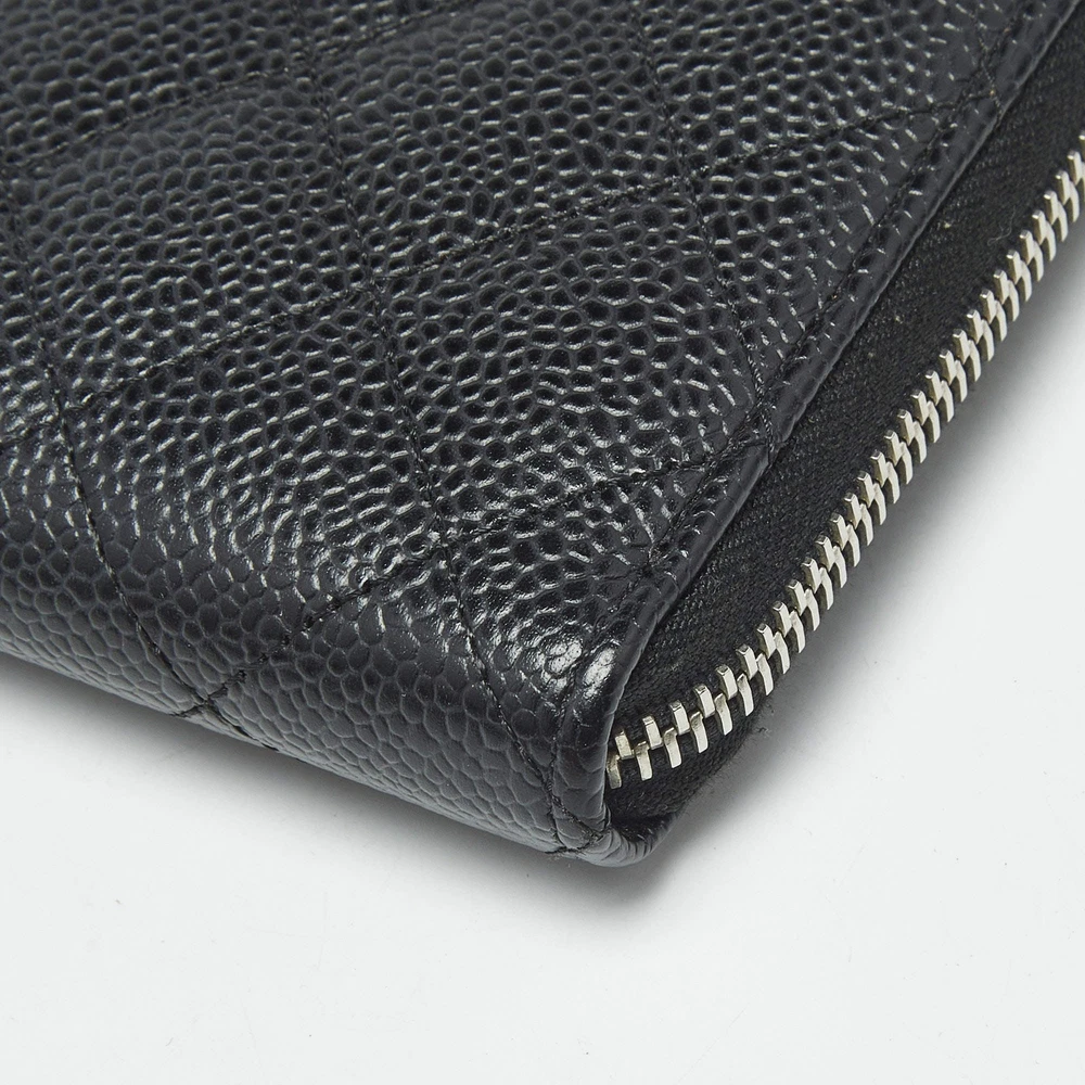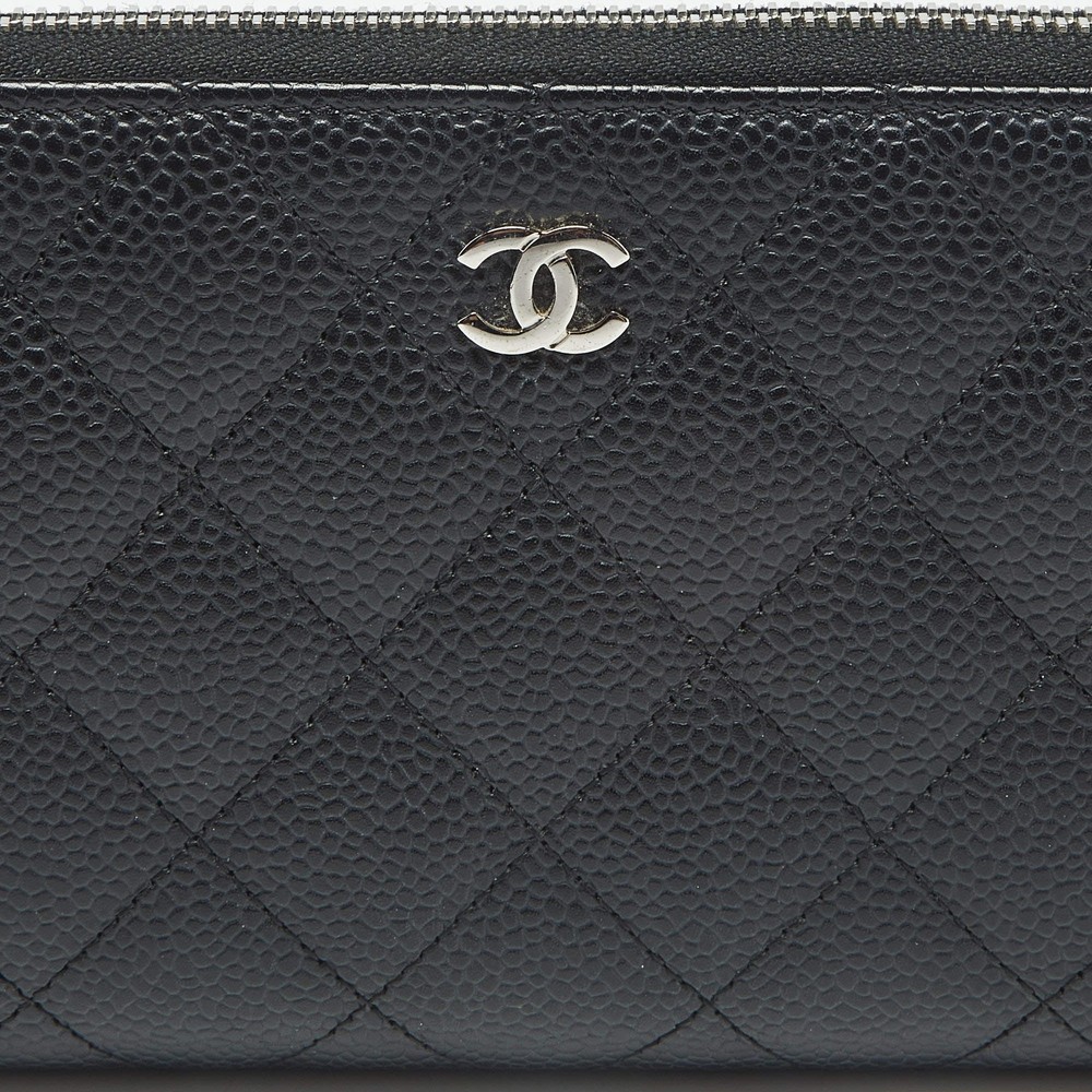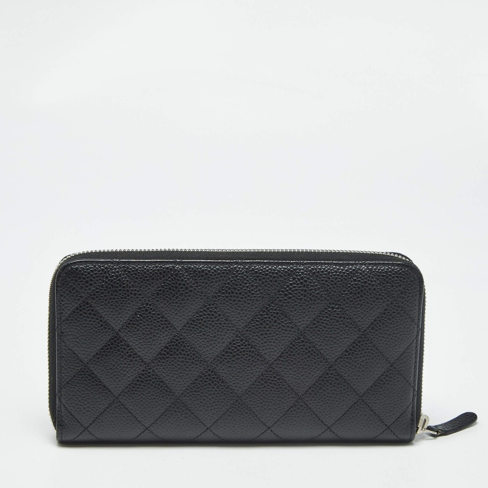 Our eBay Store About Us Contact Us Add to Favorite Sellers Chanel Black Quilted Caviar Leather CC Zip Around Wallet $706 Crafted from caviar leather and finished with Chanel’s iconic quilting, this sleek black wallet is both refined and resilient. The CC zip-around closure ensures your valuables stay stylishly secure. Product Details Brand Chanel Color Black Includes Authenticity Card, Original Box, Original Pouch Material Leather and Nylon Certified by The Luxury Closet This item has gone through a detailed authentication process overseen by our experts. We offer a lifetime guarantee of authenticity on all our items. How We Check The in-house team of experts at The Luxury Closet is highly trained to verify the authenticity and the condition of the luxury products. They ensure that only 100% authentic items are put on sale.The evaluation process is unique with its own mix of assessment criteria and differs according to the category. Each item is evaluated based on the following combination of hallmarks, hardware, stitching, symmetry, material, craftsmanship, stamping, codes, hologram stickers, and packaging. Our authenticators also check if the items have been modified or amended (e.g., aftermarket diamonds, replaced batteries, repaired bags, etc.) International Buyers Import duties, taxes and charges are not included in the item price. These charges are the buyers responsibility. Please check with your country’s customs office to determine what these additional cost will be prior to buying.