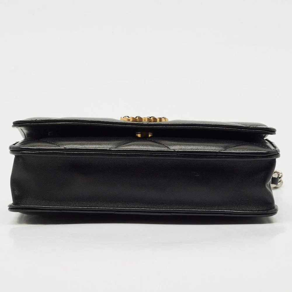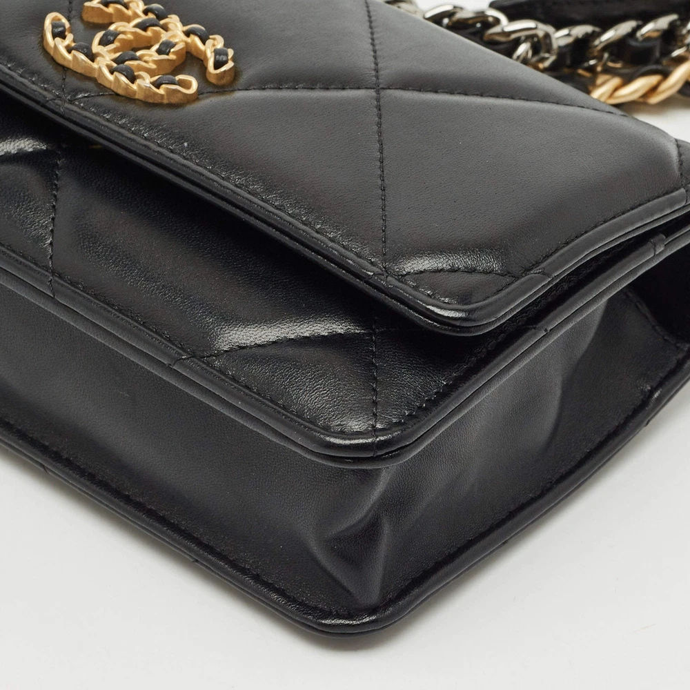 Our eBay Store About Us Contact Us Add to Favorite Sellers Chanel Black Quilted Leather 19 Flap Wallet on Chain $4898 Timeless with a modern twist, this Chanel 19 Wallet on Chain is crafted from supple black quilted leather and finished with the signature mixed-metal CC logo. Featuring the iconic flap silhouette and an interwoven chain strap, it transitions effortlessly from wallet to mini bag. Product Details Brand Chanel Color Black Includes Damaged Original Pouch Material Leather, Nylon Certified by The Luxury Closet This item has gone through a detailed authentication process overseen by our experts. We offer a lifetime guarantee of authenticity on all our items. How We Check The in-house team of experts at The Luxury Closet is highly trained to verify the authenticity and the condition of the luxury products. They ensure that only 100% authentic items are put on sale.The evaluation process is unique with its own mix of assessment criteria and differs according to the category. Each item is evaluated based on the following combination of hallmarks, hardware, stitching, symmetry, material, craftsmanship, stamping, codes, hologram stickers, and packaging. Our authenticators also check if the items have been modified or amended (e.g., aftermarket diamonds, replaced batteries, repaired bags, etc.) International Buyers Import duties, taxes and charges are not included in the item price. These charges are the buyers responsibility. Please check with your country’s customs office to determine what these additional cost will be prior to buying.