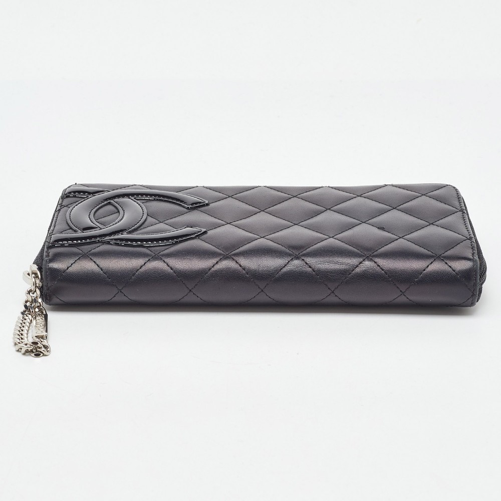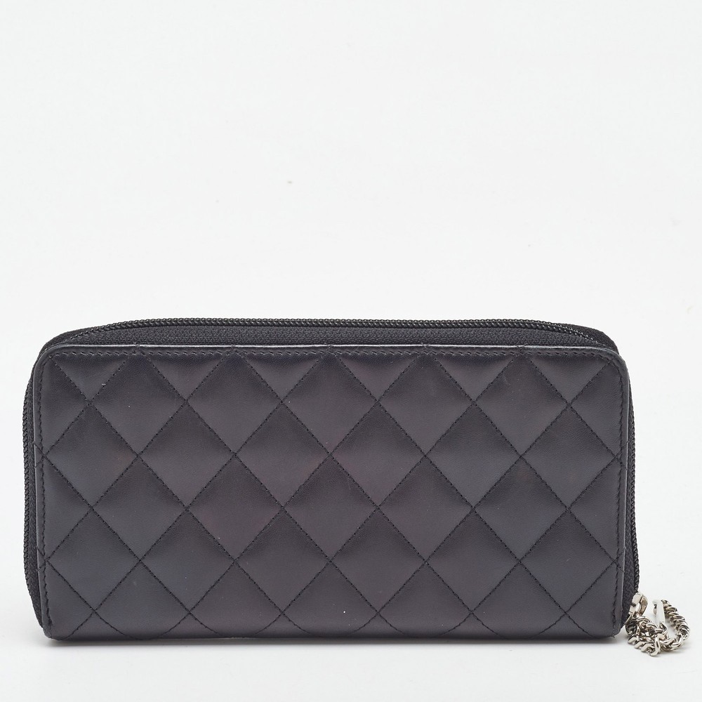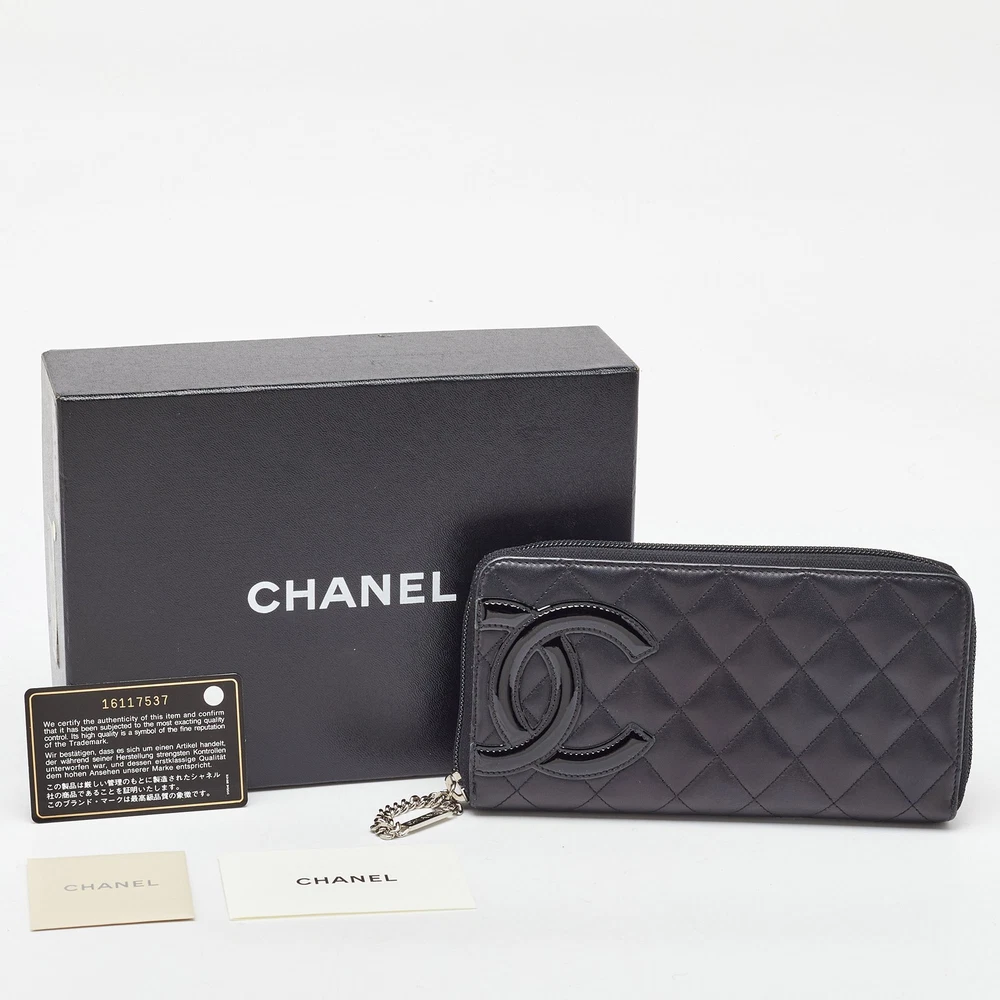 This Chanel organizer wallet from the Cambon Ligne collection features classic quilted leather and bold CC logo. The zip around design reveals multiple slots, blending everyday functionality with unmistakable style.Certified by The Luxury Closet - This item has gone through a detailed authentication process overseen by our experts. We offer a lifetime guarantee of authenticity on all our items. Import duties, taxes and charges are not included in the item price. These charges are the buyers responsibility. Please check with your country’s customs office to determine what these additional cost will be prior to buying. Our eBay Store About Us Contact Us Add to Favorite Sellers Chanel Black Quilted Leather CC Cambon Ligne Zip Around Organizer Wallet $601.7 This Chanel organizer wallet from the Cambon Ligne collection features classic quilted leather and bold CC logo. The zip around design reveals multiple slots, blending everyday functionality with unmistakable style. Product Details Brand Color Black Dimensions Material Leather Size Outsole Width Outsole Length Heel Height Includes Certified by The Luxury Closet This item has gone through a detailed authentication process overseen by our experts. We offer a lifetime guarantee of authenticity on all our items. How We Check The in-house team of experts at The Luxury Closet is highly trained to verify the authenticity and the condition of the luxury products. They ensure that only 100% authentic items are put on sale.The evaluation process is unique with its own mix of assessment criteria and differs according to the category. Each item is evaluated based on the following combination of hallmarks, hardware, stitching, symmetry, material, craftsmanship, stamping, codes, hologram stickers, and packaging. Our authenticators also check if the items have been modified or amended (e.g., aftermarket diamonds, replaced batteries, repaired bags, etc.) International Buyers Import duties, taxes and charges are not included in the item price. These charges are the buyers responsibility. Please check with your country’s customs office to determine what these additional cost will be prior to buying.