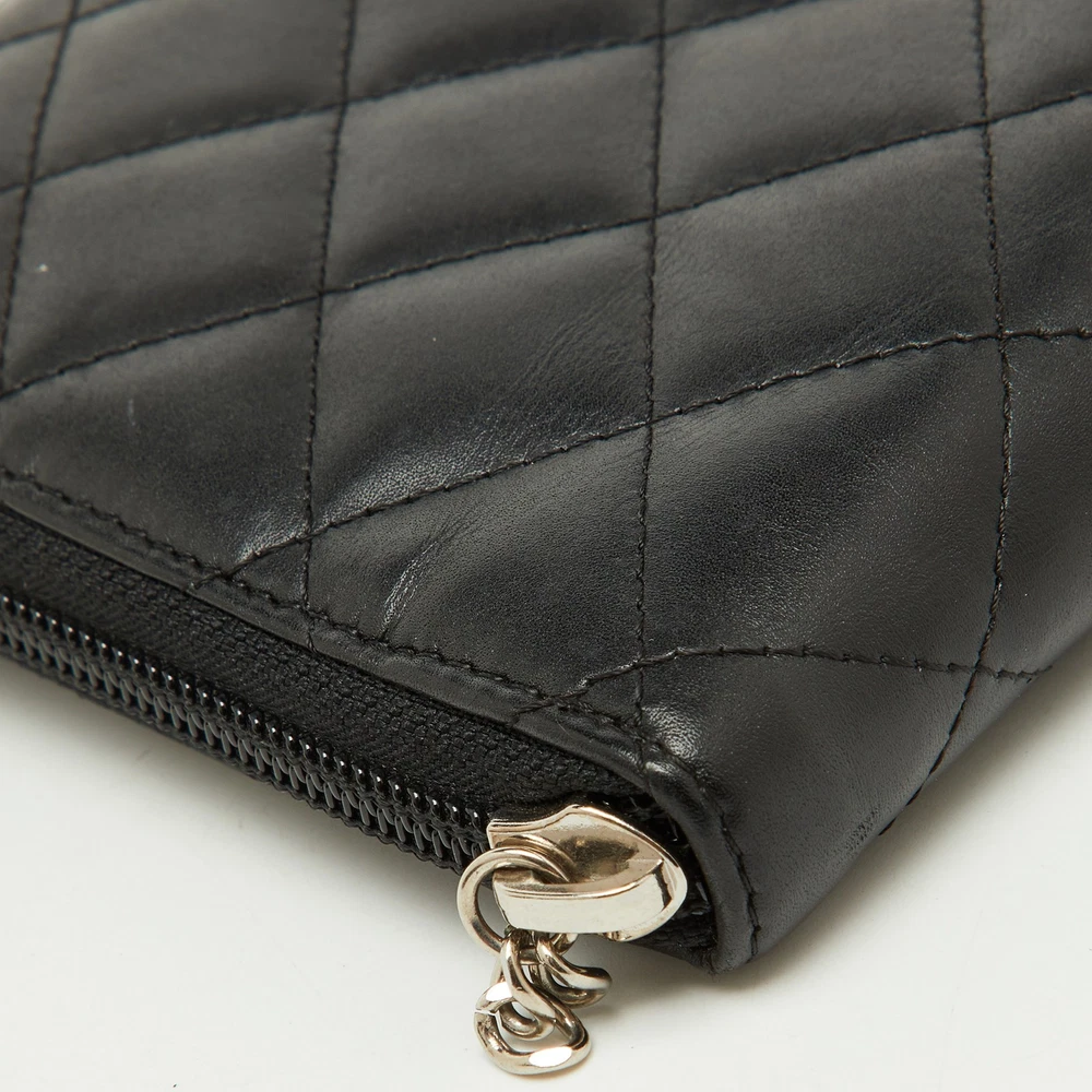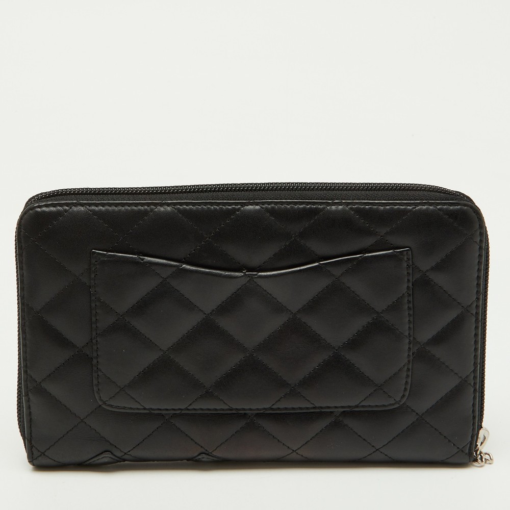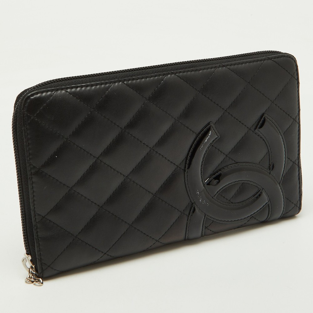 Sophisticated and striking, the Chanel Cambon Ligne Organizer wallet is a luxurious accessory with bold appeal. Crafted from black quilted leather and finished with the oversized interlocking CC logo, it features a zip around closure and a roomy interior for seamless organization.Certified by The Luxury Closet - This item has gone through a detailed authentication process overseen by our experts. We offer a lifetime guarantee of authenticity on all our items. Import duties, taxes and charges are not included in the item price. These charges are the buyers responsibility. Please check with your country’s customs office to determine what these additional cost will be prior to buying. Our eBay Store About Us Contact Us Add to Favorite Sellers Chanel Black Quilted Leather CC Cambon Ligne Zip Around Organizer Wallet $544.5 Sophisticated and striking, the Chanel Cambon Ligne Organizer wallet is a luxurious accessory with bold appeal. Crafted from black quilted leather and finished with the oversized interlocking CC logo, it features a zip around closure and a roomy interior for seamless organization. Product Details Brand Color Black Dimensions Material Leather Size Outsole Width Outsole Length Heel Height Includes Certified by The Luxury Closet This item has gone through a detailed authentication process overseen by our experts. We offer a lifetime guarantee of authenticity on all our items. How We Check The in-house team of experts at The Luxury Closet is highly trained to verify the authenticity and the condition of the luxury products. They ensure that only 100% authentic items are put on sale.The evaluation process is unique with its own mix of assessment criteria and differs according to the category. Each item is evaluated based on the following combination of hallmarks, hardware, stitching, symmetry, material, craftsmanship, stamping, codes, hologram stickers, and packaging. Our authenticators also check if the items have been modified or amended (e.g., aftermarket diamonds, replaced batteries, repaired bags, etc.) International Buyers Import duties, taxes and charges are not included in the item price. These charges are the buyers responsibility. Please check with your country’s customs office to determine what these additional cost will be prior to buying.