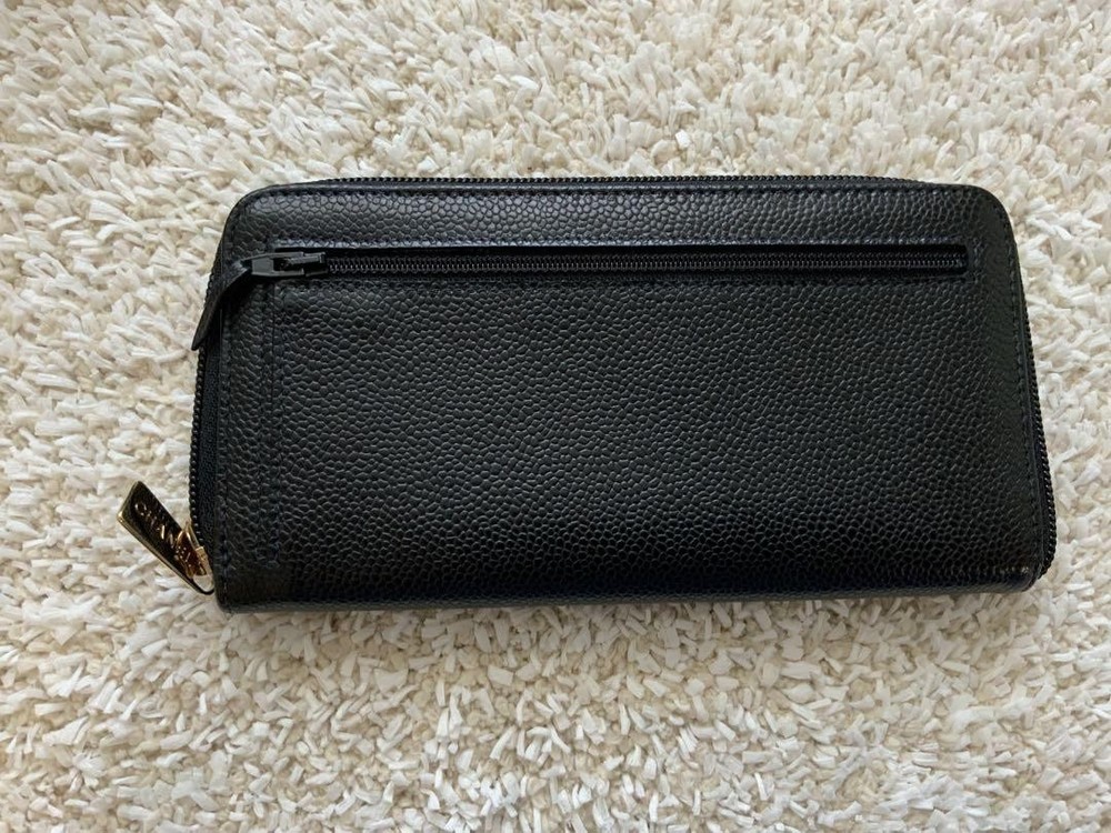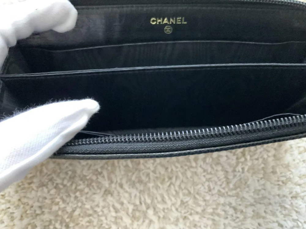 Chanel Black Wallet Key Features Chanel black wallet with round zipper. Purchased over 10 years ago, used only indoors, with some white threads inside. The box shows signs of dirt. Comes with box and card. Please note this is a pre-owned item; minor wear is present. Item Specifics: Brand: Chanel Color: Black Material: Not specified Type: Wallet Closure: Zipper Specifications Brand Chanel Country Japan Product Description Description Thank you for your interest. This item is not new, but a used item that was given away. Please check the photos for the condition of the item. Please understand that the condition of the item is subjective and the standard of evaluation and feeling may vary from person to person, so please be aware that this is a used item before bidding. Please check the photos for the condition of the item, such as scratches and stains. To prevent problems, please feel free to contact us if you have any questions about the size or other details of the item. We will be happy to adjust the price. We will do our best to ship your order as soon as possible. We will do our best to ship as soon as possible, but there may be delays during the busy harvest season. Remarks All the products we sell are obtained and sold by pawn shops that are authorized brands, so all the products we handle have been authenticated to meet our strict standards for authenticity, so please buy with confidence. Payment Supports managed payments Please pay within 5 days after auction is finished. About Us We are located in Japan. It's our pleasure to make you happy by proposing our recommend item. If you have any questions or request about items, please feel free to ask us. International Buyers - Please Note: -Importduties, taxes, and charges are not included in the item price or shipping charges. These charges are the buyer's responsibility. -Please check with your country's customs office to determine what these additional costs will be prior to bidding/buying. -These charges are normally collected by the delivering freight (shipping) company or when you pick the item up - do not confuse them for additional shipping charges. -We do not mark merchandise values below value or mark items as - gifts - The US and International government regulations prohibit such behavior. Thank you for your understanding