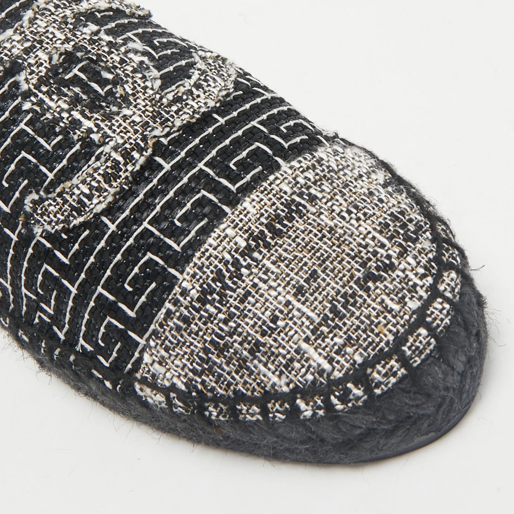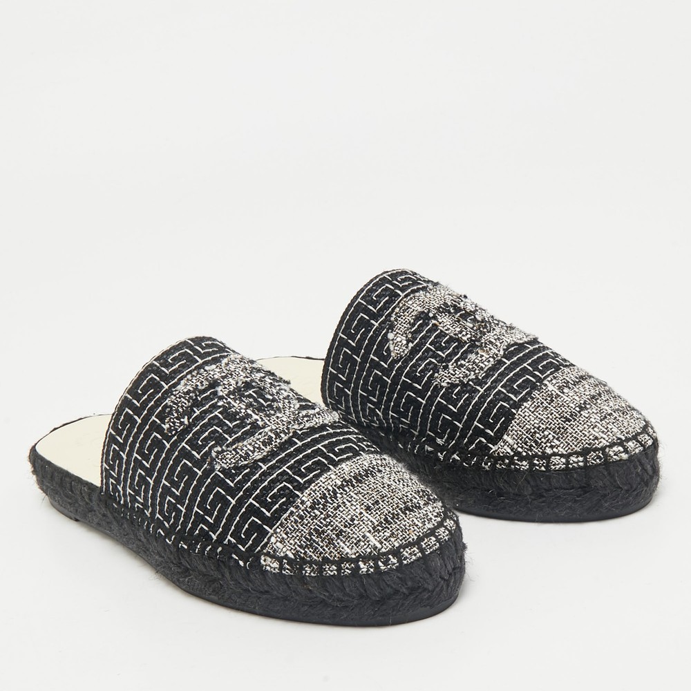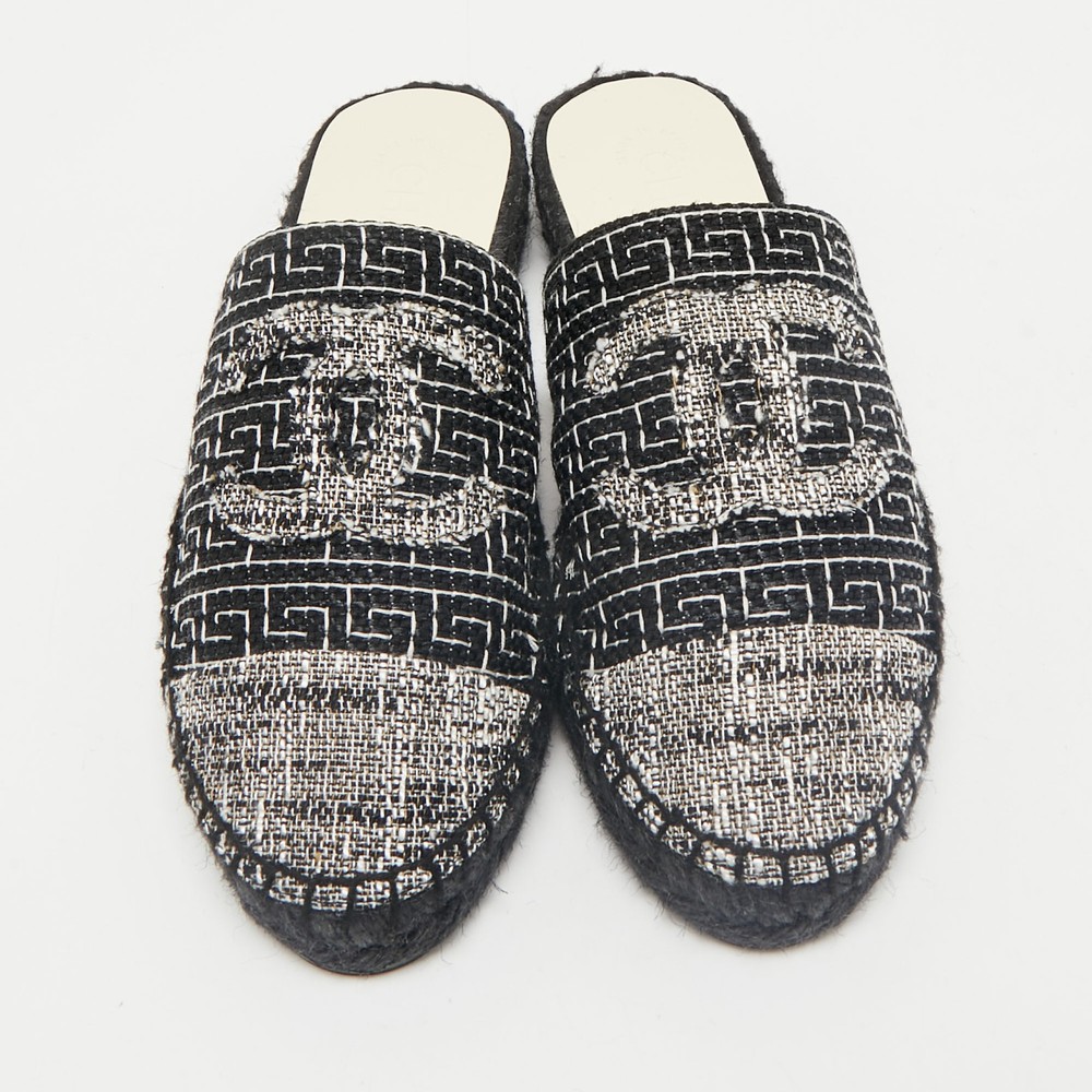 A perfect blend of luxury, style, and comfort, these designer mules are made using quality materials and frame your feet in the most elegant way. They can be paired with a host of outfits from your wardrobe.Certified by The Luxury Closet - This item has gone through a detailed authentication process overseen by our experts. We offer a lifetime guarantee of authenticity on all our items. Import duties, taxes and charges are not included in the item price. These charges are the buyers responsibility. Please check with your country’s customs office to determine what these additional cost will be prior to buying. Our eBay Store About Us Contact Us Add to Favorite Sellers Chanel Black/White Tweed CC Espadrille Mules Size 36 $619.3 A perfect blend of luxury, style, and comfort, these designer mules are made using quality materials and frame your feet in the most elegant way. They can be paired with a host of outfits from your wardrobe. Product Details Brand Color Black Dimensions Material Tweed Size 36 Outsole Width Outsole Length Heel Height Includes Certified by The Luxury Closet This item has gone through a detailed authentication process overseen by our experts. We offer a lifetime guarantee of authenticity on all our items. How We Check The in-house team of experts at The Luxury Closet is highly trained to verify the authenticity and the condition of the luxury products. They ensure that only 100% authentic items are put on sale.The evaluation process is unique with its own mix of assessment criteria and differs according to the category. Each item is evaluated based on the following combination of hallmarks, hardware, stitching, symmetry, material, craftsmanship, stamping, codes, hologram stickers, and packaging. Our authenticators also check if the items have been modified or amended (e.g., aftermarket diamonds, replaced batteries, repaired bags, etc.) International Buyers Import duties, taxes and charges are not included in the item price. These charges are the buyers responsibility. Please check with your country’s customs office to determine what these additional cost will be prior to buying.
