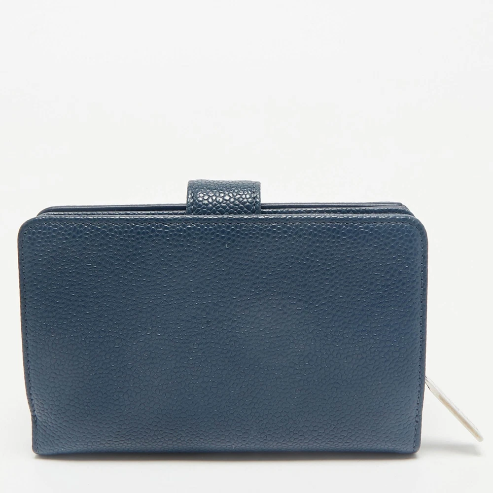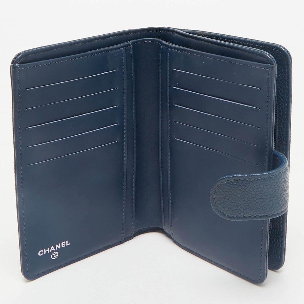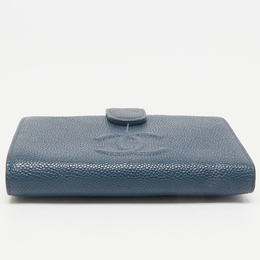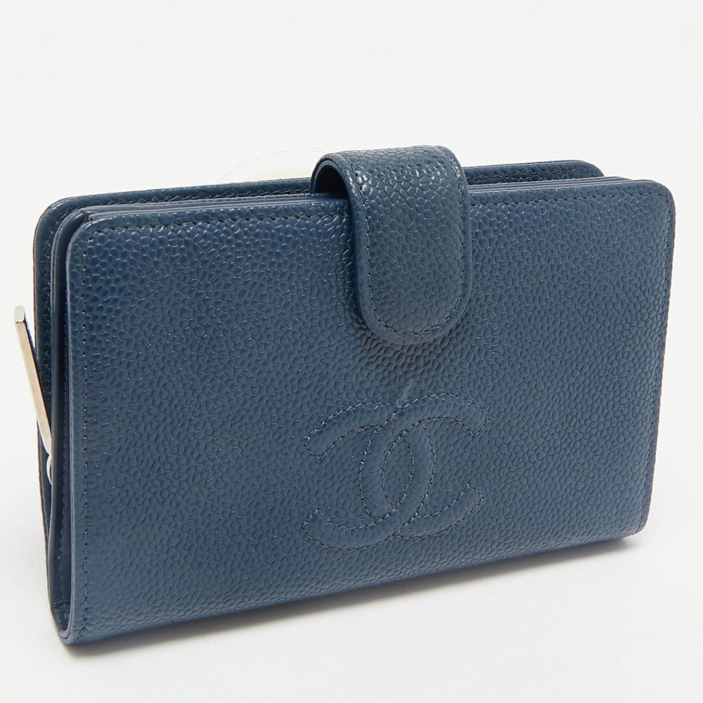 Petite and polished, this Chanel French wallet is crafted from grained blue caviar leather—durable, luxurious, and classic. It opens to reveal a well designed interior with compartments for cards, coins, and cash, all wrapped in a chic, compact silhouette. An embossed CC logo adds the final flourish to this elegant accessory.Certified by The Luxury Closet - This item has gone through a detailed authentication process overseen by our experts. We offer a lifetime guarantee of authenticity on all our items. Import duties, taxes and charges are not included in the item price. These charges are the buyers responsibility. Please check with your country’s customs office to determine what these additional cost will be prior to buying. Our eBay Store About Us Contact Us Add to Favorite Sellers Chanel Blue Caviar Leather French Wallet $441.1 Petite and polished, this Chanel French wallet is crafted from grained blue caviar leather—durable, luxurious, and classic. It opens to reveal a well designed interior with compartments for cards, coins, and cash, all wrapped in a chic, compact silhouette. An embossed CC logo adds the final flourish to this elegant accessory. Product Details Brand Color Blue Dimensions Material Leather Size Outsole Width Outsole Length Heel Height Includes Certified by The Luxury Closet This item has gone through a detailed authentication process overseen by our experts. We offer a lifetime guarantee of authenticity on all our items. How We Check The in-house team of experts at The Luxury Closet is highly trained to verify the authenticity and the condition of the luxury products. They ensure that only 100% authentic items are put on sale.The evaluation process is unique with its own mix of assessment criteria and differs according to the category. Each item is evaluated based on the following combination of hallmarks, hardware, stitching, symmetry, material, craftsmanship, stamping, codes, hologram stickers, and packaging. Our authenticators also check if the items have been modified or amended (e.g., aftermarket diamonds, replaced batteries, repaired bags, etc.) International Buyers Import duties, taxes and charges are not included in the item price. These charges are the buyers responsibility. Please check with your country’s customs office to determine what these additional cost will be prior to buying.