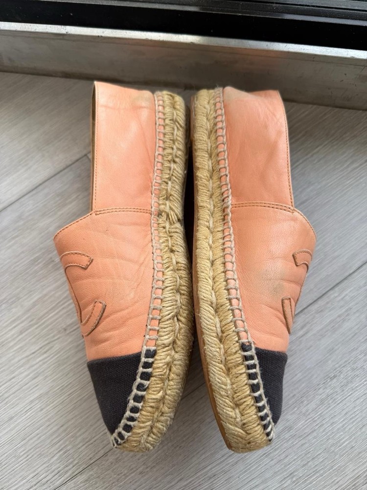 Absolutely love these Chanel espadrilles! The salmon and black combo is so chic, and the lambskin lining makes them incredibly soft and comfortable. The CC logo adds just the right amount of luxury—perfect for everyday wear. True to size, easy to slip on, and the craftsmanship is impeccable. A must-have for any fashion lover!