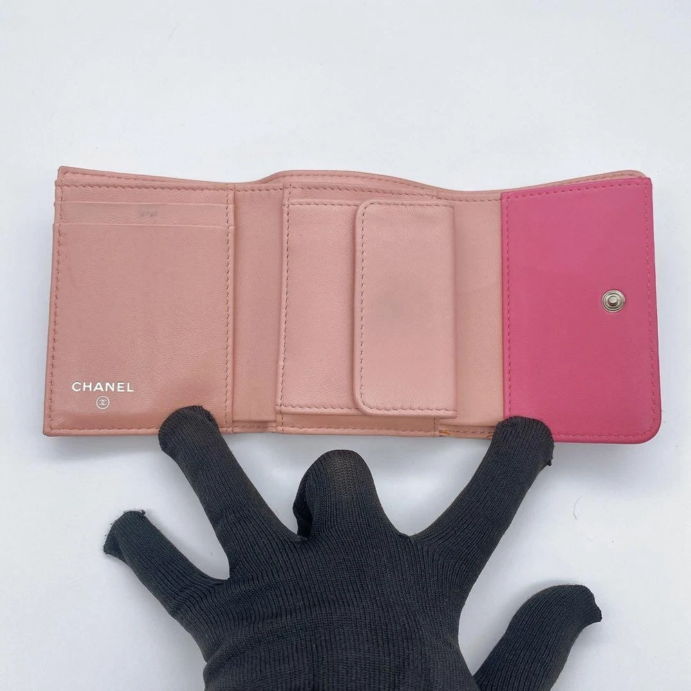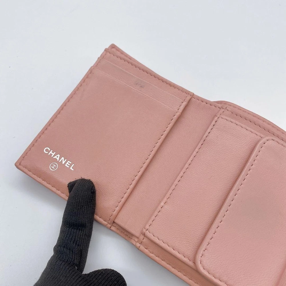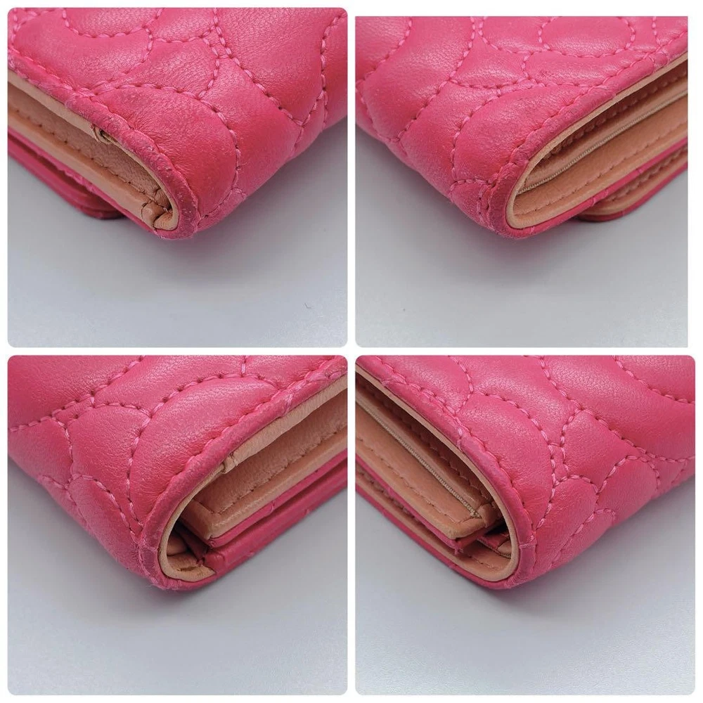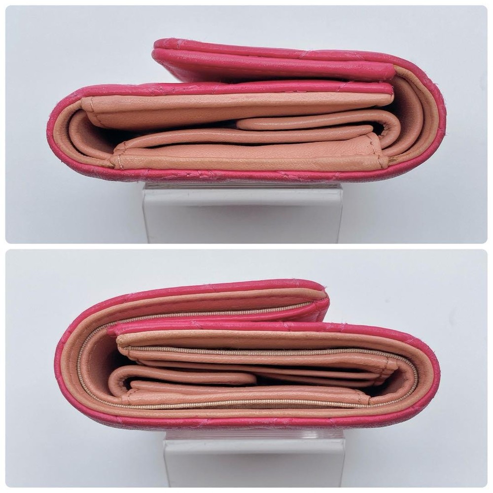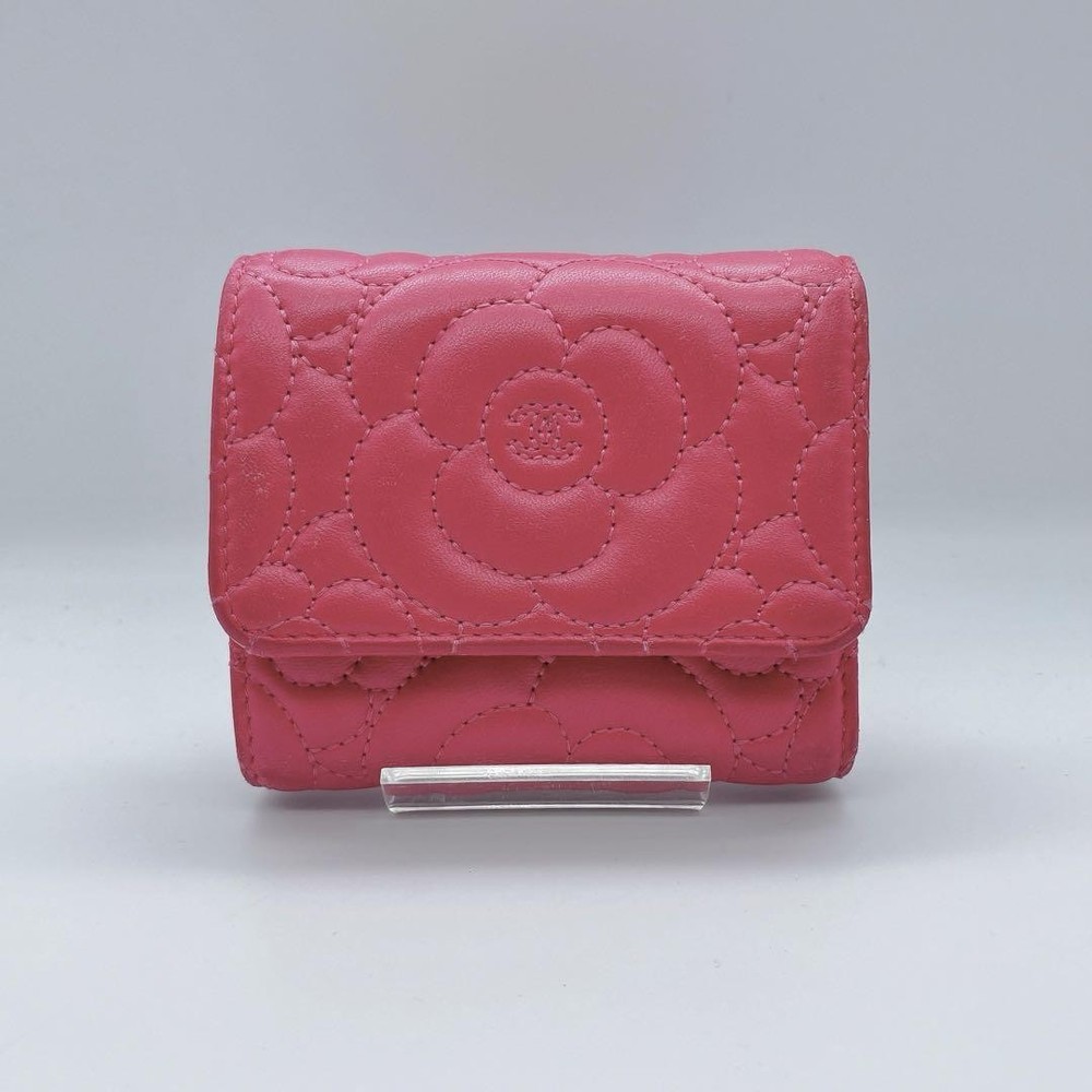 Chanel Camellia Coco Mark Tri-Fold Wallet Pink Number 23 Key Features Chanel Camellia and Coco Mark Women's Bifold Wallet in Pink. Crafted from leather, this elegant accessory features a pink hue, measuring approximately 9cm x 10.5cm x 3cm. It includes one coin pocket, one bill compartment, two card slots, and two additional pockets. The wallet shows minor signs of use, such as slight scratches and dirt inside the coin case and card slots. No button or snap looseness. Serial number: 23. This item is authentic, verified under the Otaru Merchant License No. 941010003461. No accessories included. Please note the item is pre-owned and colors may vary slightly due to display differences. Shipped securely in waterproof packaging with bubble wrap. Item Specifics: - Brand: Chanel - Model: Camellia & Coco Mark Bifold Wallet - Material: Leather - Color: Pink - Size: 9cm x 10.5cm x 3cm Specifications Brand Chanel Country Japan Product Description Description Thank you for your interest. This item is not new, but a used item that was given away. Please check the photos for the condition of the item. Please understand that the condition of the item is subjective and the standard of evaluation and feeling may vary from person to person, so please be aware that this is a used item before bidding. Please check the photos for the condition of the item, such as scratches and stains. To prevent problems, please feel free to contact us if you have any questions about the size or other details of the item. We will be happy to adjust the price. We will do our best to ship your order as soon as possible. We will do our best to ship as soon as possible, but there may be delays during the busy harvest season. Remarks All the products we sell are obtained and sold by pawn shops that are authorized brands, so all the products we handle have been authenticated to meet our strict standards for authenticity, so please buy with confidence. Payment Supports managed payments Please pay within 5 days after auction is finished. About Us We are located in Japan. It's our pleasure to make you happy by proposing our recommend item. If you have any questions or request about items, please feel free to ask us. International Buyers - Please Note: -Importduties, taxes, and charges are not included in the item price or shipping charges. These charges are the buyer's responsibility. -Please check with your country's customs office to determine what these additional costs will be prior to bidding/buying. -These charges are normally collected by the delivering freight (shipping) company or when you pick the item up - do not confuse them for additional shipping charges. -We do not mark merchandise values below value or mark items as - gifts - The US and International government regulations prohibit such behavior. Thank you for your understanding