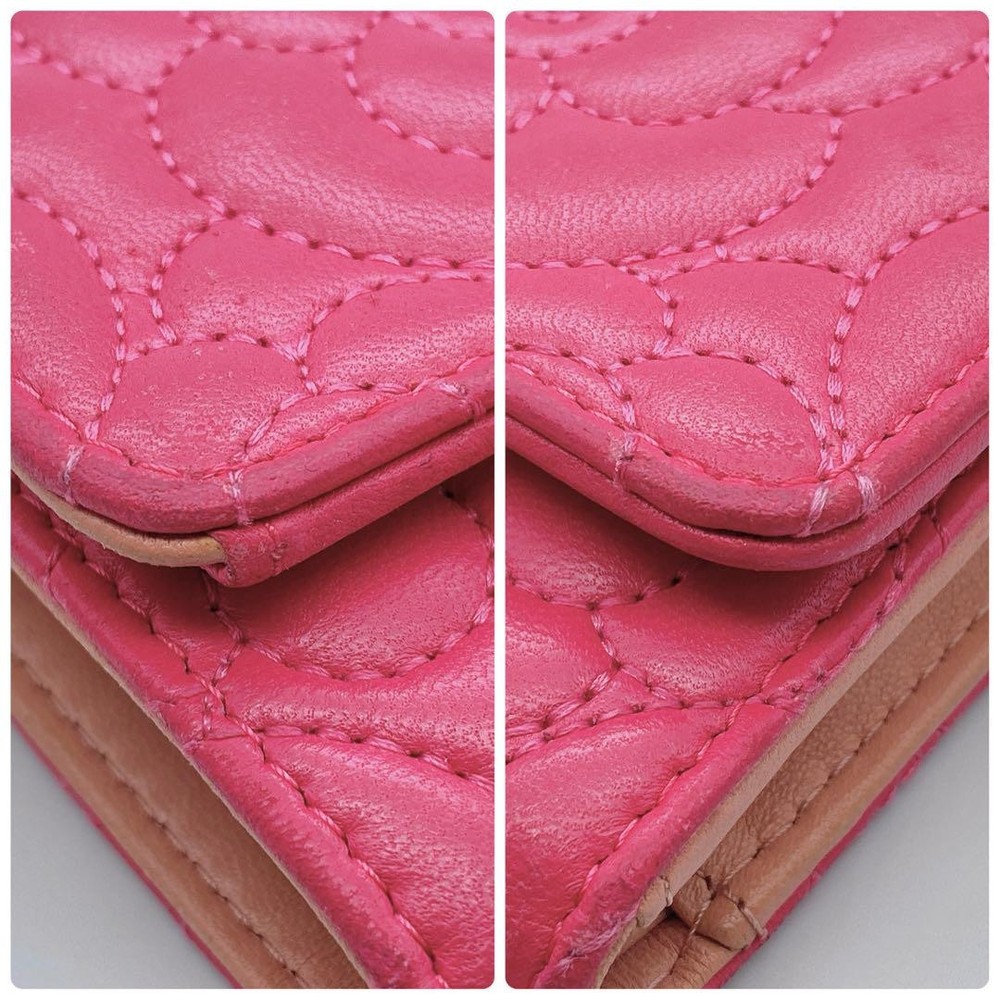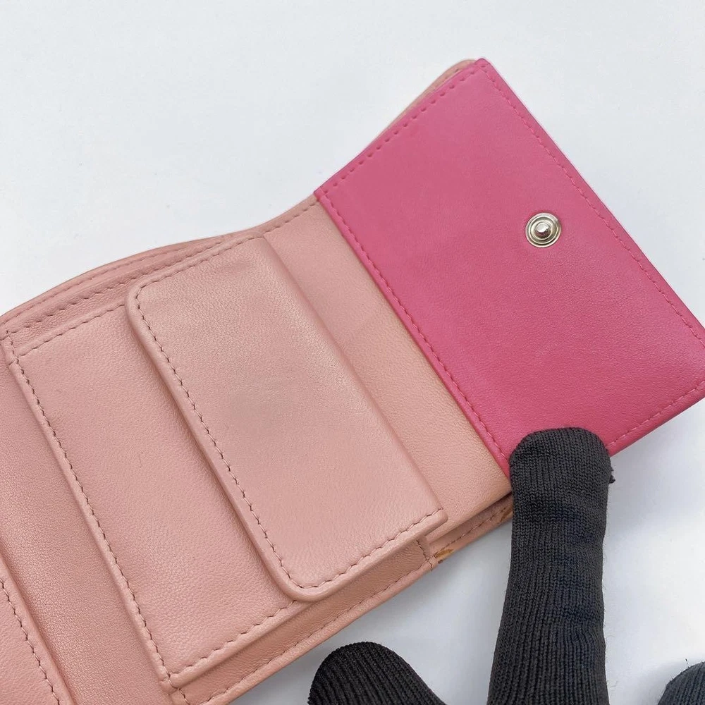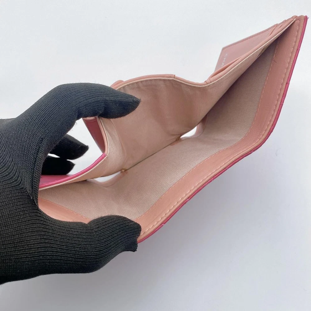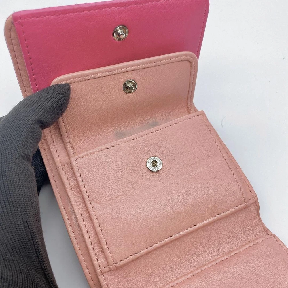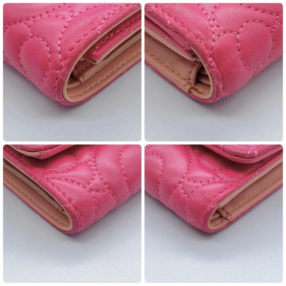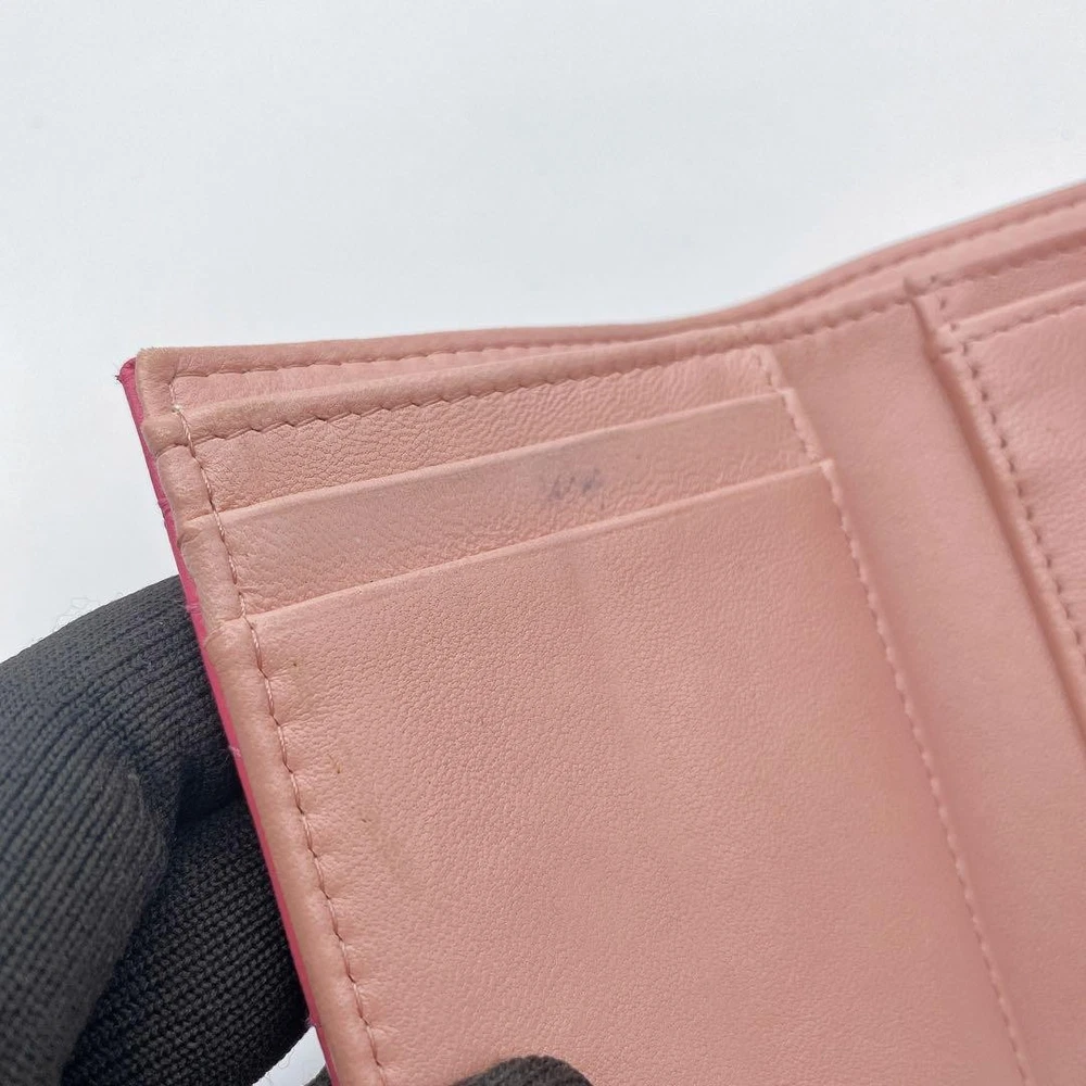 Chanel Camellia Coco Mark Tri-Fold Wallet Pink Number 23 Key Features Chanel Camellia and Coco Mark Women's Bifold Wallet in Pink. Crafted from leather, this elegant accessory features a pink hue, measuring approximately 9cm x 10.5cm x 3cm. It includes one coin pocket, one bill compartment, two card slots, and two additional pockets. The wallet shows minor signs of use, such as slight scratches and dirt inside the coin case and card slots. No button or snap looseness. Serial number: 23. This item is authentic, verified under the Otaru Merchant License No. 941010003461. No accessories included. Please note the item is pre-owned and colors may vary slightly due to display differences. Shipped securely in waterproof packaging with bubble wrap. Item Specifics: - Brand: Chanel - Model: Camellia & Coco Mark Bifold Wallet - Material: Leather - Color: Pink - Size: 9cm x 10.5cm x 3cm Specifications Brand Chanel Country Japan Product Description Description Thank you for your interest. This item is not new, but a used item that was given away. Please check the photos for the condition of the item. Please understand that the condition of the item is subjective and the standard of evaluation and feeling may vary from person to person, so please be aware that this is a used item before bidding. Please check the photos for the condition of the item, such as scratches and stains. To prevent problems, please feel free to contact us if you have any questions about the size or other details of the item. We will be happy to adjust the price. We will do our best to ship your order as soon as possible. We will do our best to ship as soon as possible, but there may be delays during the busy harvest season. Remarks All the products we sell are obtained and sold by pawn shops that are authorized brands, so all the products we handle have been authenticated to meet our strict standards for authenticity, so please buy with confidence. Payment Supports managed payments Please pay within 5 days after auction is finished. About Us We are located in Japan. It's our pleasure to make you happy by proposing our recommend item. If you have any questions or request about items, please feel free to ask us. International Buyers - Please Note: -Importduties, taxes, and charges are not included in the item price or shipping charges. These charges are the buyer's responsibility. -Please check with your country's customs office to determine what these additional costs will be prior to bidding/buying. -These charges are normally collected by the delivering freight (shipping) company or when you pick the item up - do not confuse them for additional shipping charges. -We do not mark merchandise values below value or mark items as - gifts - The US and International government regulations prohibit such behavior. Thank you for your understanding
