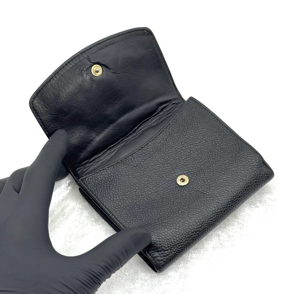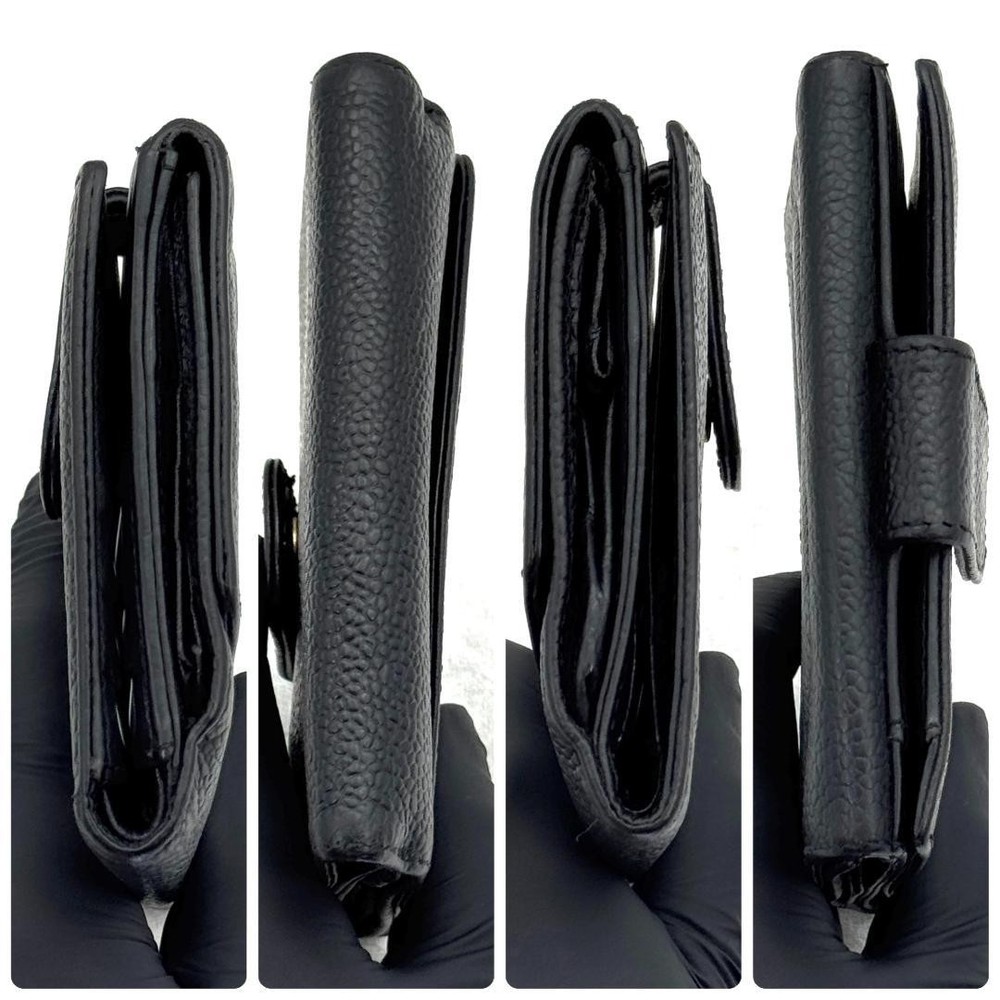 Chanel Caviar Bifold Wallet Coco Mark Black Authentic Compact with Strap Key Features - Brand: CHANEL - Product: Caviar Leather Bifold Wallet - Color: Black - Material: Caviar Leather - Size: approximately 4.5 inches (W) x 3.9 inches (H) - Serial: 4-digit code - Condition: Very clean exterior with no noticeable scratches or stains; glossy and well-maintained. Interior shows minor wear but no significant damage. Coin pocket has slight wear but no tears or stains. Snap button functions properly. - Includes: Serial sticker, optional external shoulder strap set (can be purchased for 10,000 yen if not needed). No accessories are included unless noted in the title or product description. - Additional info: Ships same day with fast delivery. Authentic product, cleaned, and verified. Please read the notes for vintage item considerations. If you have questions, please ask before purchasing. Specifications Brand Chanel Country Japan Type Wallet Color Black Style Compact Product Description Item Title Chanel Bifold Wallet Caviar Skin Coco Mark Black A265 Payment Supports managed payments Please pay within 5 days after auction is finished. About Us We are located in Japan. It's our pleasure to make you happy by proposing our recommend item. If you have any questions or request about items, please feel free to ask us. International Buyers - Please Note: -Import duties, taxes, and charges are not included in the item price or shipping charges. These charges are the buyer's responsibility. -Please check with your country's customs office to determine what these additional costs will be prior to bidding/buying. -These charges are normally collected by the delivering freight (shipping) company or when you pick the item up - do not confuse them for additional shipping charges. -We do not mark merchandise values below value or mark items as - gifts - The US and International government regulations prohibit such behavior. Thank you for your understanding.