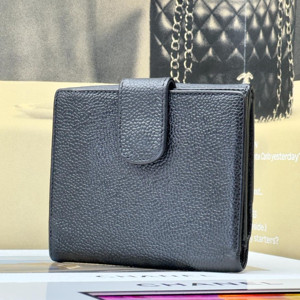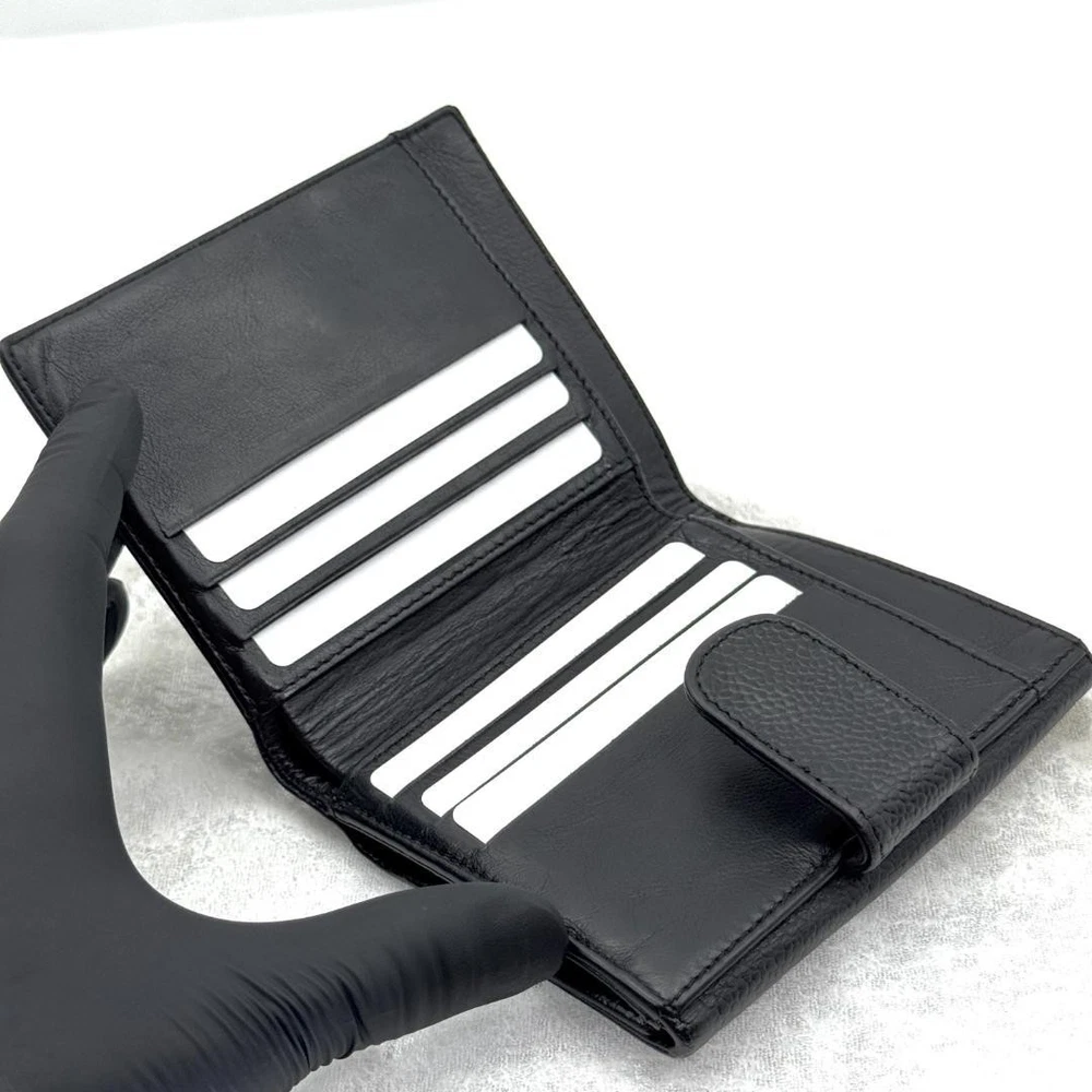 Absolutely love this compact wallet! The caviar leather feels so durable and luxurious, and it fits everything I need without being bulky. The strap is super handy for quick outings. It's in fantastic condition—looks brand new and the snap works perfectly. A total classic that I'll use for years!