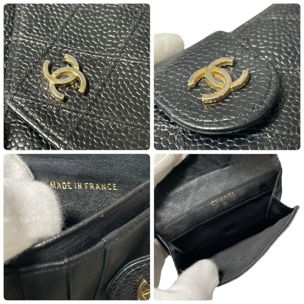 Chanel Bifold Wallet Black Leather Caviar Skin Key Features - **Product Description:** CHANEL bifold wallet in black leather with caviar skin finish. Authentic and brand-new, never used. - **Features:** Color: Black Material: Leather (Caviar Skin) Size: approx. 10cm (H) x 11cm (W) x 1cm (D) - **Condition:** Grade A: Unused, excellent condition, comparable to store stock. - **Item Specifics:** Brand: CHANEL Type: Wallet Material: Leather Color: Black Size: 10cm x 11cm x 1cm Specifications Brand Chanel Country Japan Product Description Description Thank you for your interest. This item is not new, but a used item that was given away. Please check the photos for the condition of the item. Please understand that the condition of the item is subjective and the standard of evaluation and feeling may vary from person to person, so please be aware that this is a used item before bidding. Please check the photos for the condition of the item, such as scratches and stains. To prevent problems, please feel free to contact us if you have any questions about the size or other details of the item. We will be happy to adjust the price. We will do our best to ship your order as soon as possible. We will do our best to ship as soon as possible, but there may be delays during the busy harvest season. Remarks All the products we sell are obtained and sold by pawn shops that are authorized brands, so all the products we handle have been authenticated to meet our strict standards for authenticity, so please buy with confidence. Payment Supports managed payments Please pay within 5 days after auction is finished. About Us We are located in Japan. It's our pleasure to make you happy by proposing our recommend item. If you have any questions or request about items, please feel free to ask us. International Buyers - Please Note: -Importduties, taxes, and charges are not included in the item price or shipping charges. These charges are the buyer's responsibility. -Please check with your country's customs office to determine what these additional costs will be prior to bidding/buying. -These charges are normally collected by the delivering freight (shipping) company or when you pick the item up - do not confuse them for additional shipping charges. -We do not mark merchandise values below value or mark items as - gifts - The US and International government regulations prohibit such behavior. Thank you for your understanding