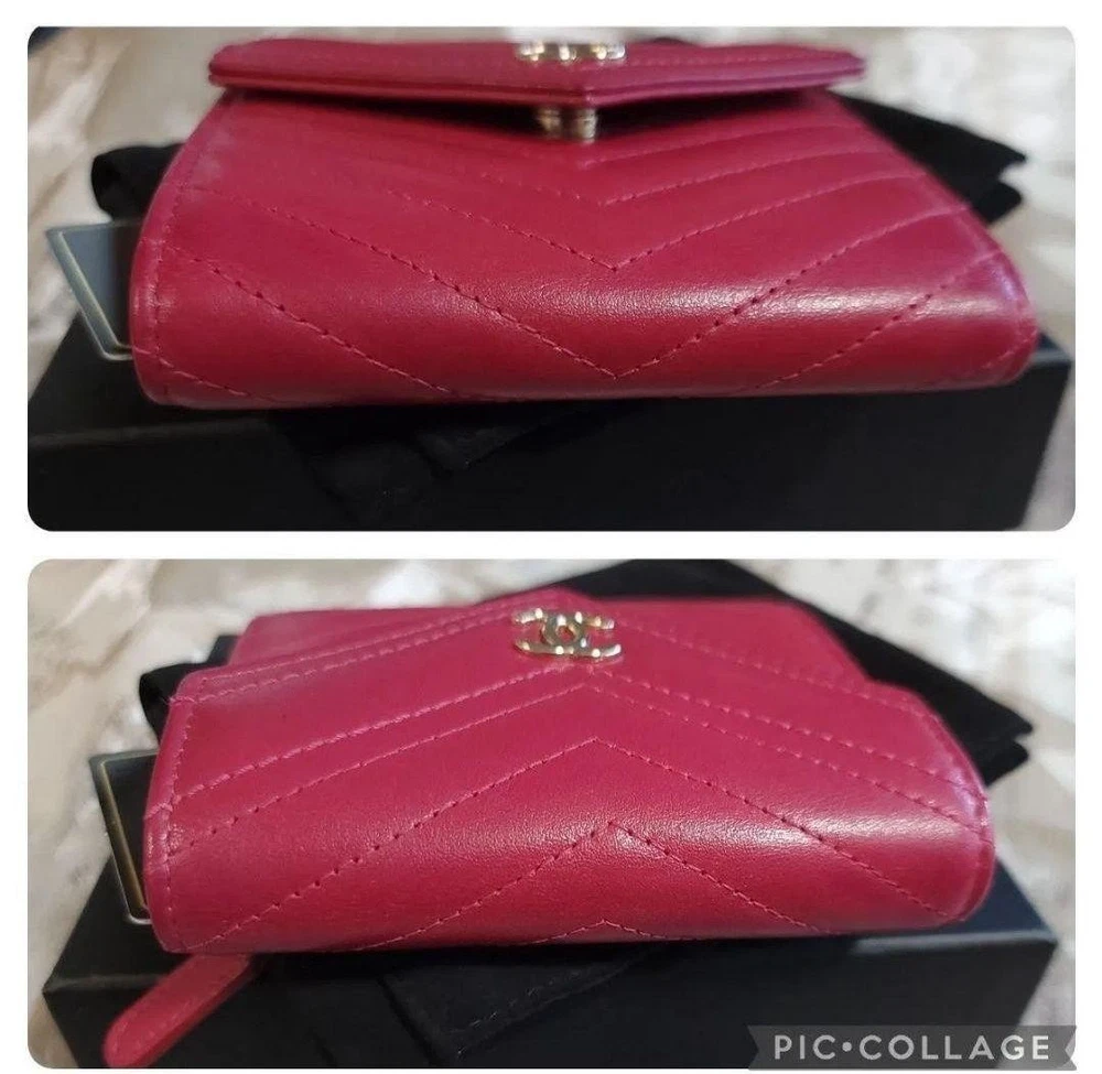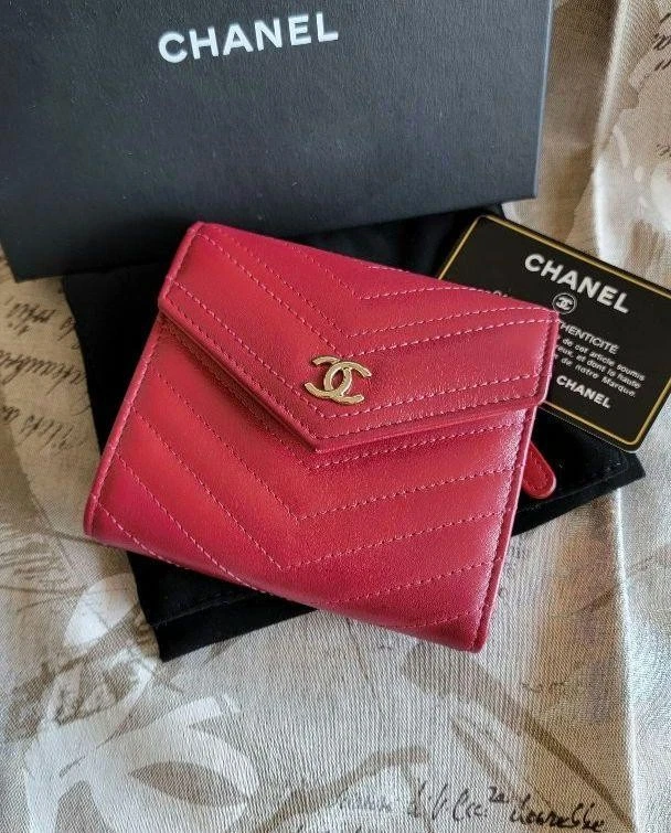 Chanel Chevron V-Stitched Small Flap Wallet Key Features Chanel Small Foldable Wallet - Chevron V Stitch Design This authentic Chanel wallet was purchased at a domestic Chanel boutique. Featuring the iconic Chevron V stitch pattern, it exudes elegance and sophistication. The burgundy color with gold hardware adds a luxurious touch. Despite minor signs of use, the wallet remains in excellent condition with no significant damage. Small scratches are present on the snap button and Coco mark, but they do not affect functionality. The leather coin pocket is well-maintained, with a secure snap and smooth zipper. Includes one bill compartment, one coin pocket, two outside slip pockets, and six card slots. Dimensions: 10cm x 12.5cm x 2.5cm. Comes with original box, dust bag, serial sticker, and guarantee card. Item Specifics: - Brand: Chanel - Model: Small Foldable Wallet - Material: Lambskin, Caviar Leather, Calfskin - Color: Burgundy - Style: Compact Wallet, Fold Wallet Specifications Brand Chanel Country Japan Product Description Description Thank you for your interest. This item is not new, but a used item that was given away. Please check the photos for the condition of the item. Please understand that the condition of the item is subjective and the standard of evaluation and feeling may vary from person to person, so please be aware that this is a used item before bidding. Please check the photos for the condition of the item, such as scratches and stains. To prevent problems, please feel free to contact us if you have any questions about the size or other details of the item. We will be happy to adjust the price. We will do our best to ship your order as soon as possible. We will do our best to ship as soon as possible, but there may be delays during the busy harvest season. Remarks All the products we sell are obtained and sold by pawn shops that are authorized brands, so all the products we handle have been authenticated to meet our strict standards for authenticity, so please buy with confidence. Payment Supports managed payments Please pay within 5 days after auction is finished. About Us We are located in Japan. It's our pleasure to make you happy by proposing our recommend item. If you have any questions or request about items, please feel free to ask us. International Buyers - Please Note: -Importduties, taxes, and charges are not included in the item price or shipping charges. These charges are the buyer's responsibility. -Please check with your country's customs office to determine what these additional costs will be prior to bidding/buying. -These charges are normally collected by the delivering freight (shipping) company or when you pick the item up - do not confuse them for additional shipping charges. -We do not mark merchandise values below value or mark items as - gifts - The US and International government regulations prohibit such behavior. Thank you for your understanding