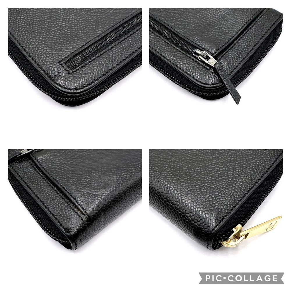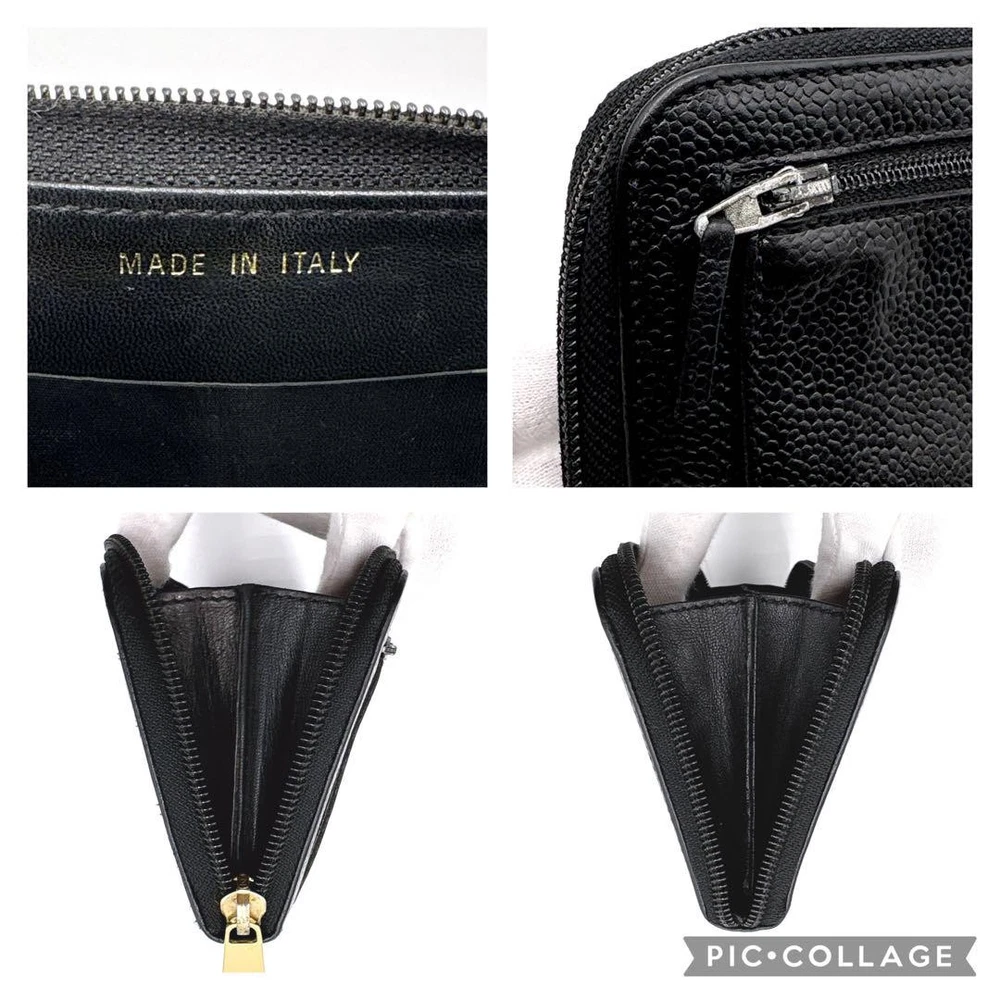 Chanel Coco Mark Caviar Skin Wallet Authentic Verified Used Key Features - Authentic CHANEL Coco Mark Caviar Leather Long Wallet - Features a round zipper, gold hardware, and card case with serial seal - Color: Black; Material: Leather - Dimensions: approximately 3.9 inches (10cm) in height, 7.5 inches (19cm) in width, and 1 inch (2.5cm) in depth - Condition: Shows minor wrinkles and impressions from use, but no noticeable scratches or stains, suitable for long-term use - Interior: No significant scratches or stains; includes 1 coin pocket, 4 card pockets, and 4 open pockets - No accessories are included unless noted in the title or product description - Authenticity verified; genuine product guaranteed - Immediate purchase approval offered; buy with confidence - Please ask questions before purchasing if needed Specifications Brand Chanel Country Japan Product Description Item Title Chanel Coco Mark Caviar Skin Wallet Payment Supports managed payments Please pay within 5 days after auction is finished. About Us We are located in Japan. It's our pleasure to make you happy by proposing our recommend item. If you have any questions or request about items, please feel free to ask us. International Buyers - Please Note: -Import duties, taxes, and charges are not included in the item price or shipping charges. These charges are the buyer's responsibility. -Please check with your country's customs office to determine what these additional costs will be prior to bidding/buying. -These charges are normally collected by the delivering freight (shipping) company or when you pick the item up - do not confuse them for additional shipping charges. -We do not mark merchandise values below value or mark items as - gifts - The US and International government regulations prohibit such behavior. Thank you for your understanding.