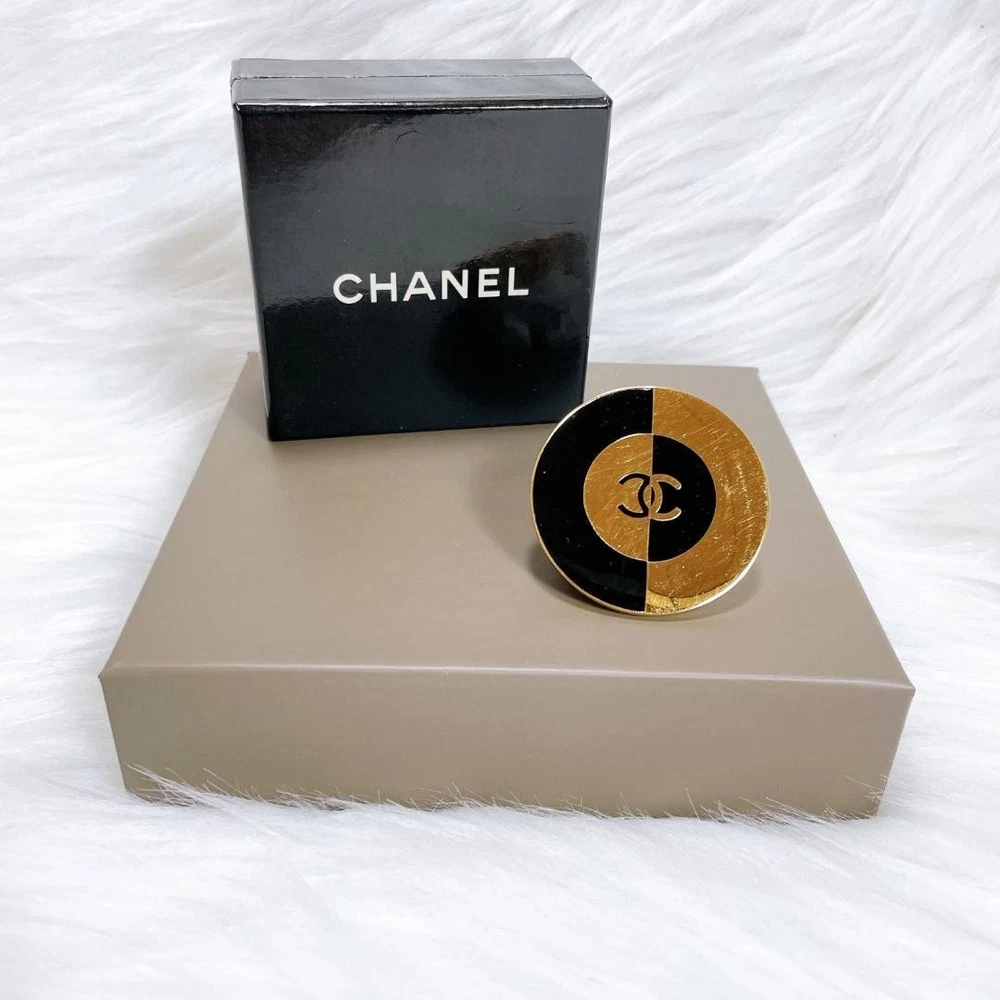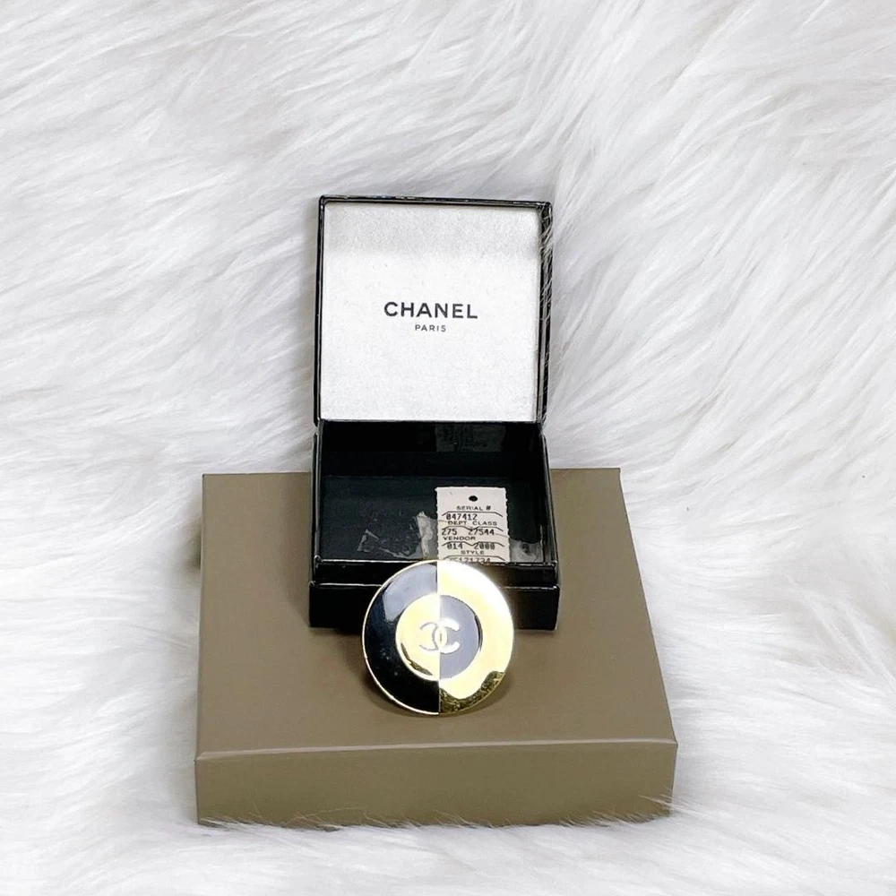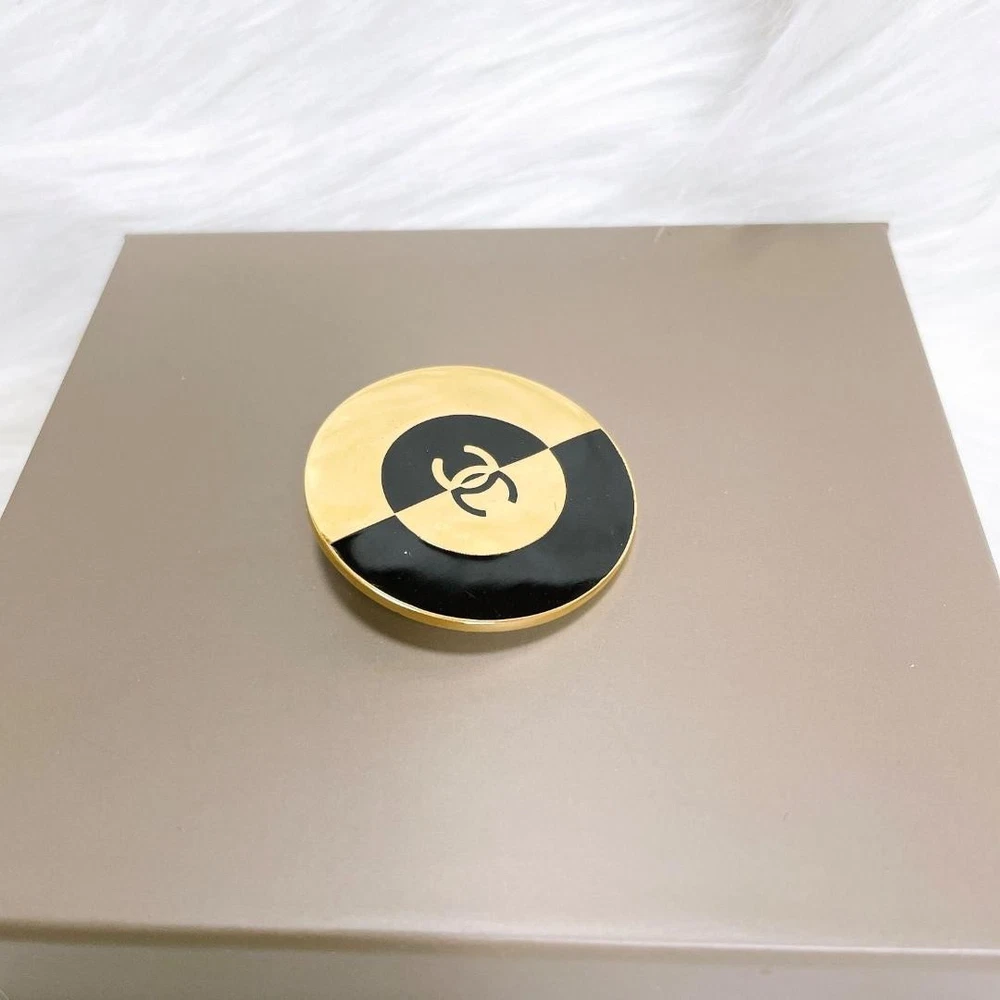 1. This vintage Chanel brooch is absolutely stunning! The gold and black bicolor design is timeless and elegant, perfect for adding a touch of luxury to any outfit. At 1.57 inches, it’s the ideal size—noticeable but not overpowering. The slight signs of wear give it character, and it comes with the original box, which is a nice bonus. A must-have for any Chanel collector or fashion lover!