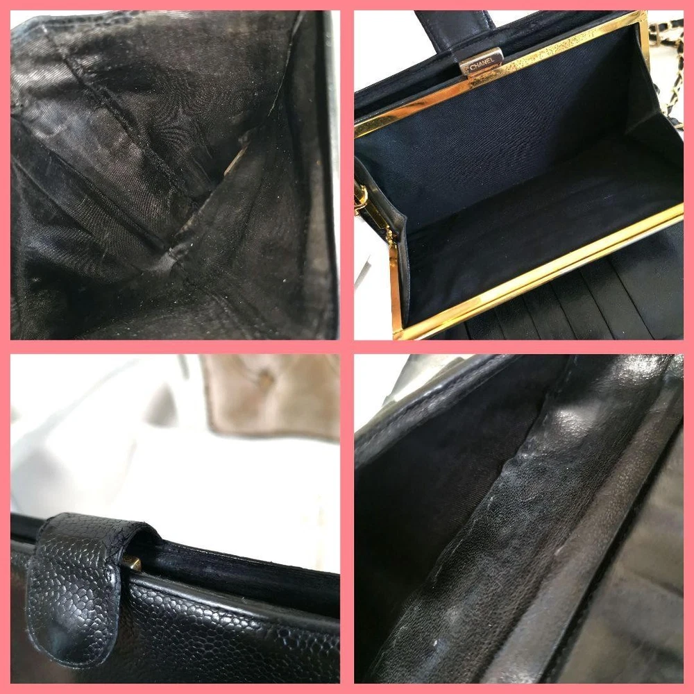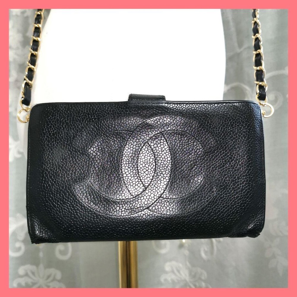 Rare CHANEL Coco Mark Clasp Long Wallet Leather Black w/ Guarantee Seal F/S Description CHANEL Caviar skin long wallet chain wallet Color: Black (gold metal fittings) Material: caviar skin leather Size: Approximately H10.3 x W17 x D2cm Specifications: Bill compartment x 1, coin purse x 1, card slot x 6, pocket x 2 Accessories: External chain strap, manual, envelope Serial: Guarantee seal included A popular vintage long wallet with an impressive large here mark. This is a classy item with gold hardware that stands out against the highest quality caviar skin. Externally repaired and in good condition. You can also use it as a chain wallet by wearing it diagonally. Thank you very much for visiting my auction. Language: Japanese Please judge with a photograph. Please have a question I want to do a good deal Payment I accept PAYPAL Payoneer Please make the payment within 5 days after the end of auction. Shipping Worldwide Shipping: Economy shipping, Japan Post, with tracking number EMS+20$ (insurance &tracking number 3-7 days to USA.) Terms of Sale If you would like to know more about this item, please contact me before bidding. Items will be sent out within 4 business days after the payment received. When there is a different problem from the indicated contents, please tell me about it within two week. I accept returns only if items did not match the description. Buyer pays return shipping. About Us Return is accepted if only the item is different from item's description. Thank you for looking!!! International Buyers - Please Note: ・Import duties, taxes and charges are not included in the item price or shipping charges. These charges are the buyer’s responsibility. ・Please check with your country’s customs office to determine what these additional costs will be prior to bidding/buying. ・These charges are normally collected by the delivering freight (shipping) company or when you pick the item up - do not confuse them for additional shipping charges. ・We do not mark merchandise values below value or mark items as “gifts” - US and International government regulations prohibit such behavior.
