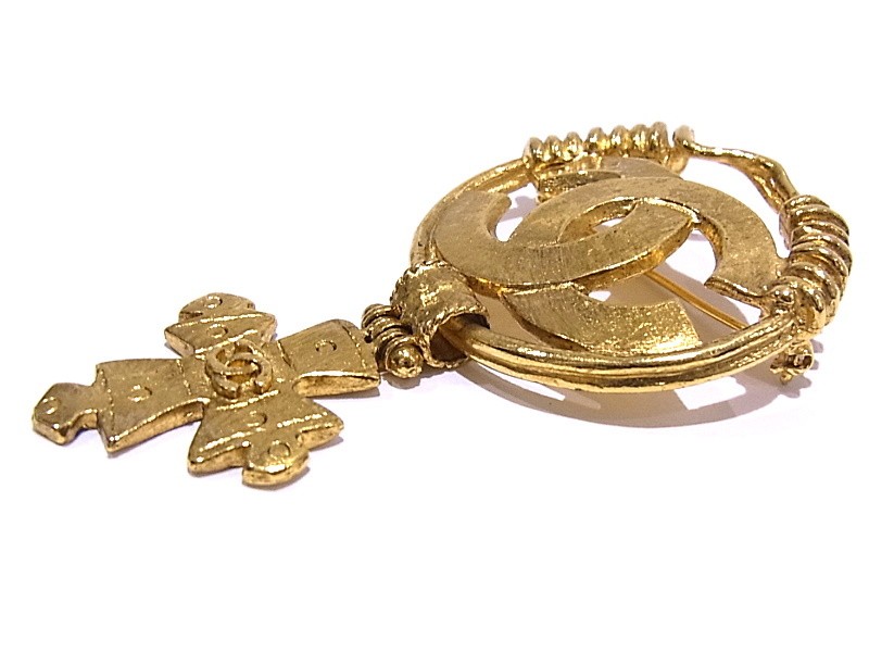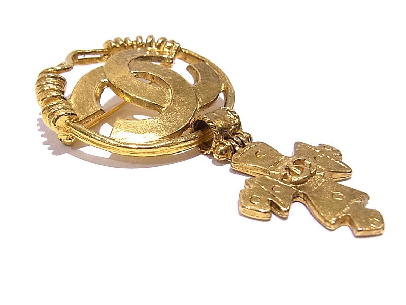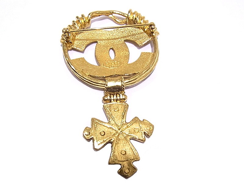 $ 1247.4CHANEL Oval Brooch Tiger Eye Metal Coco Mark 95A 697121