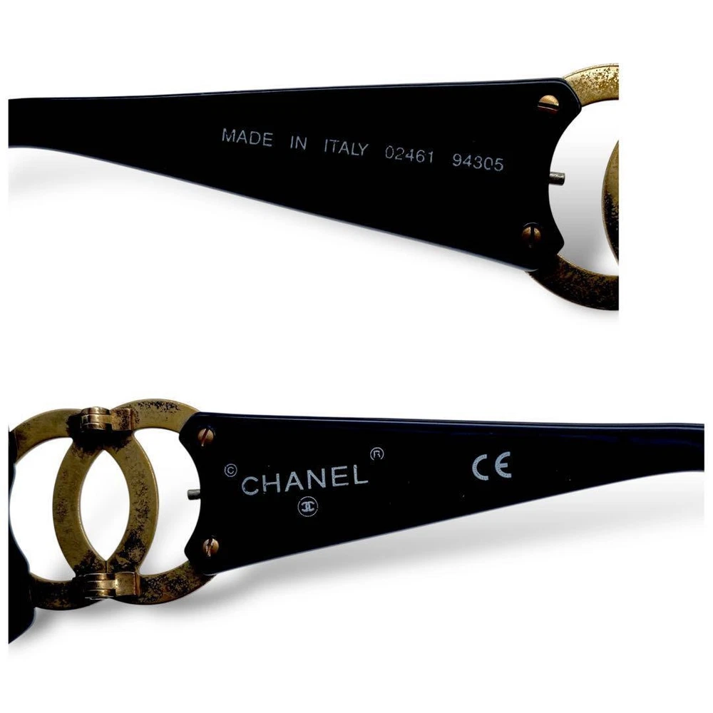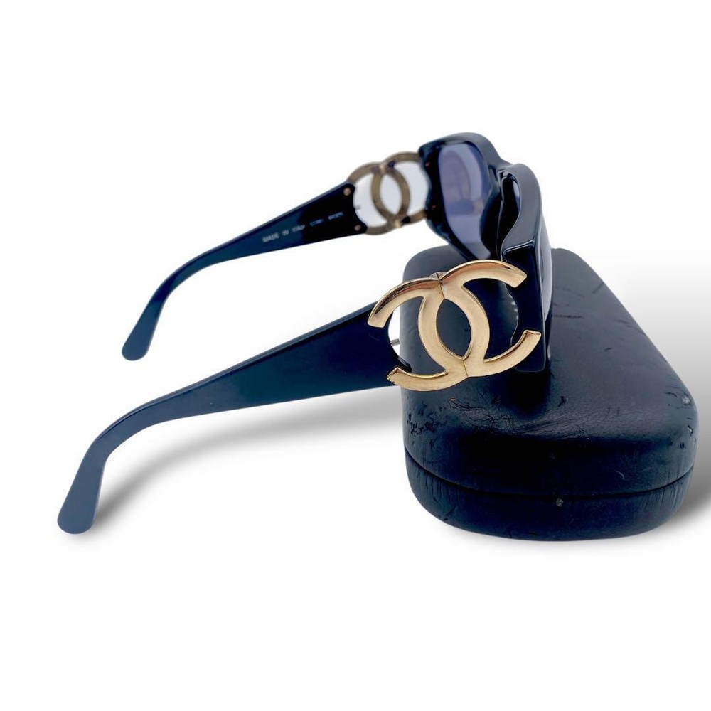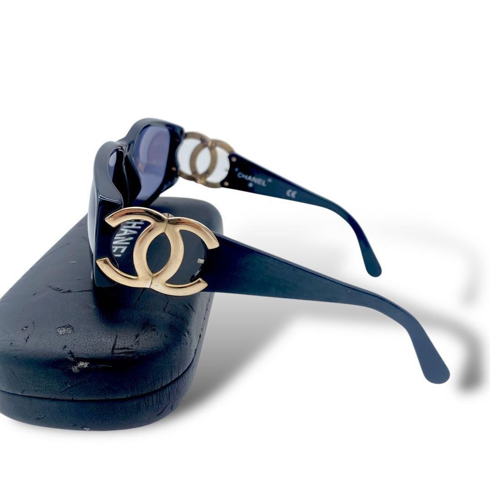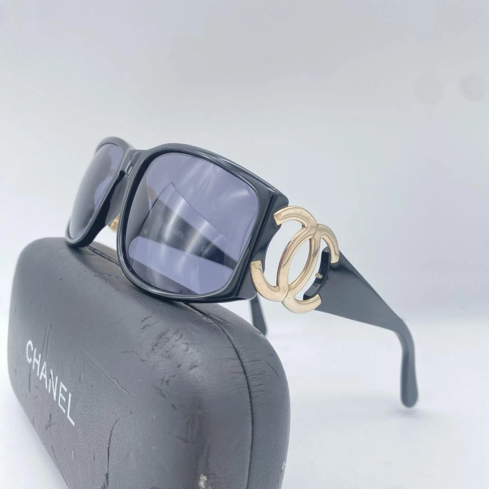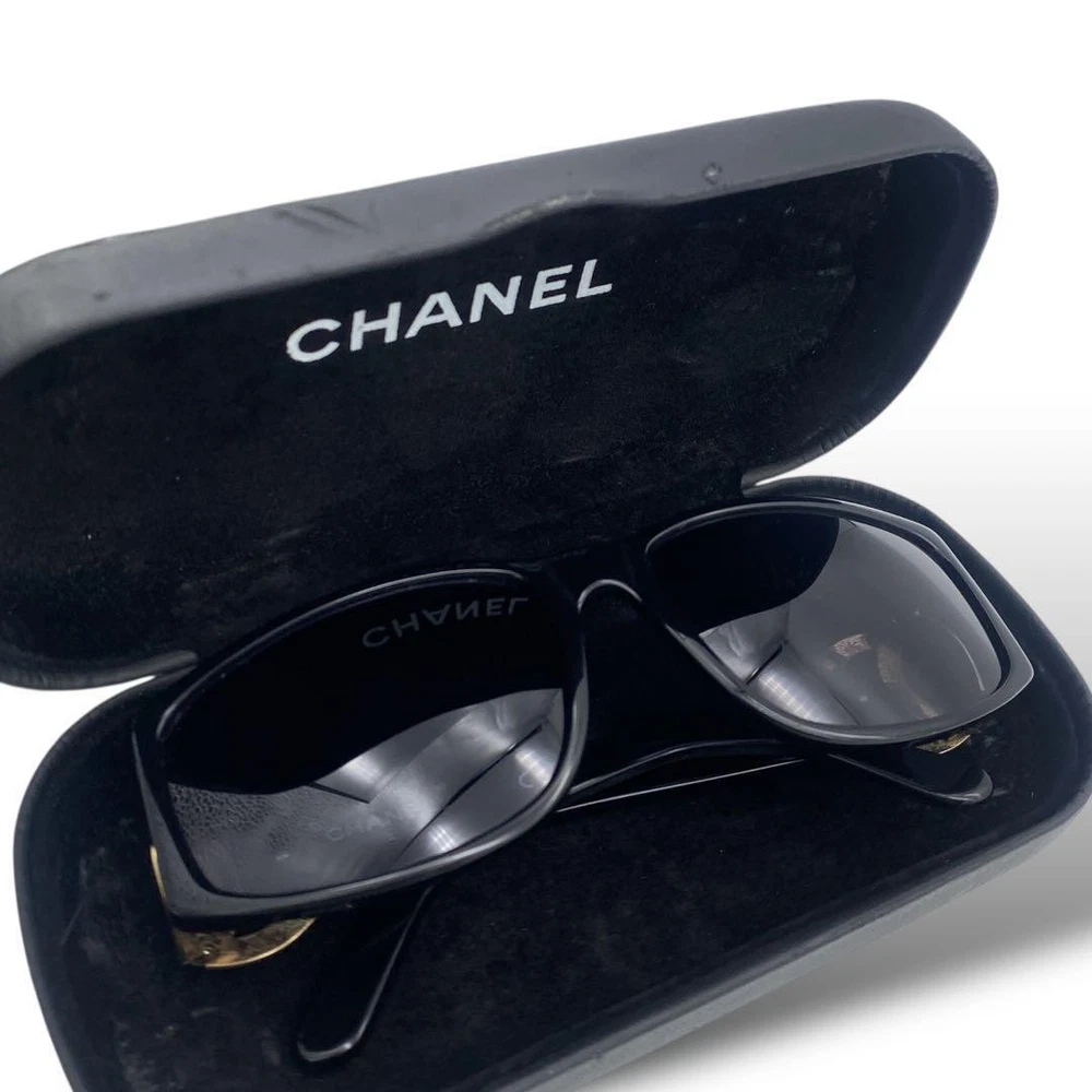 Chanel Coco Y2K Black Gold Sunglasses with Side Mark & Case