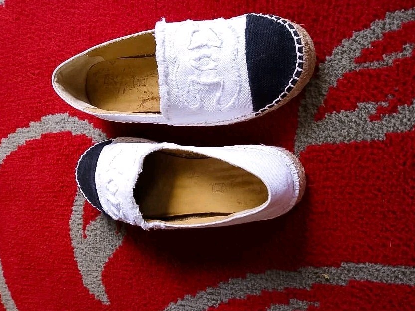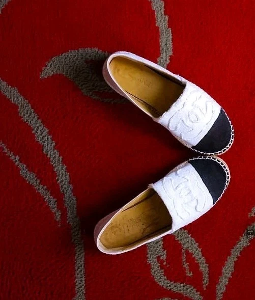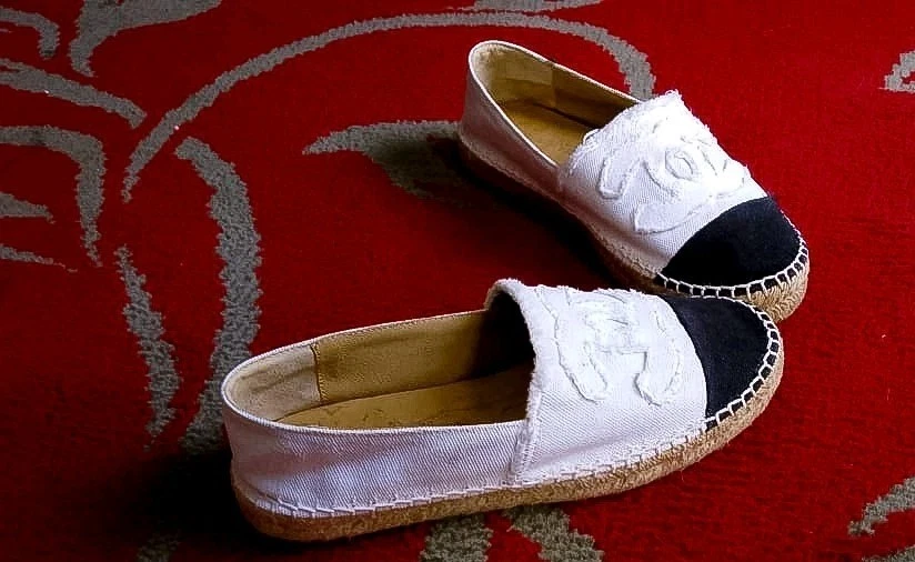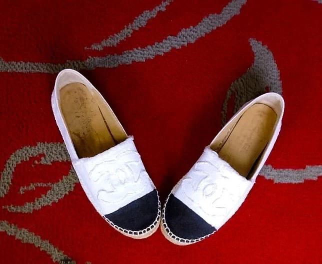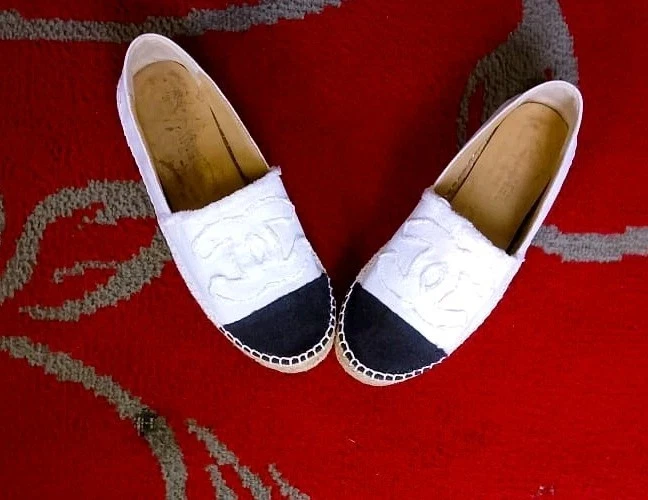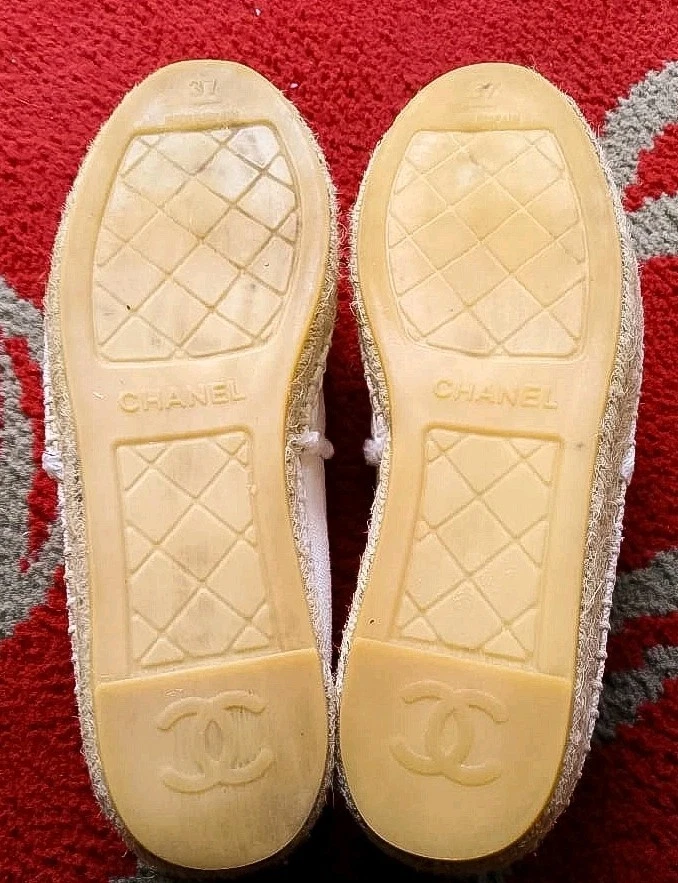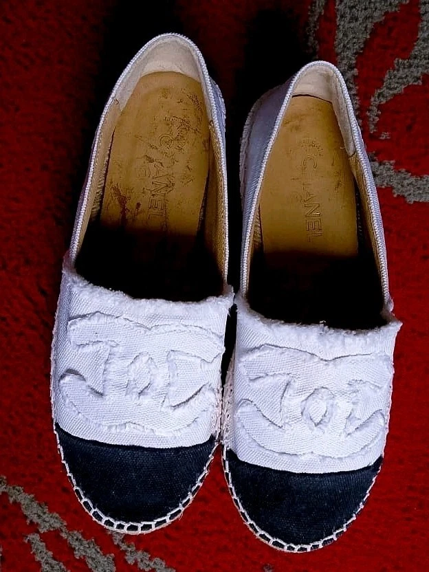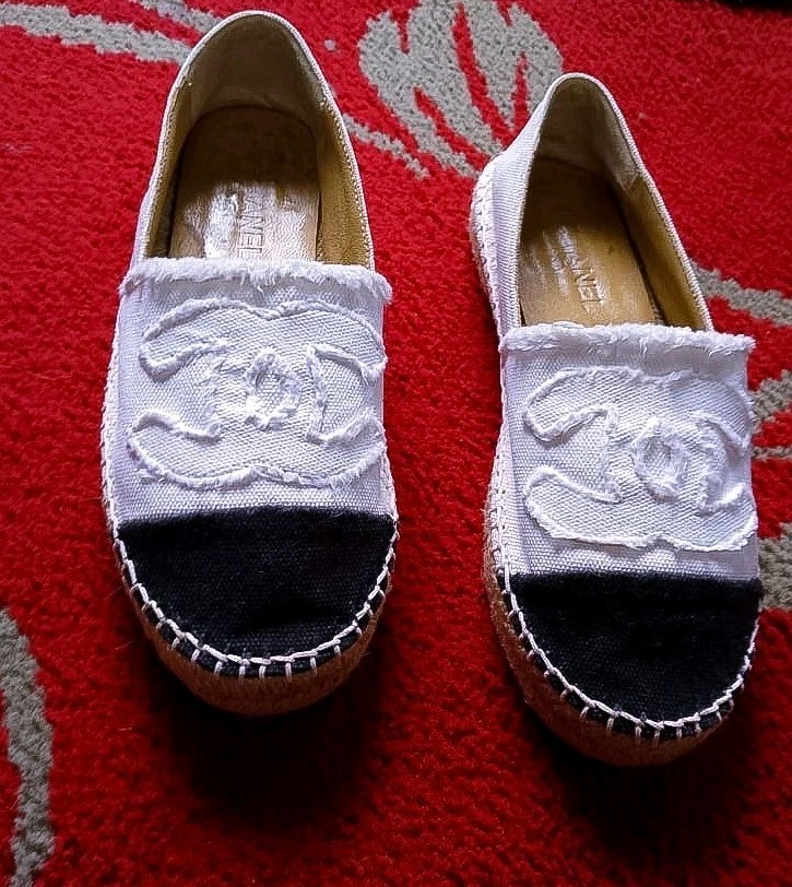 These Chanel espadrilles in beige with black accents are authentic and feature the iconic logo. Made in Spain, they are crafted from canvas with a rubber outsole, making them comfortable and durable for various occasions including travel, activewear, weddings, parties, casual wear, and business events. The slip-on style with a round toe and standard shoe width ensures a convenient and stylish fit for women who appreciate high-quality footwear. Perfect for the summer, fall, and spring seasons, these Chanel espadrilles exude a chic and versatile appeal.