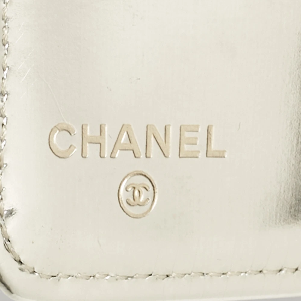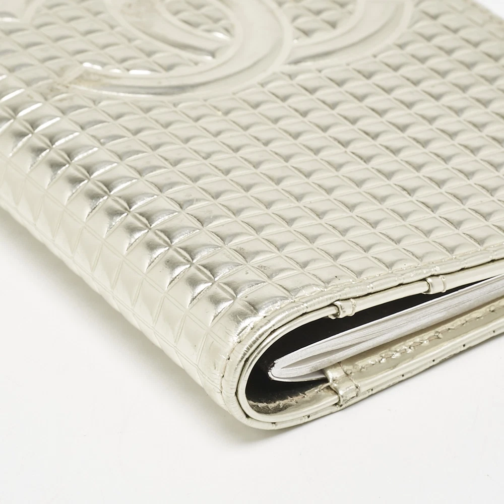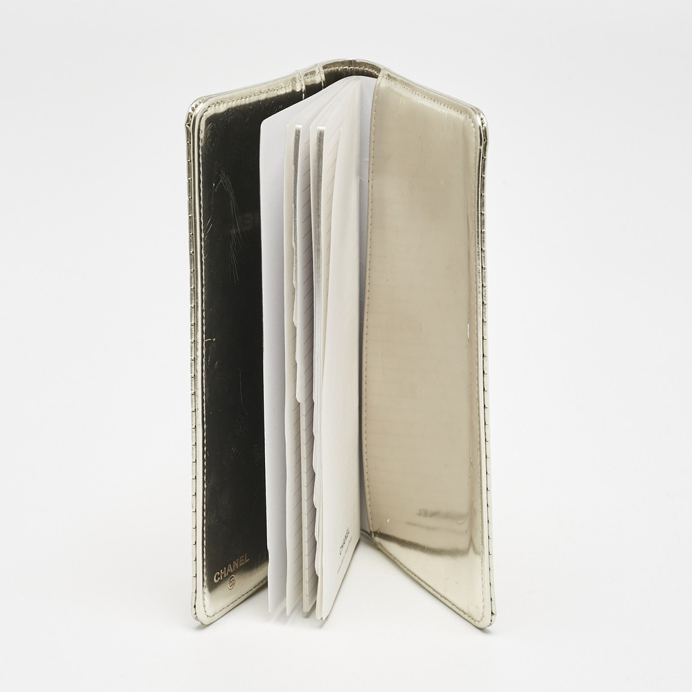 Elevate your style with this exquisite gold wallet, a true testament to sophisticated elegance. Crafted from luxurious metallic laminated leather, this Chanel accessory showcases impeccable Italian craftsmanship. The quilted pattern evokes timeless charm, while its sleek design ensures effortless chic. Inside, enjoy the elegance of premium laminated leather that offers both beauty and durability. Perfect for fashion forward women, this wallet is a staple piece that whispers exclusivity and timeless appeal from the iconic Chanel collection.Certified by The Luxury Closet - This item has gone through a detailed authentication process overseen by our experts. We offer a lifetime guarantee of authenticity on all our items. Import duties, taxes and charges are not included in the item price. These charges are the buyers responsibility. Please check with your country’s customs office to determine what these additional cost will be prior to buying. Our eBay Store About Us Contact Us Add to Favorite Sellers Chanel Gold Choco Bar Quilted Leather Address Book Wallet $506 Elevate your style with this exquisite gold wallet, a true testament to sophisticated elegance. Crafted from luxurious metallic laminated leather, this Chanel accessory showcases impeccable Italian craftsmanship. The quilted pattern evokes timeless charm, while its sleek design ensures effortless chic. Inside, enjoy the elegance of premium laminated leather that offers both beauty and durability. Perfect for fashion forward women, this wallet is a staple piece that whispers exclusivity and timeless appeal from the iconic Chanel collection. Product Details Brand Color Gold Dimensions Height: 17.5 cm, Width: 1.5 cm, Length: 10 cm Material Metallic Leather, Laminated Leather Size Outsole Width Outsole Length Heel Height Includes The Luxury Closet Packaging Certified by The Luxury Closet This item has gone through a detailed authentication process overseen by our experts. We offer a lifetime guarantee of authenticity on all our items. How We Check The in-house team of experts at The Luxury Closet is highly trained to verify the authenticity and the condition of the luxury products. They ensure that only 100% authentic items are put on sale.The evaluation process is unique with its own mix of assessment criteria and differs according to the category. Each item is evaluated based on the following combination of hallmarks, hardware, stitching, symmetry, material, craftsmanship, stamping, codes, hologram stickers, and packaging. Our authenticators also check if the items have been modified or amended (e.g., aftermarket diamonds, replaced batteries, repaired bags, etc.) International Buyers Import duties, taxes and charges are not included in the item price. These charges are the buyers responsibility. Please check with your country’s customs office to determine what these additional cost will be prior to buying.
