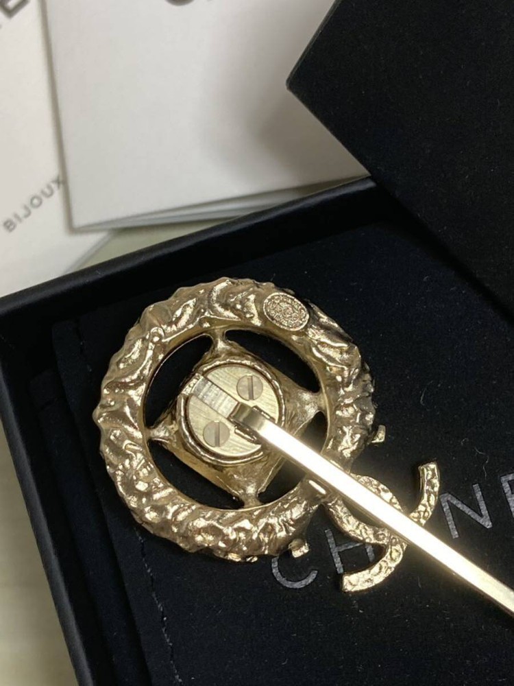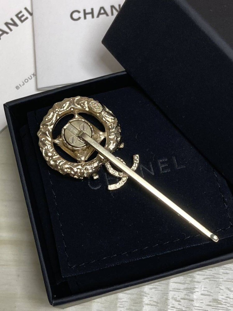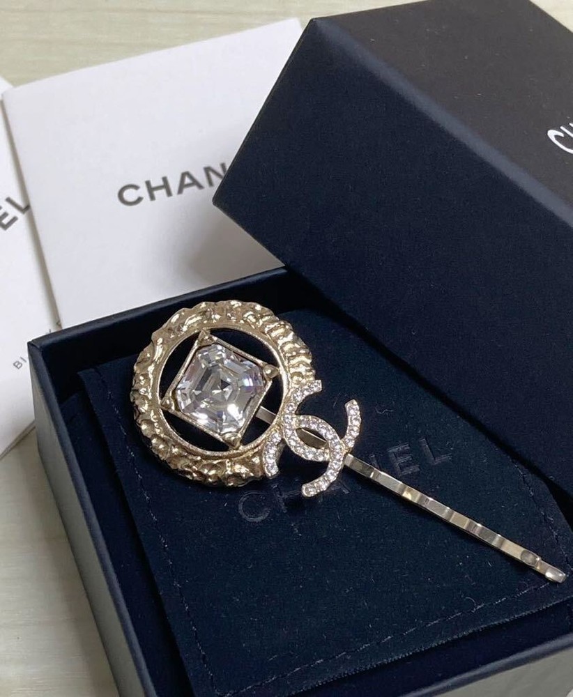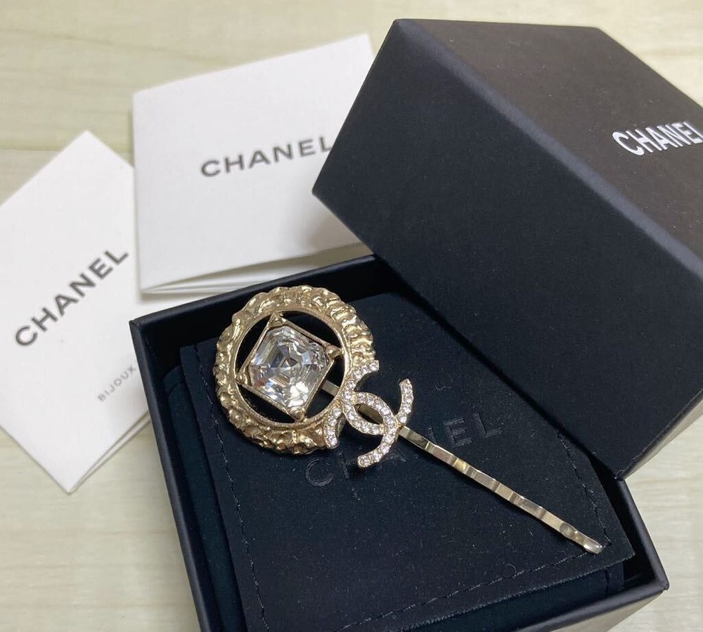 Chanel Gold Coco Mark Rhinestone Decorative Hairpin Accessory