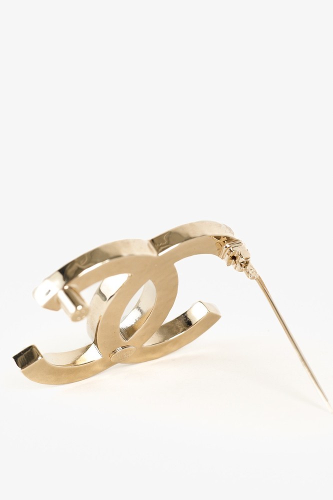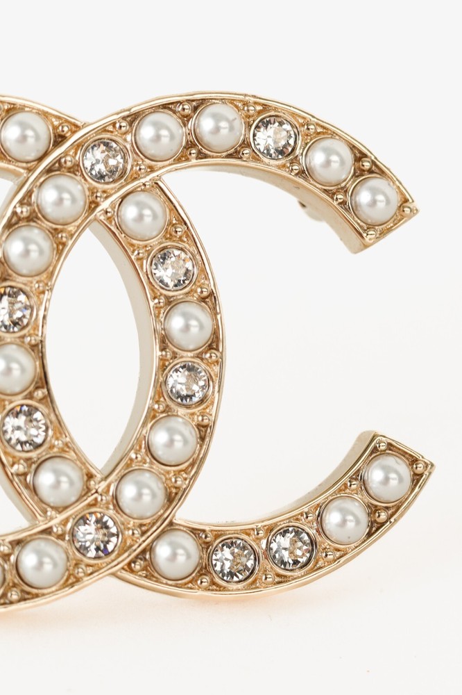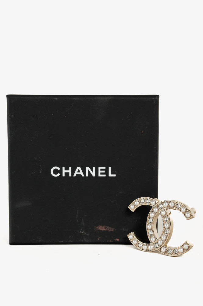 Chanel Gold Pearl Crystal CC Brooch Elegant Statement Piece