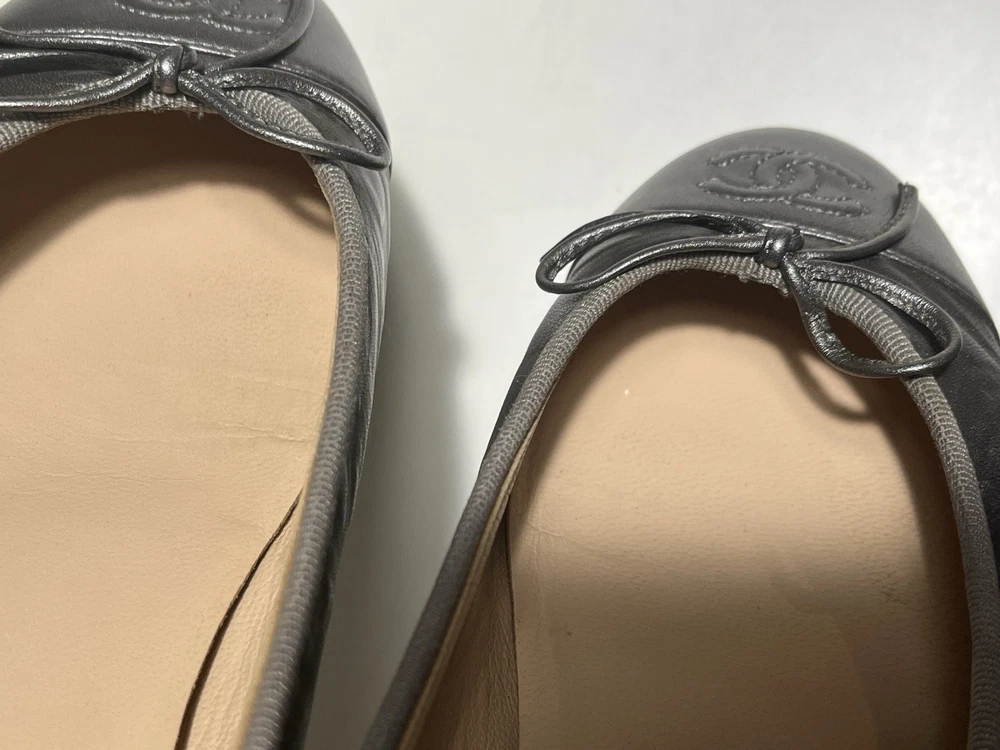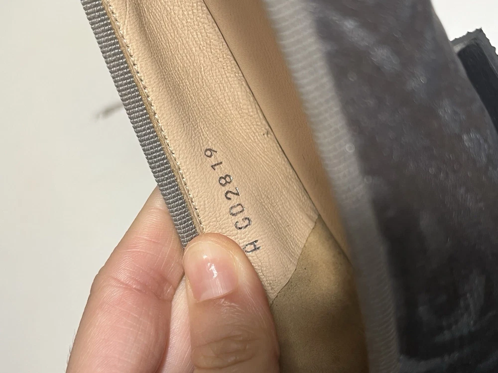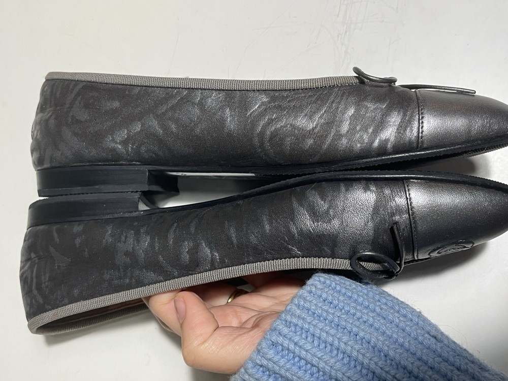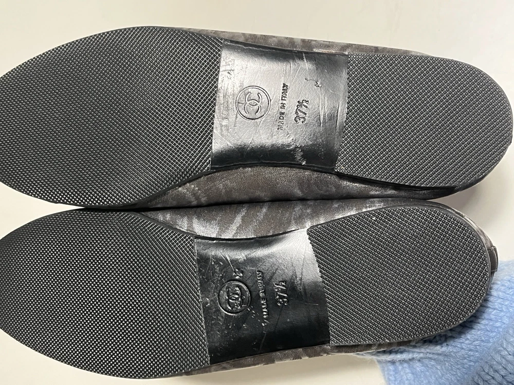 Popular gray lambskin leather. Size 37.5. The pattern is a rose-shaped swirl pattern. Kind of abstract. Authentic. Only shoes. Ship same or next day.