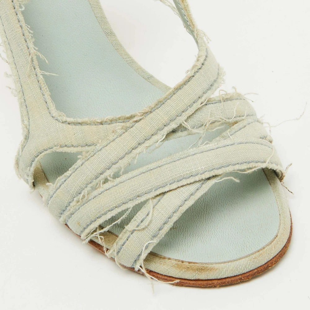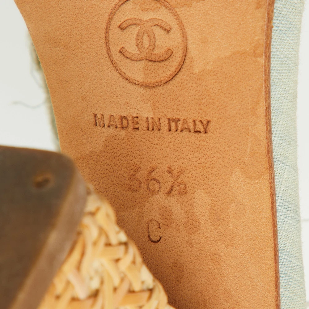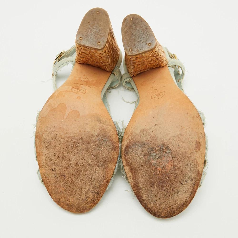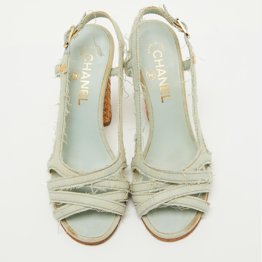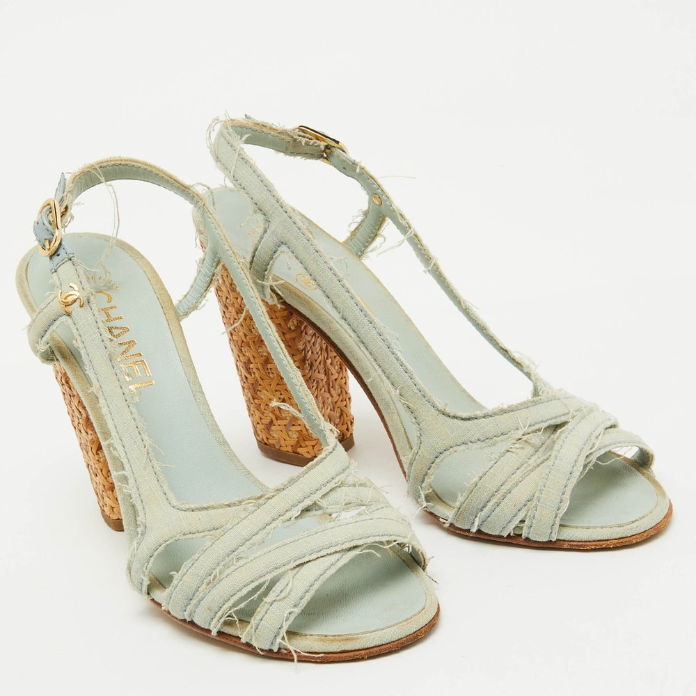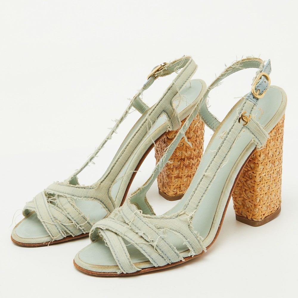 These sandals will frame your feet in an elegant manner. Crafted from quality materials, they display a classy design and comfortable insoles.Certified by The Luxury Closet - This item has gone through a detailed authentication process overseen by our experts. We offer a lifetime guarantee of authenticity on all our items. Import duties, taxes and charges are not included in the item price. These charges are the buyers responsibility. Please check with your country’s customs office to determine what these additional cost will be prior to buying. Our eBay Store About Us Contact Us Add to Favorite Sellers Chanel Light Blue Canvas Strappy Block Heel Slingback Sandals Size 36.5 $284.9 These sandals will frame your feet in an elegant manner. Crafted from quality materials, they display a classy design and comfortable insoles. Product Details Brand Color Blue Dimensions Material Canvas Size 36.5 Outsole Width 8 cm Outsole Length 22 cm Heel Height 10 cm Includes The Luxury Closet Packaging Certified by The Luxury Closet This item has gone through a detailed authentication process overseen by our experts. We offer a lifetime guarantee of authenticity on all our items. How We Check The in-house team of experts at The Luxury Closet is highly trained to verify the authenticity and the condition of the luxury products. They ensure that only 100% authentic items are put on sale.The evaluation process is unique with its own mix of assessment criteria and differs according to the category. Each item is evaluated based on the following combination of hallmarks, hardware, stitching, symmetry, material, craftsmanship, stamping, codes, hologram stickers, and packaging. Our authenticators also check if the items have been modified or amended (e.g., aftermarket diamonds, replaced batteries, repaired bags, etc.) International Buyers Import duties, taxes and charges are not included in the item price. These charges are the buyers responsibility. Please check with your country’s customs office to determine what these additional cost will be prior to buying.