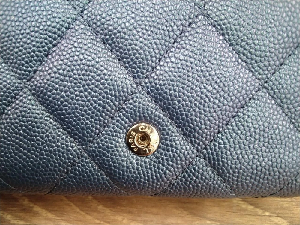 Absolutely love this Chanel wallet! The compact tri-fold design is perfect—fits everything I need without being bulky. The matelassé Aurora leather is gorgeous and feels luxurious. Great craftsmanship, and the stitching is flawless. Fits perfectly in small bags too! Shipping was fast, and the seller provided excellent service. Highly recommend for anyone looking for a stylish yet practical wallet. A true Chanel classic!