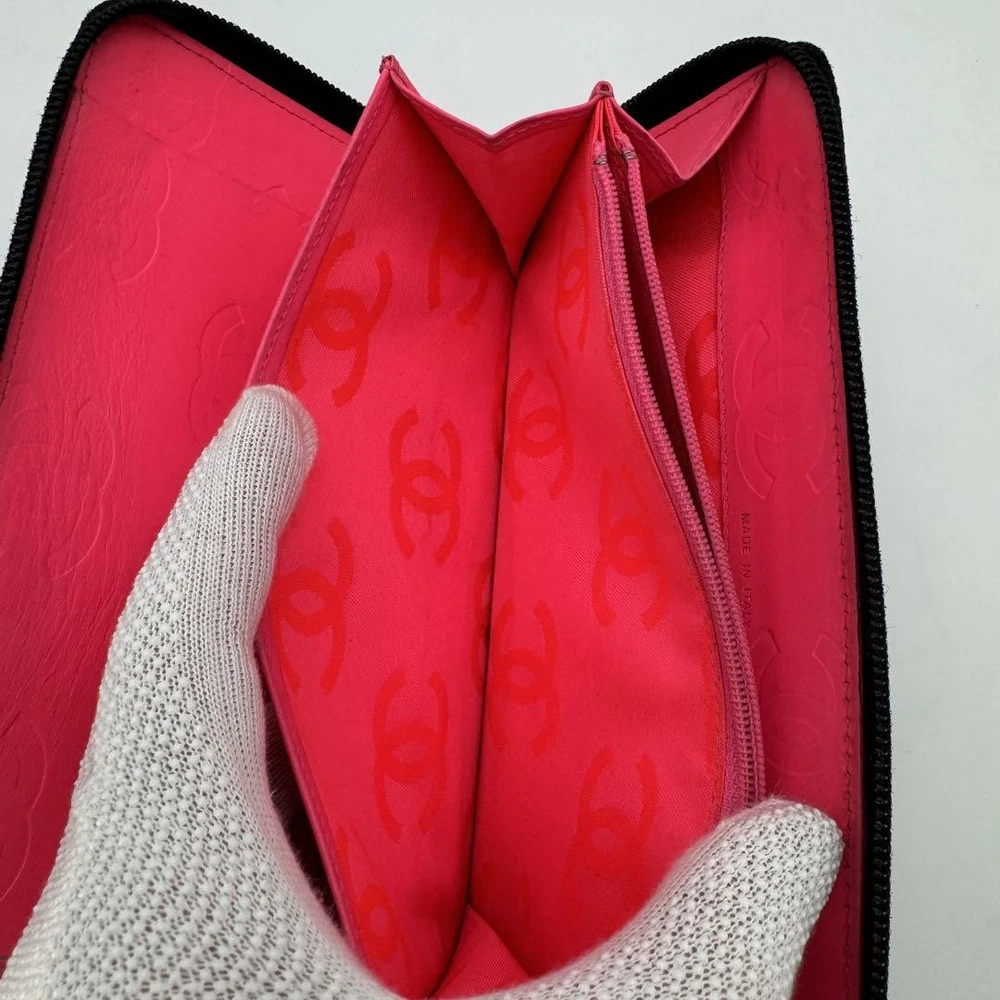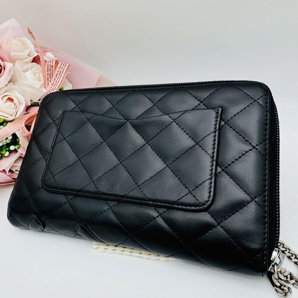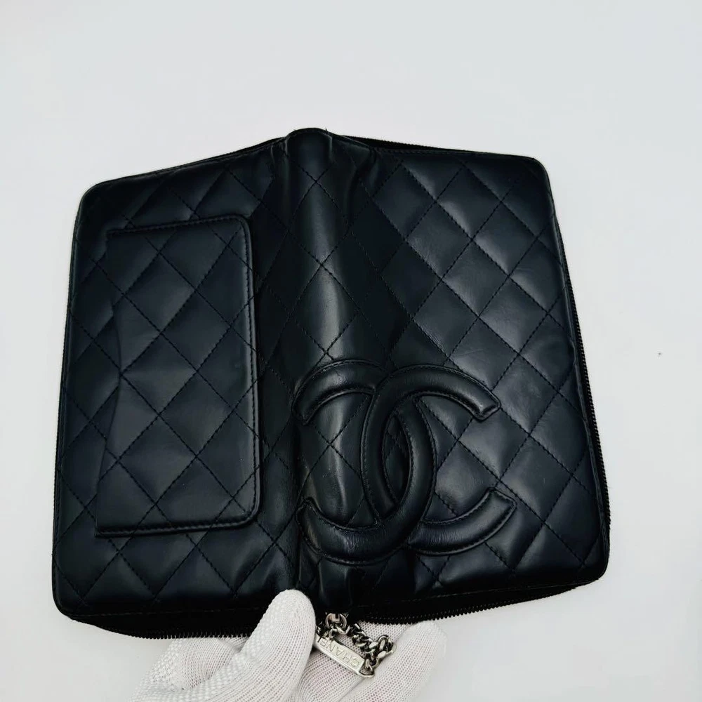 This Chanel Cambon wallet is a stunning blend of elegance and function! The beige lambskin feels luxurious, and the gold-silver hardware adds a chic touch. It’s surprisingly spacious with multiple card slots, bill compartments, and a handy coin pocket. Though it has minor wear, it’s in great shape overall. Perfect for everyday use while keeping that high-end Chanel charm. Love how it elevates any outfit!