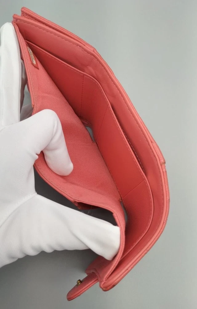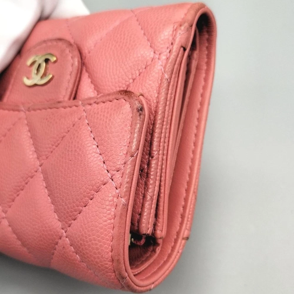This Chanel Matelasse Small Flap Wallet is absolutely stunning! The craftsmanship is impeccable, and the leather feels luxurious. Perfect size for everyday use—fits cards, cash, and even a phone. The classic quilted design adds such elegance. Super fast shipping from Japan, and the seller was very responsive. A must-have for any Chanel lover!