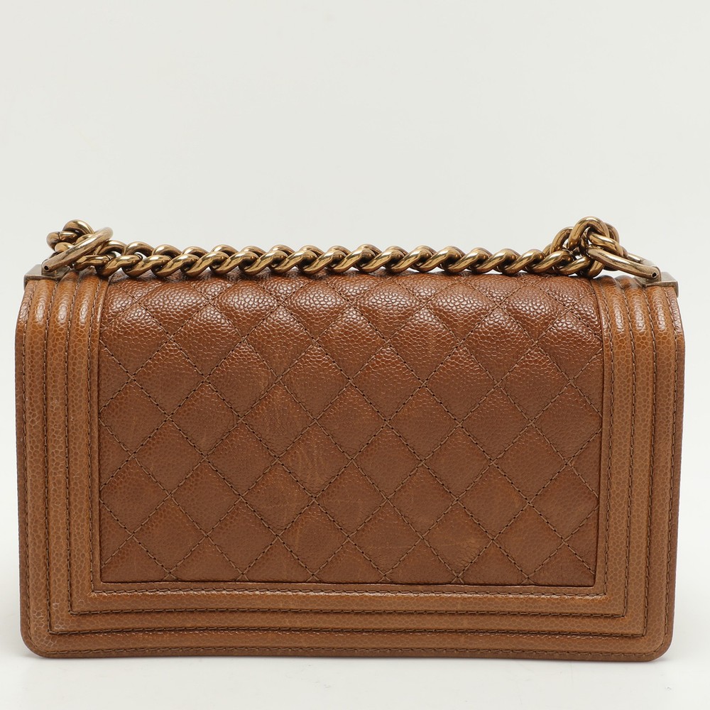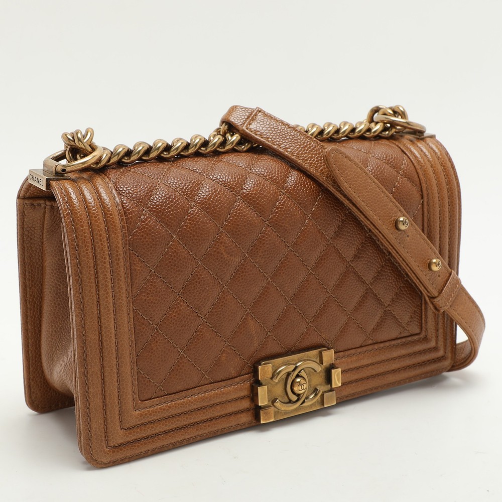With flawless craftsmanship, immense style quotient, and an air of elegance, this Chanel bag has it all Stitched to perfection, the handbag is made using only prime quality materials so that it lasts you forever. With signature elements displayed on the bag, it will add a refined touch to your ensemble.Certified by The Luxury Closet - This item has gone through a detailed authentication process overseen by our experts. We offer a lifetime guarantee of authenticity on all our items. Import duties, taxes and charges are not included in the item price. These charges are the buyers responsibility. Please check with your country’s customs office to determine what these additional cost will be prior to buying. Our eBay Store About Us Contact Us Add to Favorite Sellers Chanel Brown Quilted Leather Medium Boy Flap Bag $4536.4 With flawless craftsmanship, immense style quotient, and an air of elegance, this Chanel bag has it all Stitched to perfection, the handbag is made using only prime quality materials so that it lasts you forever. With signature elements displayed on the bag, it will add a refined touch to your ensemble. Product Details Brand Color Brown Dimensions Height: 15 cm, Width: 7 cm, Length: 25 cm Material Leather Size Medium Outsole Width Outsole Length Heel Height Includes Original Dustbag, Authenticity Card, Original Box, Info Booklet Certified by The Luxury Closet This item has gone through a detailed authentication process overseen by our experts. We offer a lifetime guarantee of authenticity on all our items. How We Check The in-house team of experts at The Luxury Closet is highly trained to verify the authenticity and the condition of the luxury products. They ensure that only 100% authentic items are put on sale.The evaluation process is unique with its own mix of assessment criteria and differs according to the category. Each item is evaluated based on the following combination of hallmarks, hardware, stitching, symmetry, material, craftsmanship, stamping, codes, hologram stickers, and packaging. Our authenticators also check if the items have been modified or amended (e.g., aftermarket diamonds, replaced batteries, repaired bags, etc.) International Buyers Import duties, taxes and charges are not included in the item price. These charges are the buyers responsibility. Please check with your country’s customs office to determine what these additional cost will be prior to buying.
