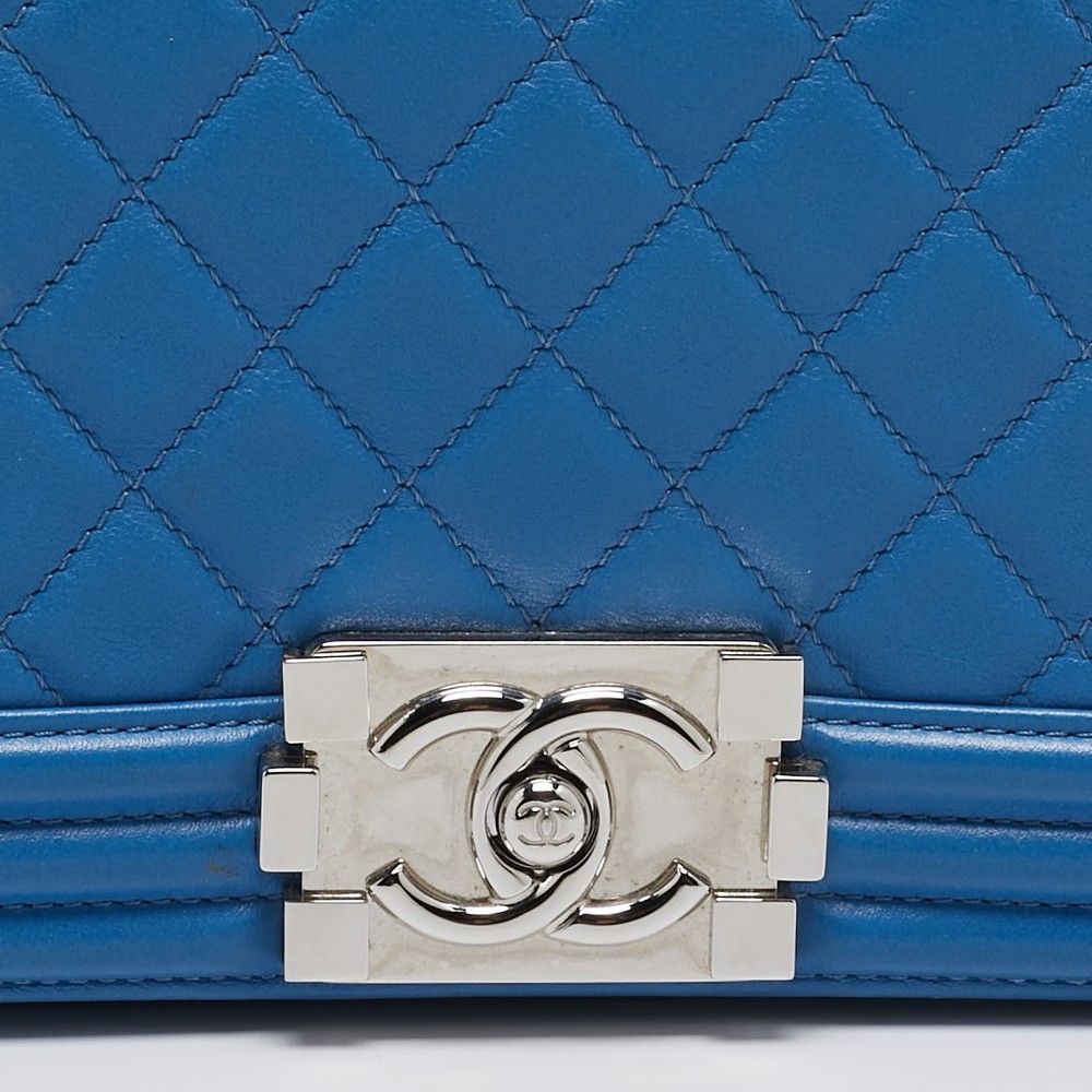 Chanel’s Boy Flap bag in light blue quilted leather is a true icon, blending classic Chanel design with a contemporary edge for a standout look.Certified by The Luxury Closet - This item has gone through a detailed authentication process overseen by our experts. We offer a lifetime guarantee of authenticity on all our items. Import duties, taxes and charges are not included in the item price. These charges are the buyers responsibility. Please check with your country’s customs office to determine what these additional cost will be prior to buying. Our eBay Store About Us Contact Us Add to Favorite Sellers Chanel Light Blue Quilted Leather Medium Boy Flap Bag $3641 Chanel’s Boy Flap bag in light blue quilted leather is a true icon, blending classic Chanel design with a contemporary edge for a standout look. Product Details Brand Color Blue Dimensions Height: 15 cm, Width: 6 cm, Length: 25 cm Material Leather Size Medium Outsole Width Outsole Length Heel Height Includes Authenticity Card, Original Dustbag Certified by The Luxury Closet This item has gone through a detailed authentication process overseen by our experts. We offer a lifetime guarantee of authenticity on all our items. How We Check The in-house team of experts at The Luxury Closet is highly trained to verify the authenticity and the condition of the luxury products. They ensure that only 100% authentic items are put on sale.The evaluation process is unique with its own mix of assessment criteria and differs according to the category. Each item is evaluated based on the following combination of hallmarks, hardware, stitching, symmetry, material, craftsmanship, stamping, codes, hologram stickers, and packaging. Our authenticators also check if the items have been modified or amended (e.g., aftermarket diamonds, replaced batteries, repaired bags, etc.) International Buyers Import duties, taxes and charges are not included in the item price. These charges are the buyers responsibility. Please check with your country’s customs office to determine what these additional cost will be prior to buying.