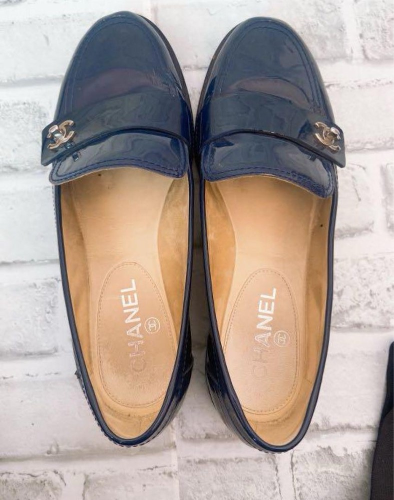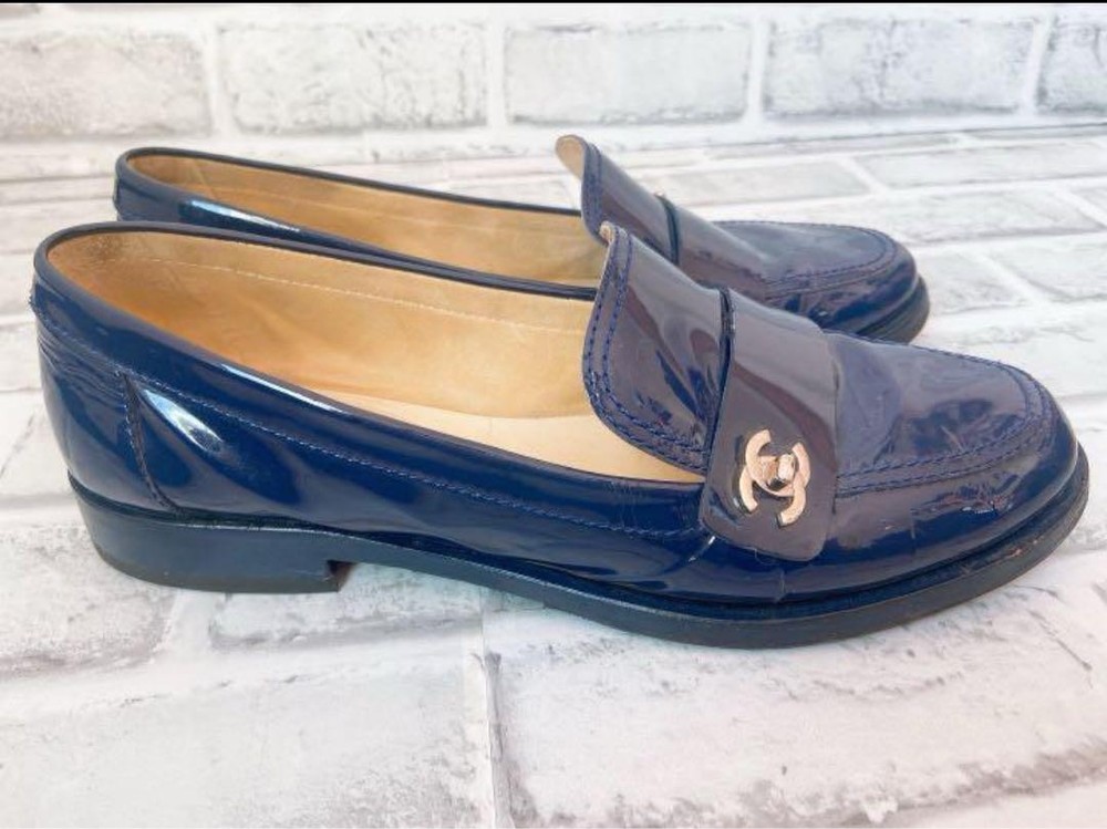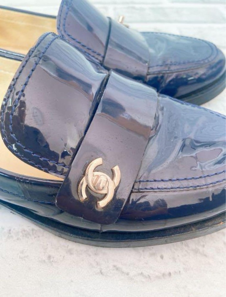 Chanel Navy Blue Enamel Flats Size 39 (US 8.5) Women's Shoes with Silver Logo Description * Brand: Chanel * Size: 39 (Fits like US 8.5, approximately 24.5 cm / 9.6 inches) * Color: Navy Blue * Material: Enamel * Condition: Gently Used * Features: Silver CC logo * Outsole: Rubber (added for protection) * Accessories: None (shoes only) Thank you very much for visiting my auction. Language: Japanese Please judge with a photograph. Please have a question I want to do a good deal Payment I accept PAYPAL Payoneer Please make the payment within 5 days after the end of auction. Shipping Worldwide Shipping: Economy shipping, Japan Post, with tracking number EMS+20$ (insurance &tracking number 3-7 days to USA.) Terms of Sale If you would like to know more about this item, please contact me before bidding. Items will be sent out within 4 business days after the payment received. When there is a different problem from the indicated contents, please tell me about it within two week. I accept returns only if items did not match the description. Buyer pays return shipping. About Us Return is accepted if only the item is different from item's description. Thank you for looking!!! International Buyers - Please Note: ・Import duties, taxes and charges are not included in the item price or shipping charges. These charges are the buyer’s responsibility. ・Please check with your country’s customs office to determine what these additional costs will be prior to bidding/buying. ・These charges are normally collected by the delivering freight (shipping) company or when you pick the item up - do not confuse them for additional shipping charges. ・We do not mark merchandise values below value or mark items as “gifts” - US and International government regulations prohibit such behavior.