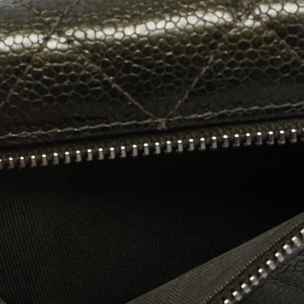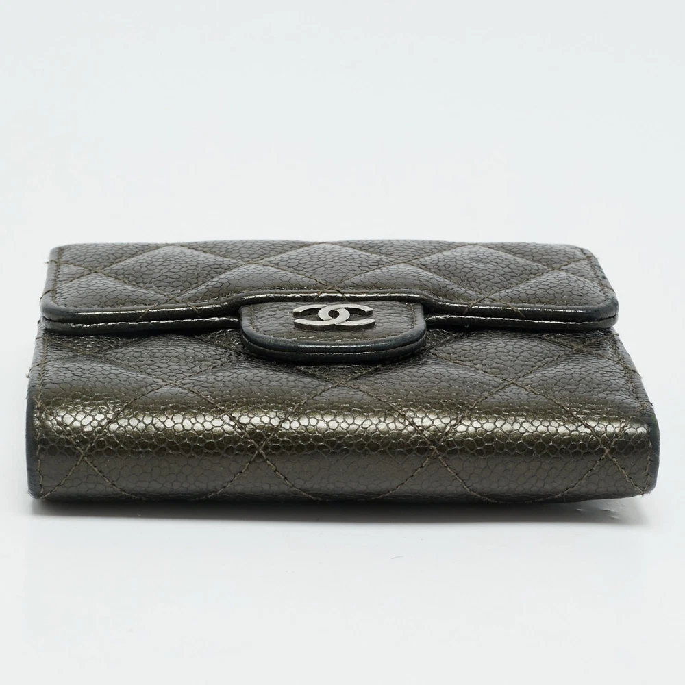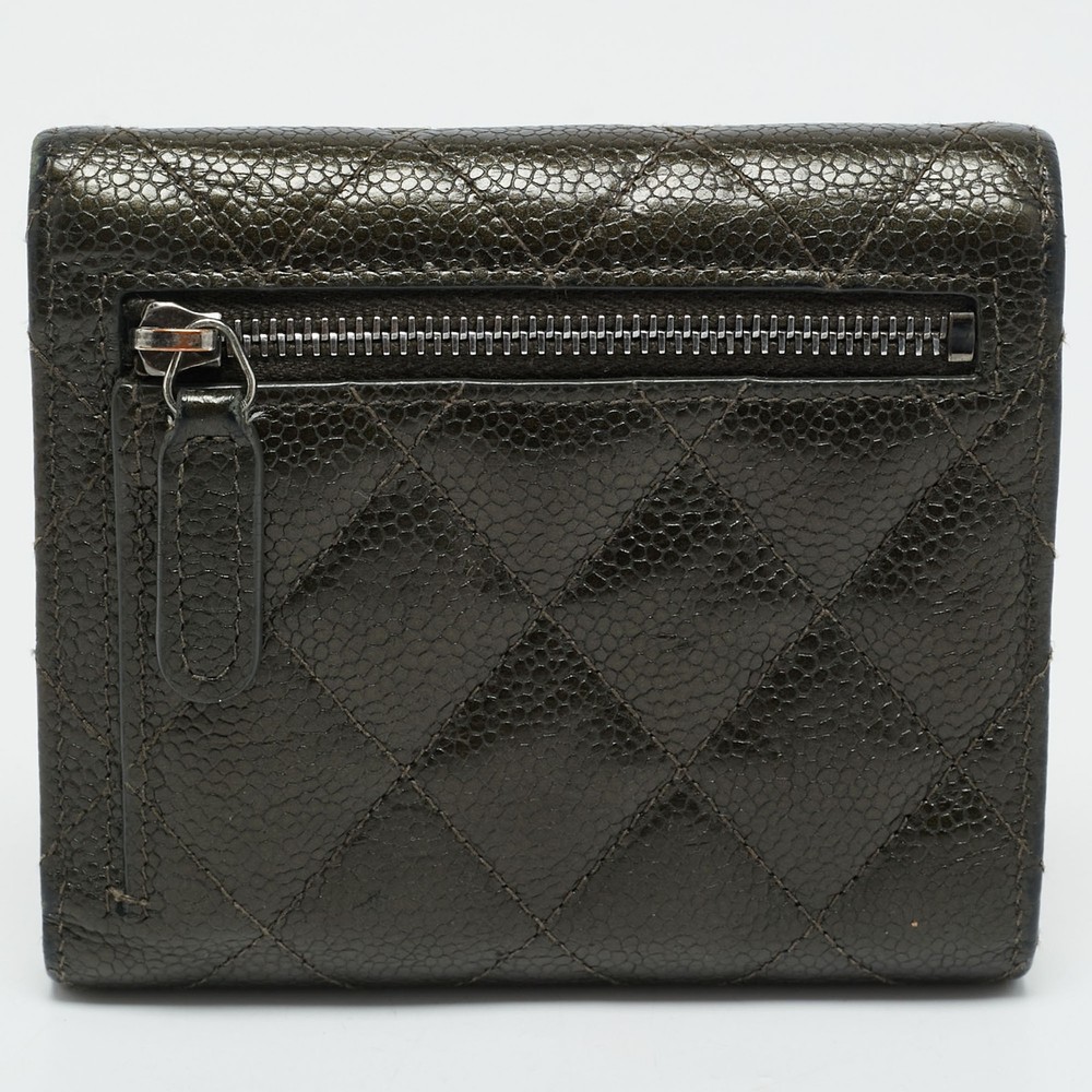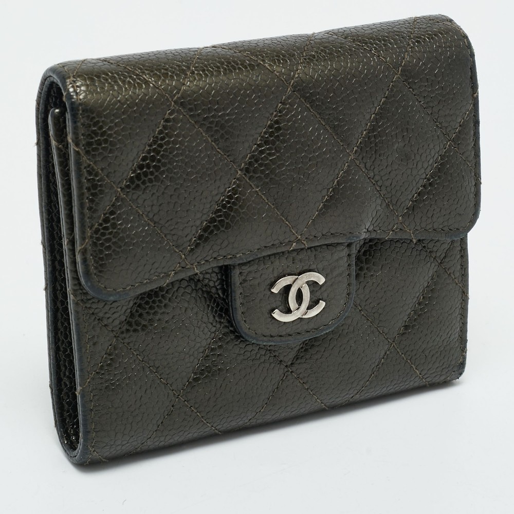 Quilted caviar leather in an earthy olive green hue gives this trifold wallet a unique edge. Both functional and fashionable, it brings signature Chanel luxury to your essentials.Certified by The Luxury Closet - This item has gone through a detailed authentication process overseen by our experts. We offer a lifetime guarantee of authenticity on all our items. Import duties, taxes and charges are not included in the item price. These charges are the buyers responsibility. Please check with your country’s customs office to determine what these additional cost will be prior to buying. Our eBay Store About Us Contact Us Add to Favorite Sellers Chanel Olive Green Quilted Caviar Leather Classic Trifold Wallet $807.4 Quilted caviar leather in an earthy olive green hue gives this trifold wallet a unique edge. Both functional and fashionable, it brings signature Chanel luxury to your essentials. Product Details Brand Color Green Dimensions Material Leather Size Outsole Width Outsole Length Heel Height Includes Certified by The Luxury Closet This item has gone through a detailed authentication process overseen by our experts. We offer a lifetime guarantee of authenticity on all our items. How We Check The in-house team of experts at The Luxury Closet is highly trained to verify the authenticity and the condition of the luxury products. They ensure that only 100% authentic items are put on sale.The evaluation process is unique with its own mix of assessment criteria and differs according to the category. Each item is evaluated based on the following combination of hallmarks, hardware, stitching, symmetry, material, craftsmanship, stamping, codes, hologram stickers, and packaging. Our authenticators also check if the items have been modified or amended (e.g., aftermarket diamonds, replaced batteries, repaired bags, etc.) International Buyers Import duties, taxes and charges are not included in the item price. These charges are the buyers responsibility. Please check with your country’s customs office to determine what these additional cost will be prior to buying.