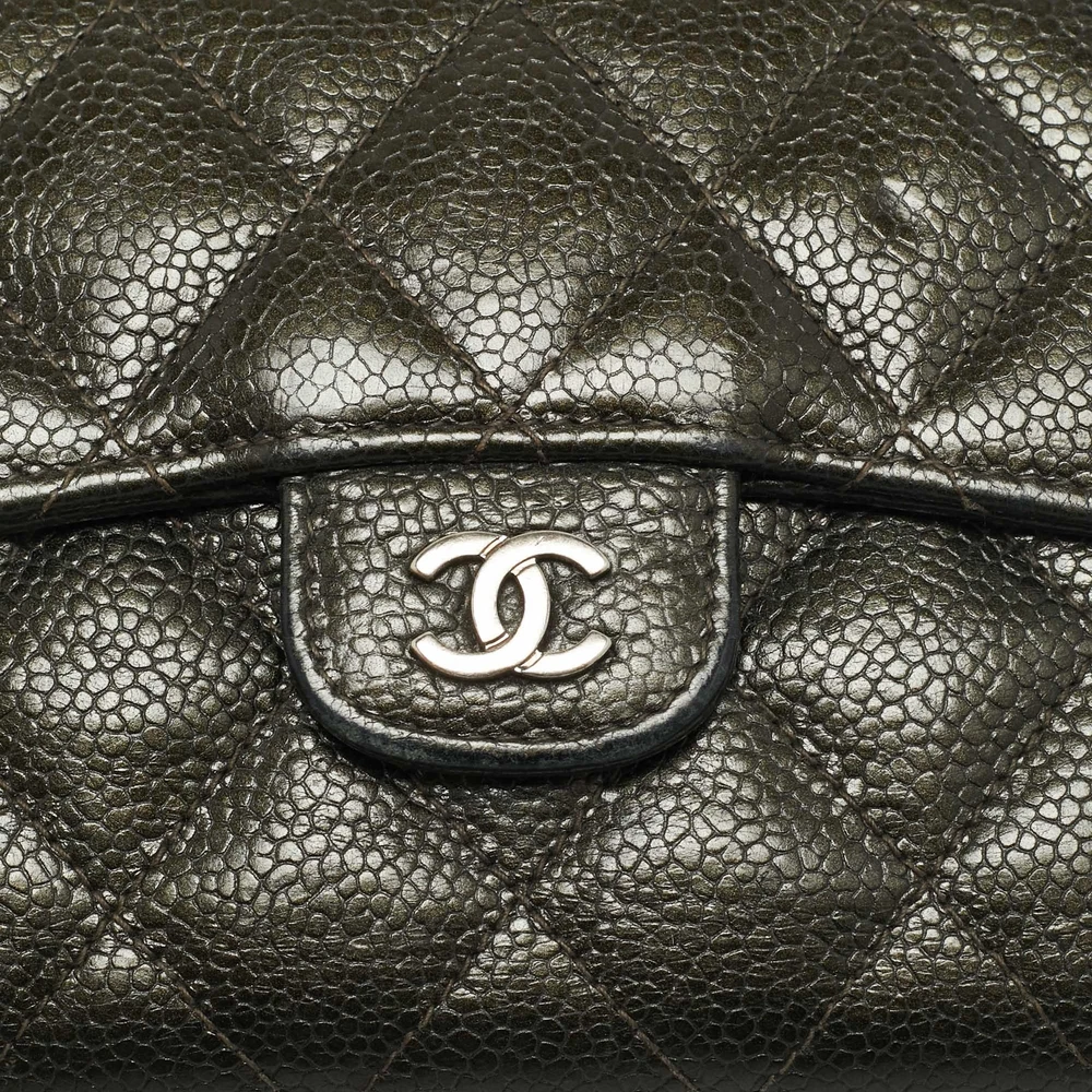 Chanel Olive Green Caviar Leather Classic Trifold Wallet