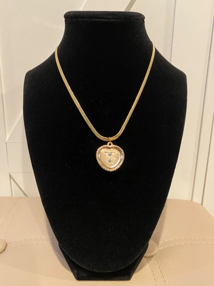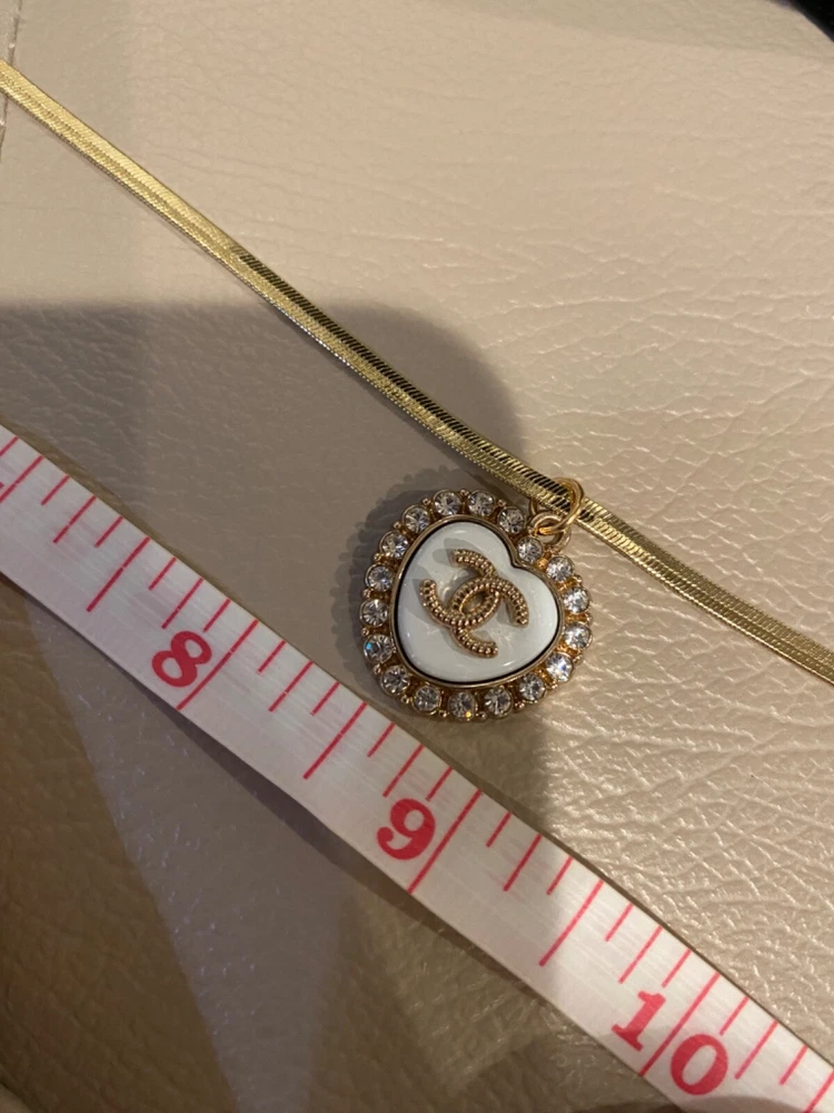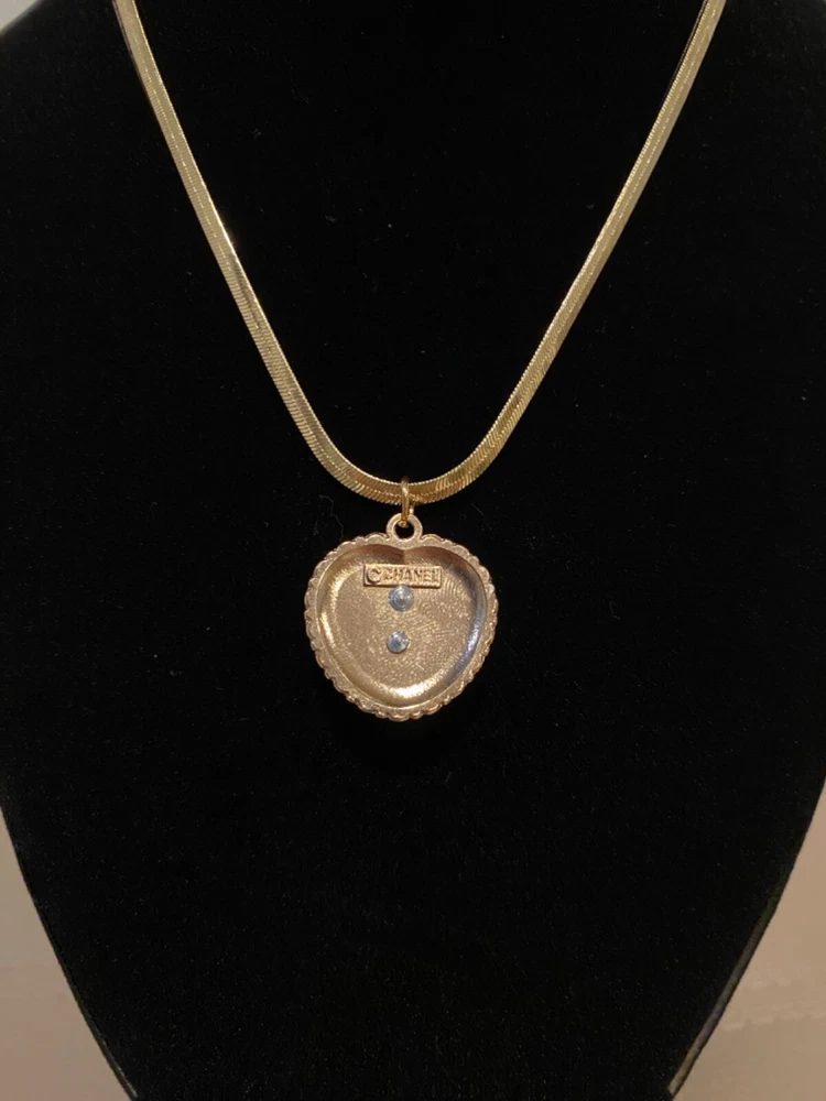 Metal: Yellow Gold Plated Pendant Shape: Heart Brand: CHANEL Main Stone: Rhinstones Theme: Beauty, Love, Signs & Symbols Necklace Length: 17 in Style: Pendant Number of Gemstones: 18 Main Stone Shape: Heart Chain Type: Snake Type: Necklace Pendant/Locket Type: Charm Occasion: Anniversary, Birthday, Christmas, Confirmation/Communion, Engagement, Graduation, Mother's Day, Valentine's Day, Wedding Color: Gold Main Stone Color: Gold