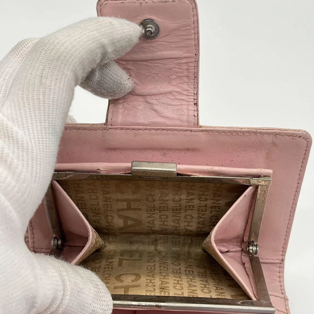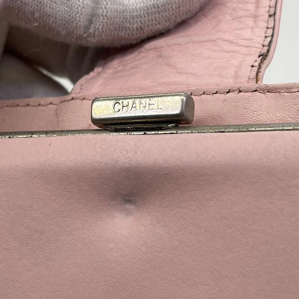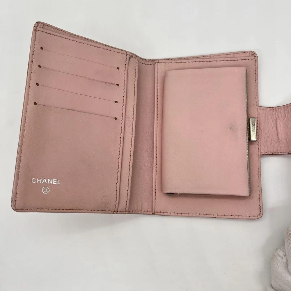 Chanel Bifold Wallet Pink Leather Coco Mark Icon Line Used Key Features - Brand: CHANEL - Item: Foldable Wallet / Compact Mini Wallet - Model: Icon Line with Coco Mark Logo and Gold Hardware - Color: Pink and Silver - Material: Genuine Leather - Size: approximately 3.9 inches (10cm) high x 5.5 inches (14cm) wide x 0.8 inches (2cm) depth - Features: - Foldable design with snap button closure - Interior: 4 card pockets, 1 bill compartment, 3 open pockets, 1 coin pocket - Iconic Coco Mark logo and embossed logo pattern - Condition: - No serial sticker, minimal signs of use - No major damage, ready for immediate use - No stickiness or powdery residue - Notes: - No accessories are included unless noted in the title or product description - Please check photos for detailed condition - As a used item, please consider Specifications Brand Chanel Country Japan Type Wallet Color Pink Material Leather Product Description Item Title Chanel Bifold Wallet Coco Mark Icon Line Pink Leather Payment Supports managed payments Please pay within 5 days after auction is finished. About Us We are located in Japan. It's our pleasure to make you happy by proposing our recommend item. If you have any questions or request about items, please feel free to ask us. International Buyers - Please Note: -Import duties, taxes, and charges are not included in the item price or shipping charges. These charges are the buyer's responsibility. -Please check with your country's customs office to determine what these additional costs will be prior to bidding/buying. -These charges are normally collected by the delivering freight (shipping) company or when you pick the item up - do not confuse them for additional shipping charges. -We do not mark merchandise values below value or mark items as - gifts - The US and International government regulations prohibit such behavior. Thank you for your understanding.