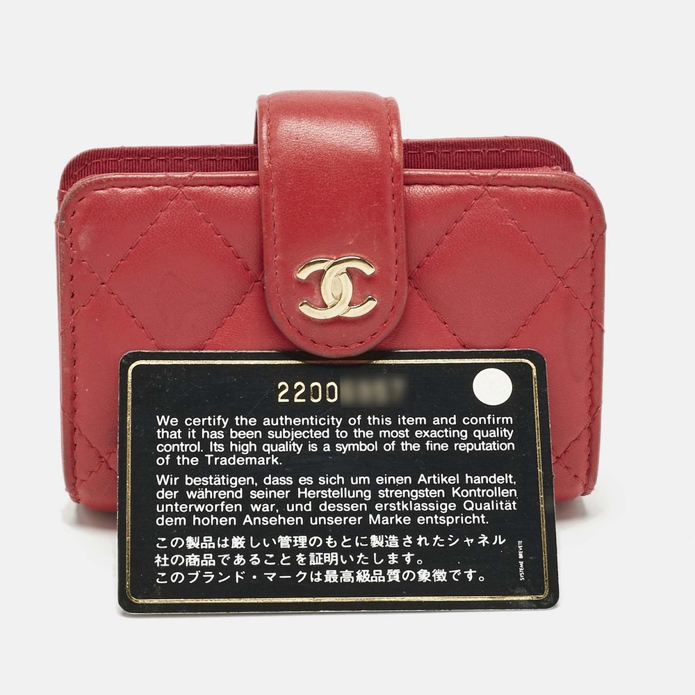 This preloved Chanel mini card holder slips easily into smaller bags or a coat pocket. Made in pink quilted leather with a gusseted interior, it’s pretty, practical, and finished with the classic interlocking Cs.Certified by The Luxury Closet - This item has gone through a detailed authentication process overseen by our experts. We offer a lifetime guarantee of authenticity on all our items. Import duties, taxes and charges are not included in the item price. These charges are the buyers responsibility. Please check with your country’s customs office to determine what these additional cost will be prior to buying. Our eBay Store About Us Contact Us Add to Favorite Sellers Chanel Pink Quilted Leather Gusset Card Holder $784.3 This preloved Chanel mini card holder slips easily into smaller bags or a coat pocket. Made in pink quilted leather with a gusseted interior, it’s pretty, practical, and finished with the classic interlocking Cs. Product Details Brand Color Pink Dimensions Material Leather Size Outsole Width Outsole Length Heel Height Includes Certified by The Luxury Closet This item has gone through a detailed authentication process overseen by our experts. We offer a lifetime guarantee of authenticity on all our items. How We Check The in-house team of experts at The Luxury Closet is highly trained to verify the authenticity and the condition of the luxury products. They ensure that only 100% authentic items are put on sale.The evaluation process is unique with its own mix of assessment criteria and differs according to the category. Each item is evaluated based on the following combination of hallmarks, hardware, stitching, symmetry, material, craftsmanship, stamping, codes, hologram stickers, and packaging. Our authenticators also check if the items have been modified or amended (e.g., aftermarket diamonds, replaced batteries, repaired bags, etc.) International Buyers Import duties, taxes and charges are not included in the item price. These charges are the buyers responsibility. Please check with your country’s customs office to determine what these additional cost will be prior to buying.