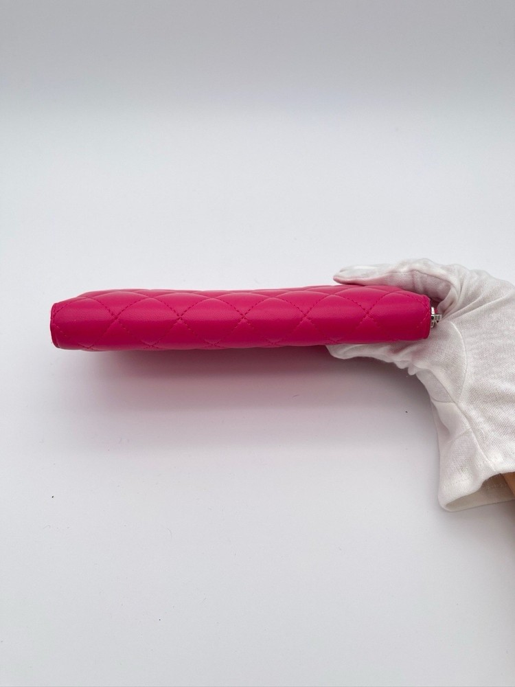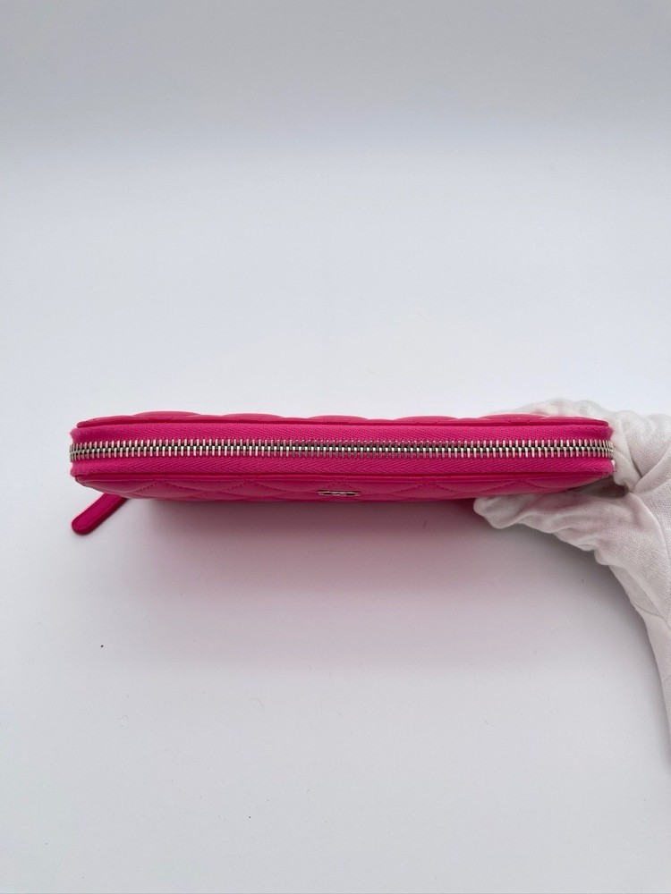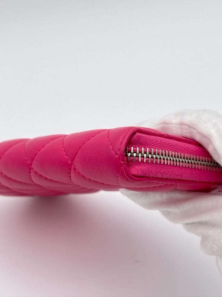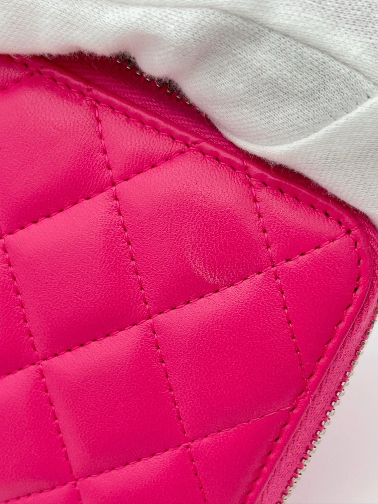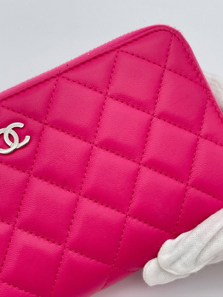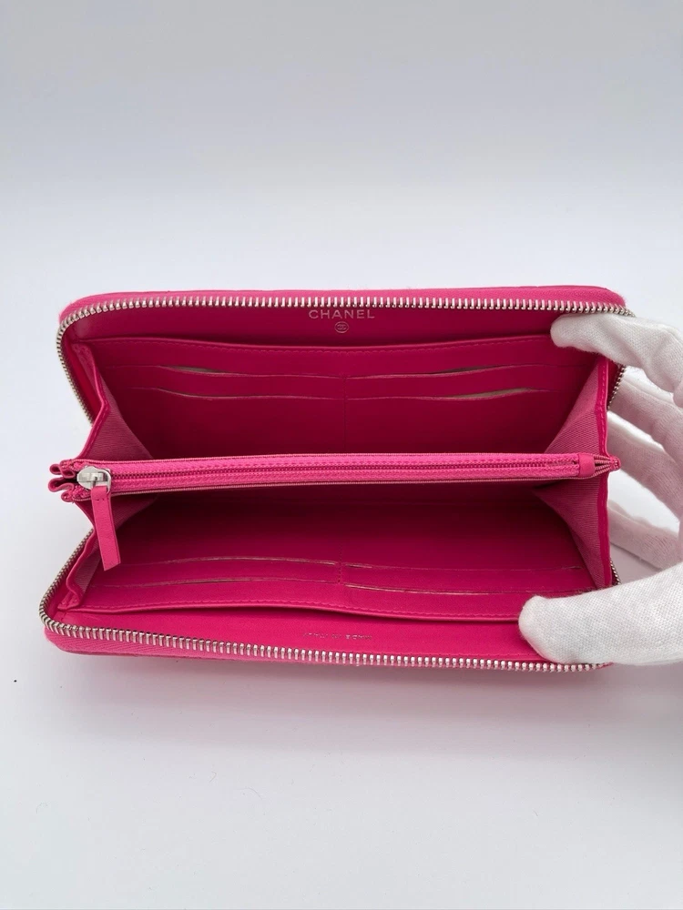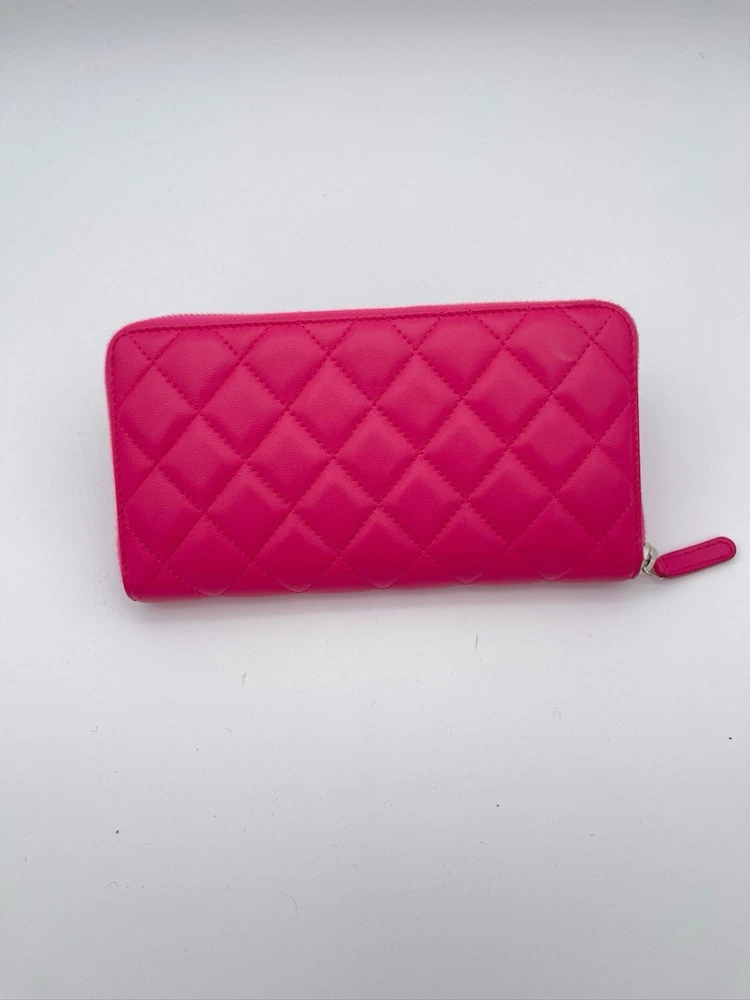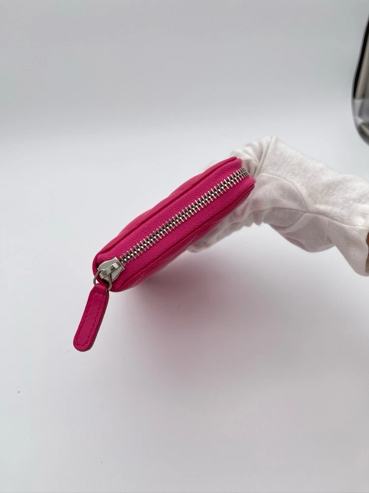 This Chanel wallet is absolutely stunning! The soft pink quilted leather is so elegant, and the quality is top-notch. It fits all my cards and cash perfectly while keeping everything secure with the smooth zipper. The craftsmanship is impeccable, and it adds a touch of luxury to my everyday look. Definitely worth the investment—I get compliments every time I use it!